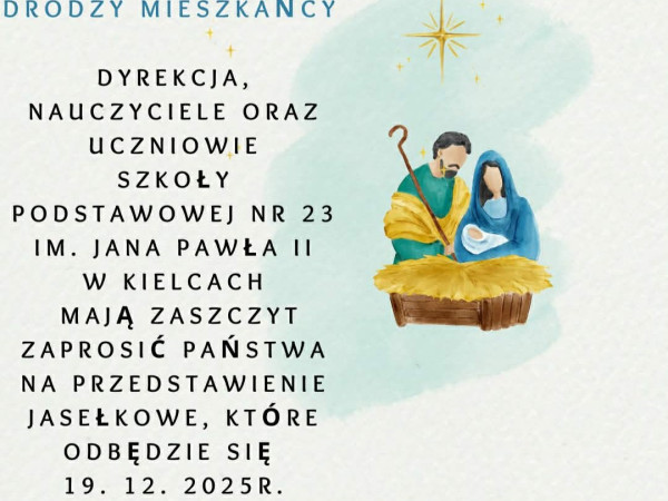 Zdrowych, pogodnych Świąt Bożego Narodzenia życzy Dyrekcja, Uczniowie i Pracownicy Szkoły Podstawowej nr 23 im. Jana Pawła II w Kielcach.