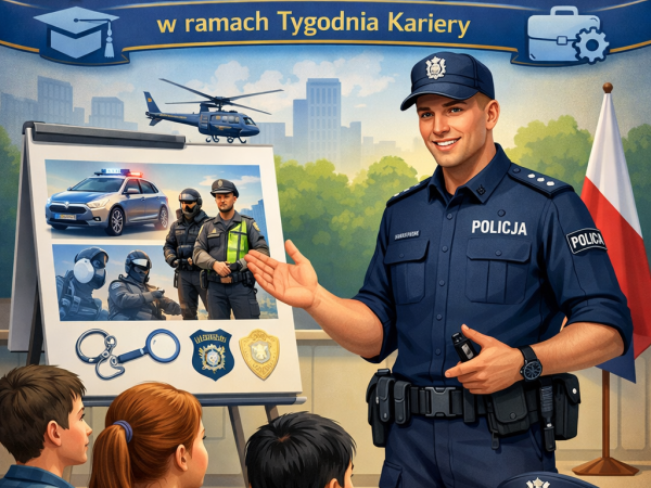 W naszej szkole odbyła się wizyta funkcjonariusza Straży Miejskiej w Kielcach, podczas której przeprowadził prelekcje profilaktyczno-edukacyjne dla uczniów. Spotkanie dotyczyło zagadnień związanych z ochroną środowiska, bezpieczeństwem w sieci oraz odpowiedzialnością prawną osób nieletnich.