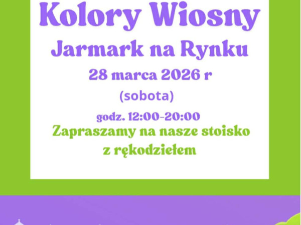 Serdecznie zapraszamy na Miejski Jarmark „Kolory Wiosny”, który odbędzie się w dniach 28–29 marca 2026 roku na Rynku.