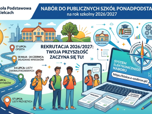 Ósmoklasisto! Rodzicu! Zbliża się czas decyzji i składania wniosków do szkół średnich w Kielcach. Cały proces odbywa się drogą elektroniczną.