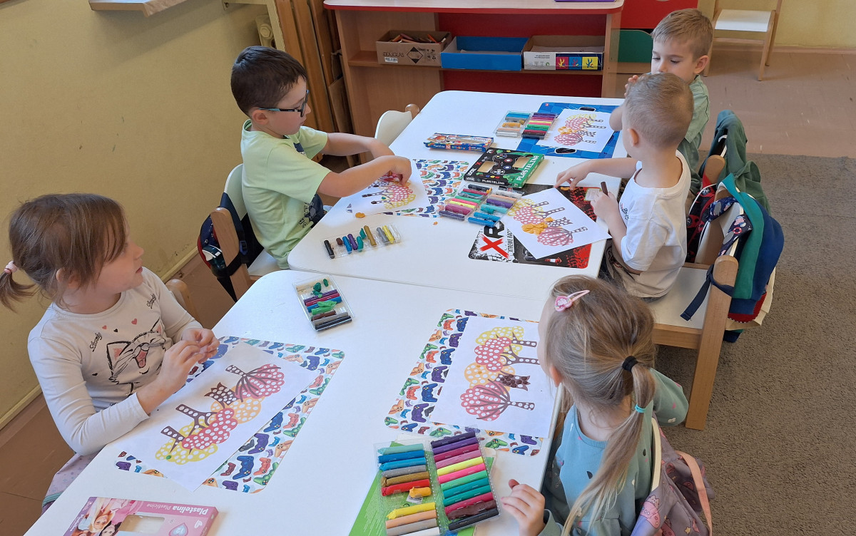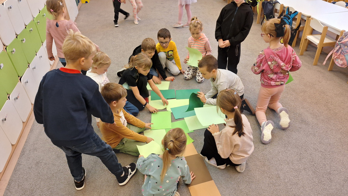 Podczas zajęć rozmawialiśmy o tym, co dają nam drzewa – że dostarczają tlen, oczyszczają powietrze, są domem dla wielu zwierząt i przynoszą ludziom cień, spokój oraz piękno. Dzieci z entuzjazmem zastanawiały się również, dlaczego powinniśmy dbać o to, by drzew było jak najwięcej i jak każdy z nas może w tym pomóc.