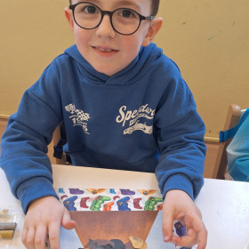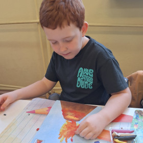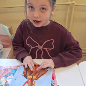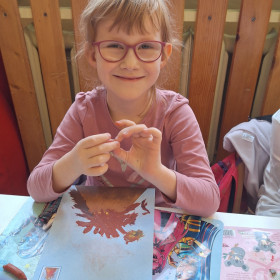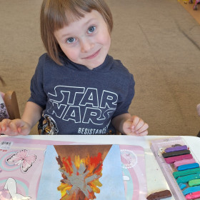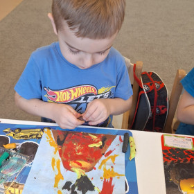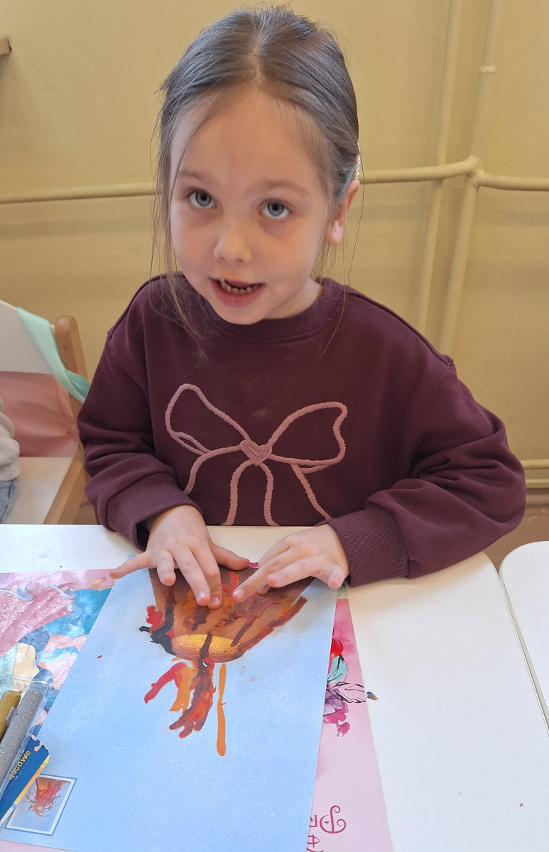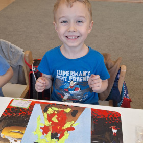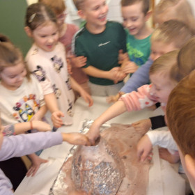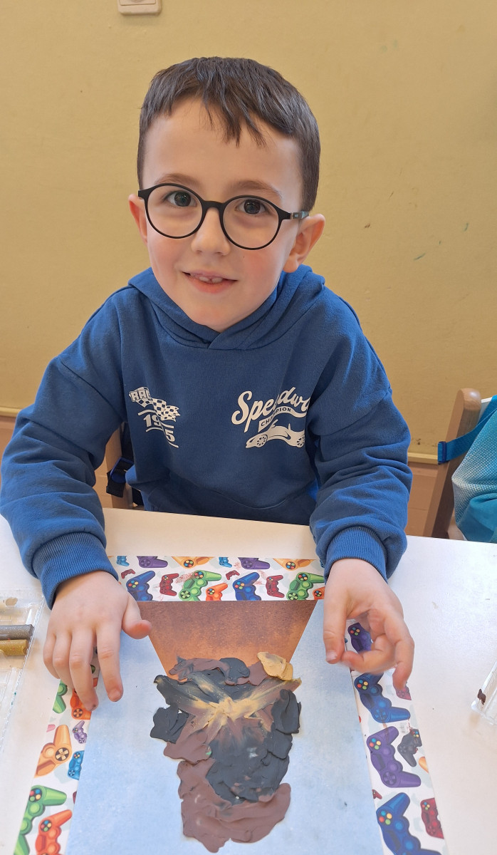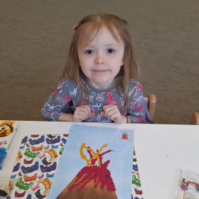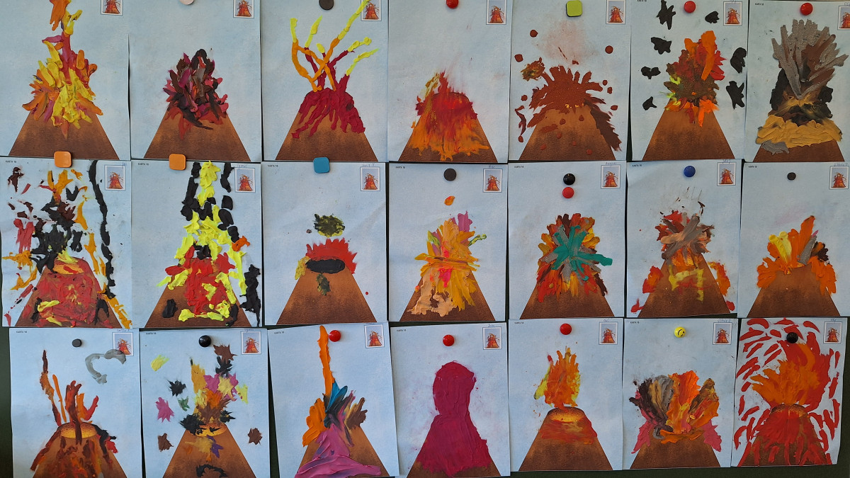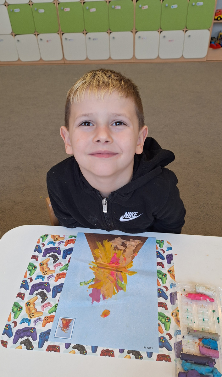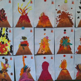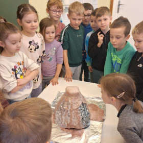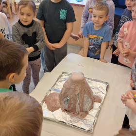 Zdobytą wiedzę teoretyczną sprawdziliśmy w praktyce, przeprowadzając widowiskowy eksperyment z wulkanem. Przedszkolaki z ogromnym zaciekawieniem obserwowały, jak łączenie różnych składników prowadzi do nagłej, zaskakującej reakcji i efektownej erupcji. To doświadczenie pokazało nam, że chemia i fizyka mogą być fascynującą zabawą. Na zakończenie zajęć dzieci wykonały kolorowe wulkany, utrwalając w ten sposób nowo zdobytą wiedzę.