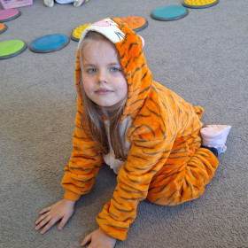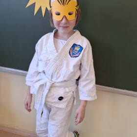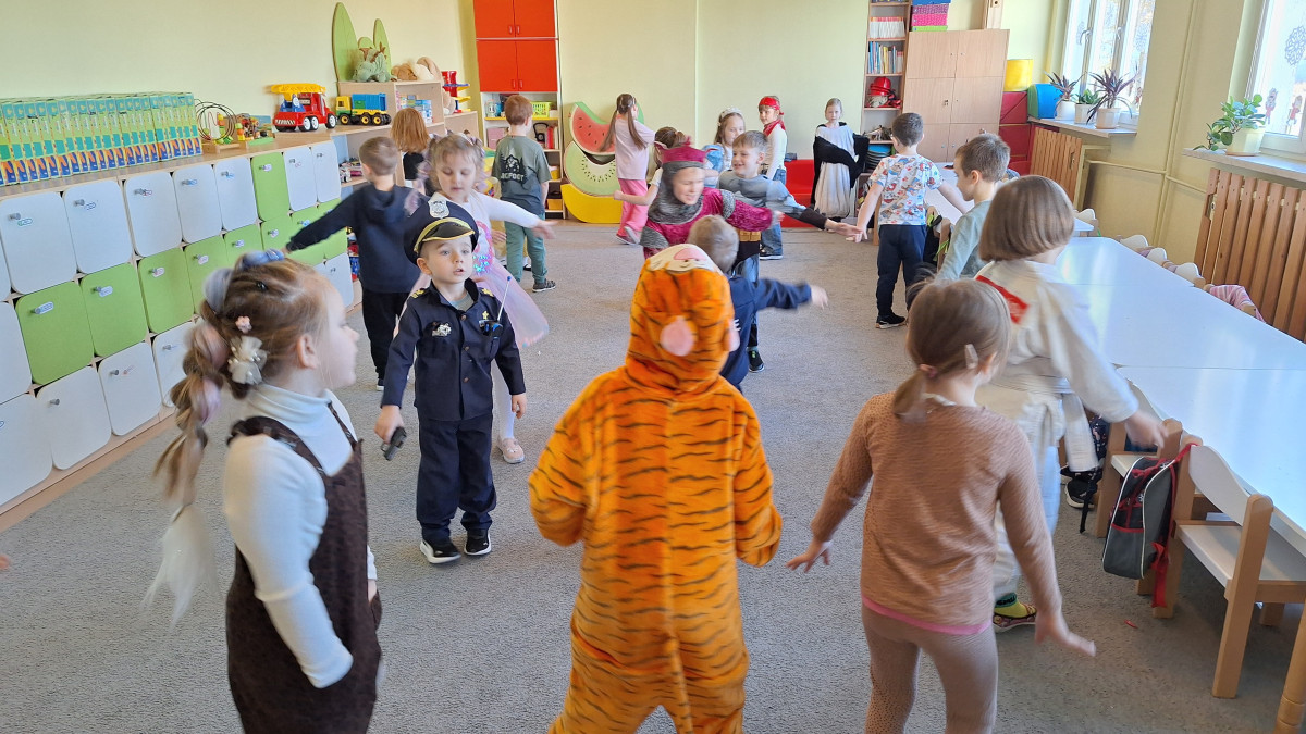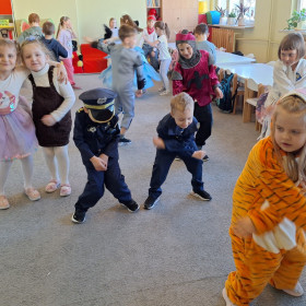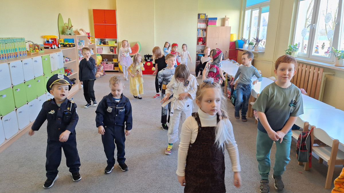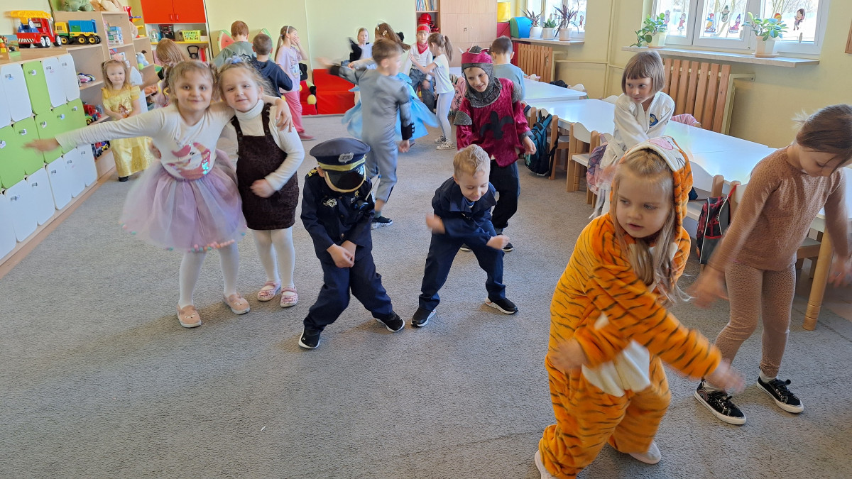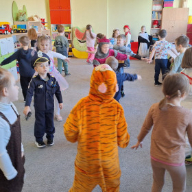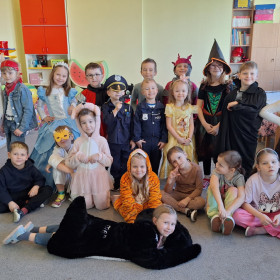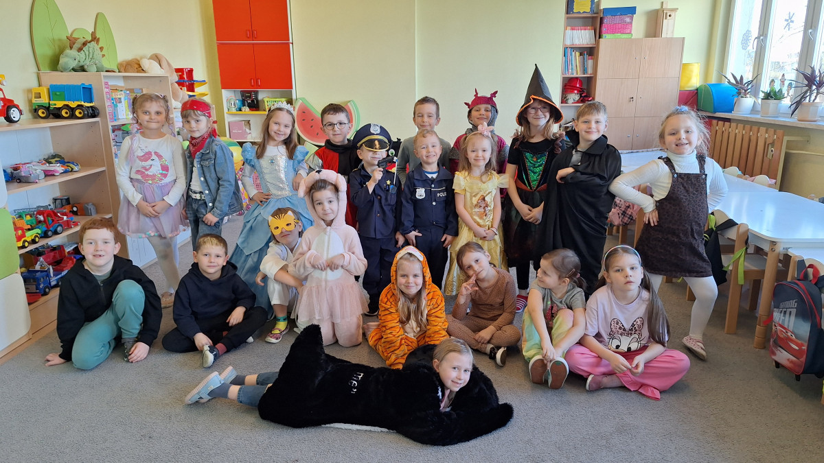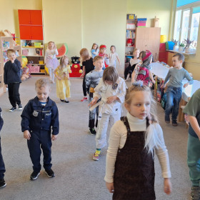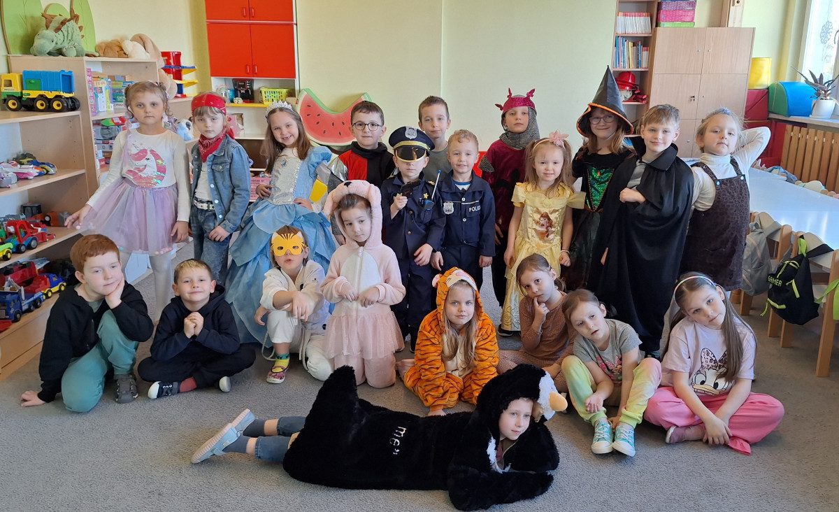 Nasze przedszkolaki z wielką radością włączyły się w kolorową inicjatywę Samorządu Uczniowskiego, przychodząc do szkoły w strojach ulubionych bajkowych bohaterów. Tego dnia wspólnie bawili się: tygrysek, pingwinek, miś panda, kowboj, policjanci, księżniczki, superbohater, czarownica, króliczek oraz dzielny rycerz.