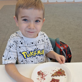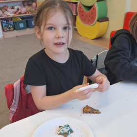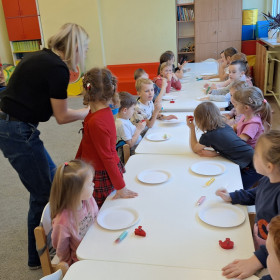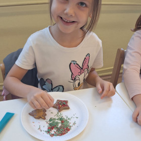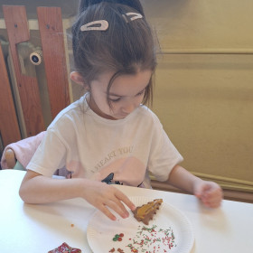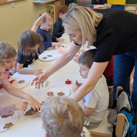 W ten przedświąteczny czas naszą grupę odwiedziła Pani Marta Cipior, mama Filipa, która przygotowała dla dzieci pachnące, świeżo upieczone pierniczki. Zanim jednak przedszkolaki przystąpiły do ich dekorowania, Pani Marta opowiedziała im wiele ciekawostek związanych z tradycją wypieku pierników. Dzieci dowiedziały się m.in., jaka jest historia pieczenia pierników, co symbolizują te świąteczne smakołyki oraz które polskie miasto słynie z ich wypieku.