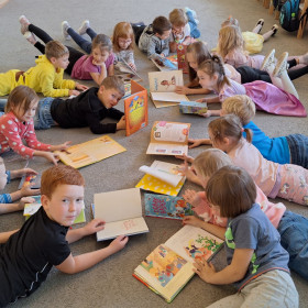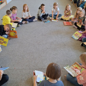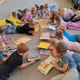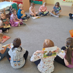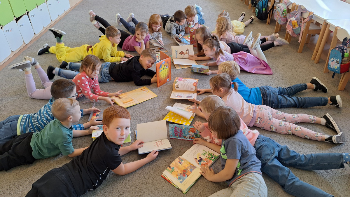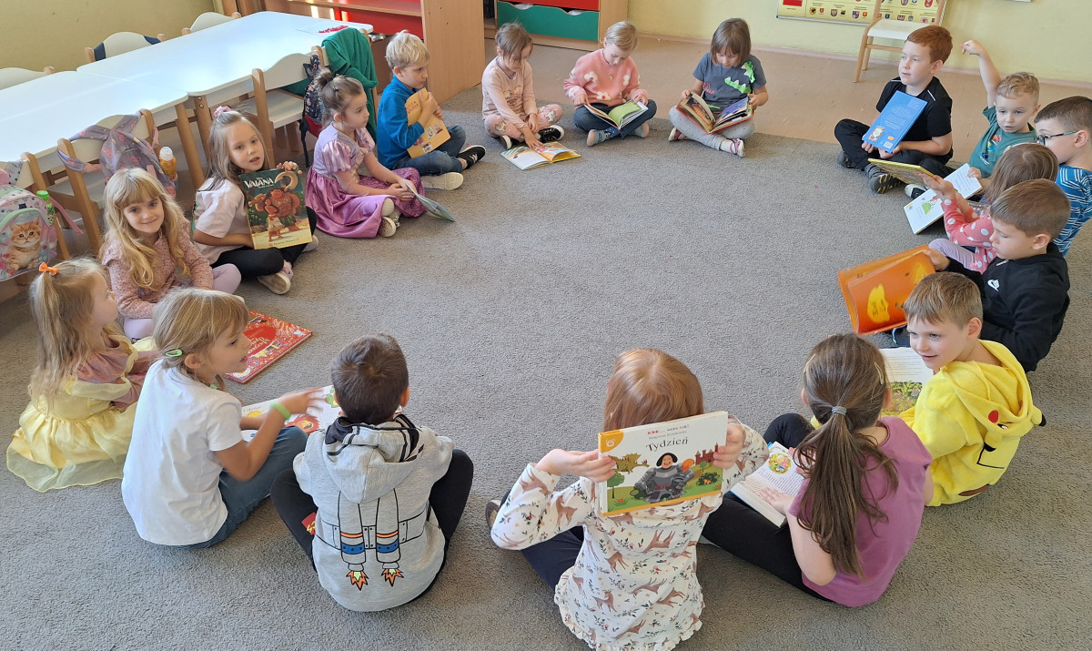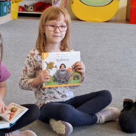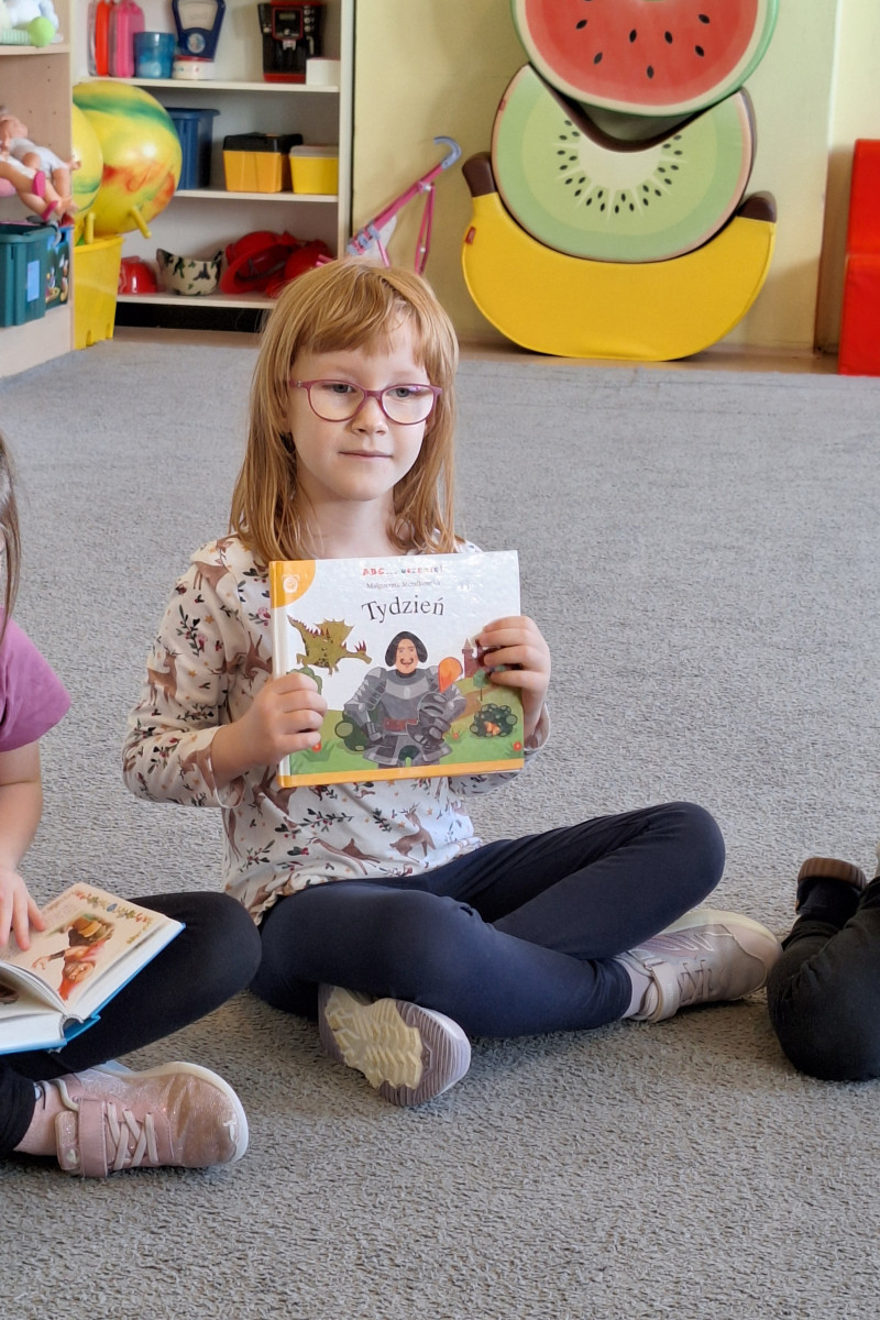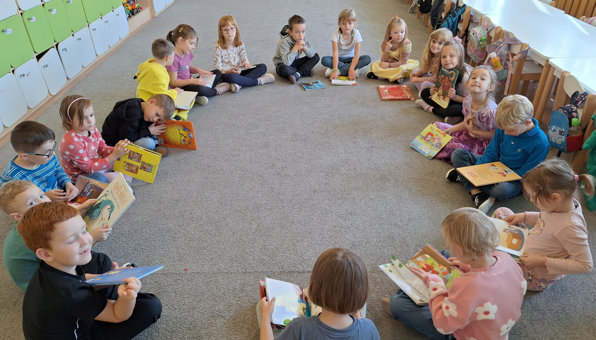 W sali pojawiły się królewny, rycerz, dinozaury i inni bohaterowie znanych baśni. Dzieci przyniosły też swoje ulubione książki – były bajki, baśnie, legendy i zabawne opowiadania, które wspólnie oglądaliśmy i omawialiśmy.