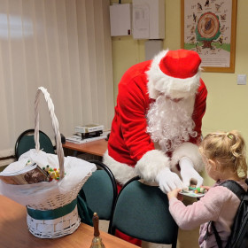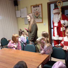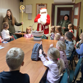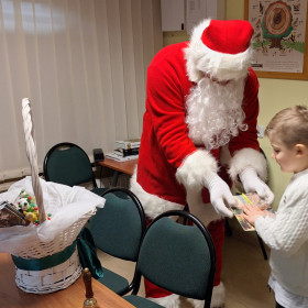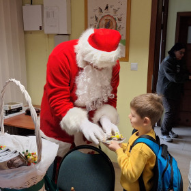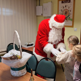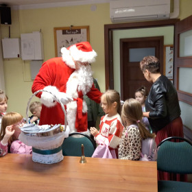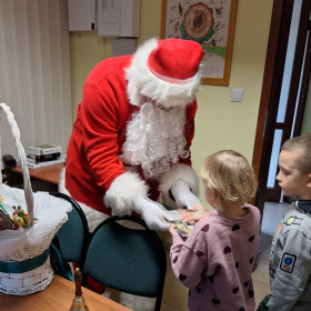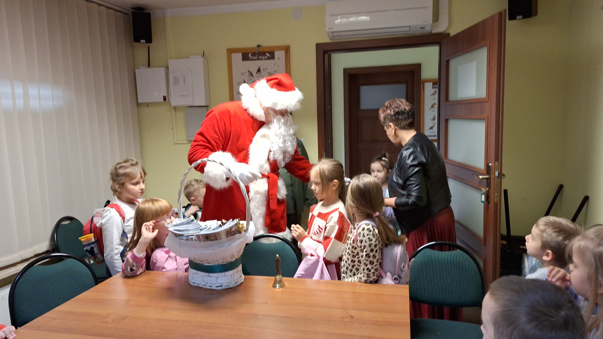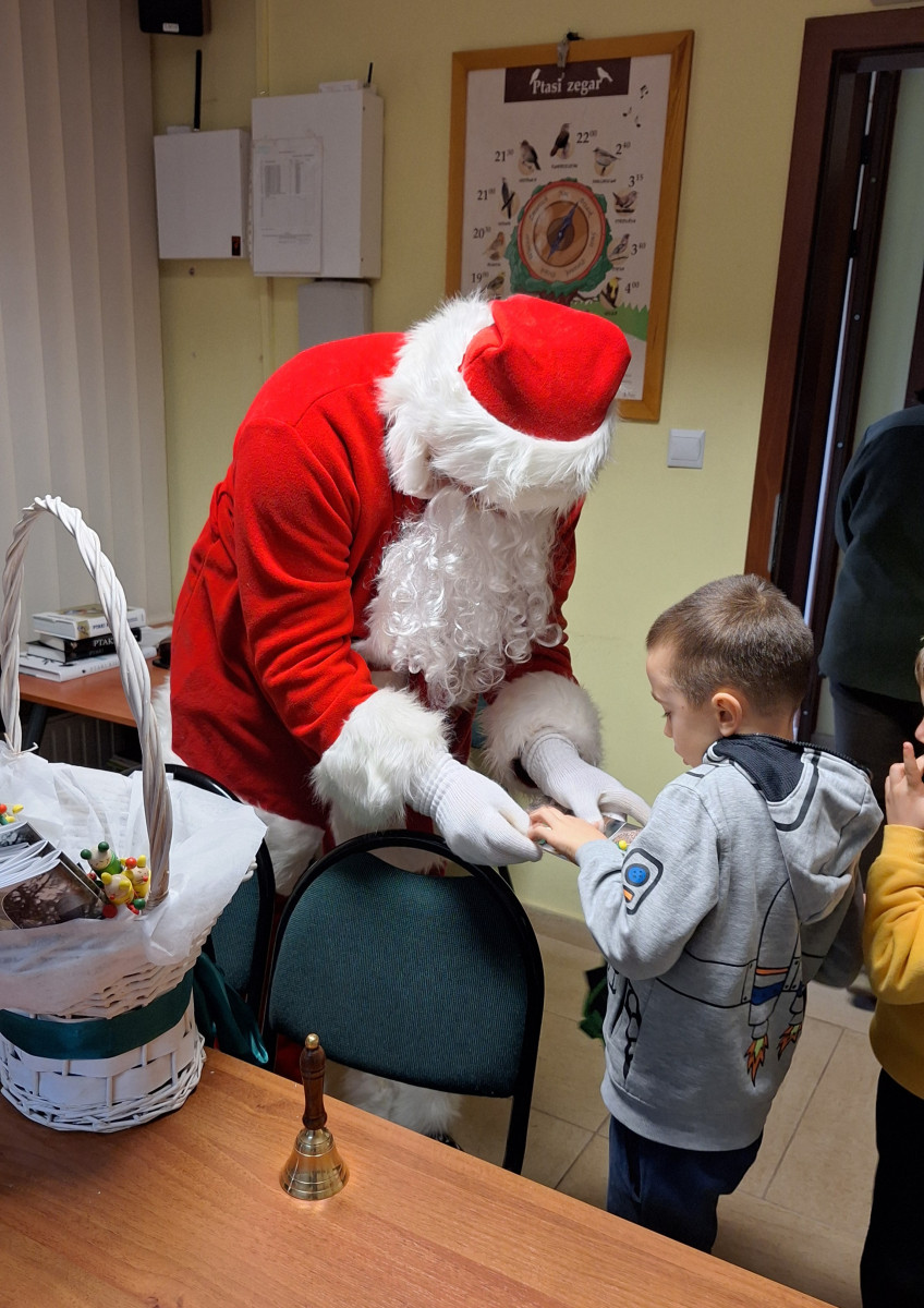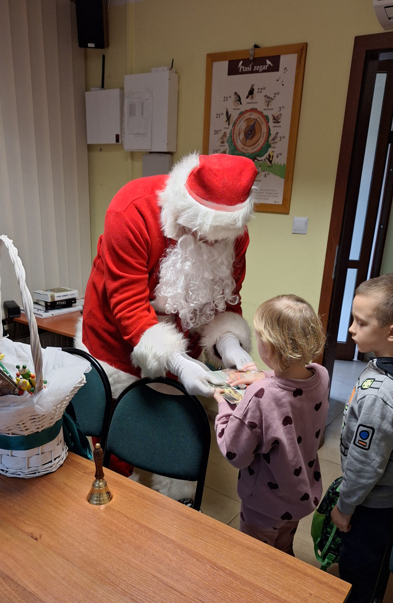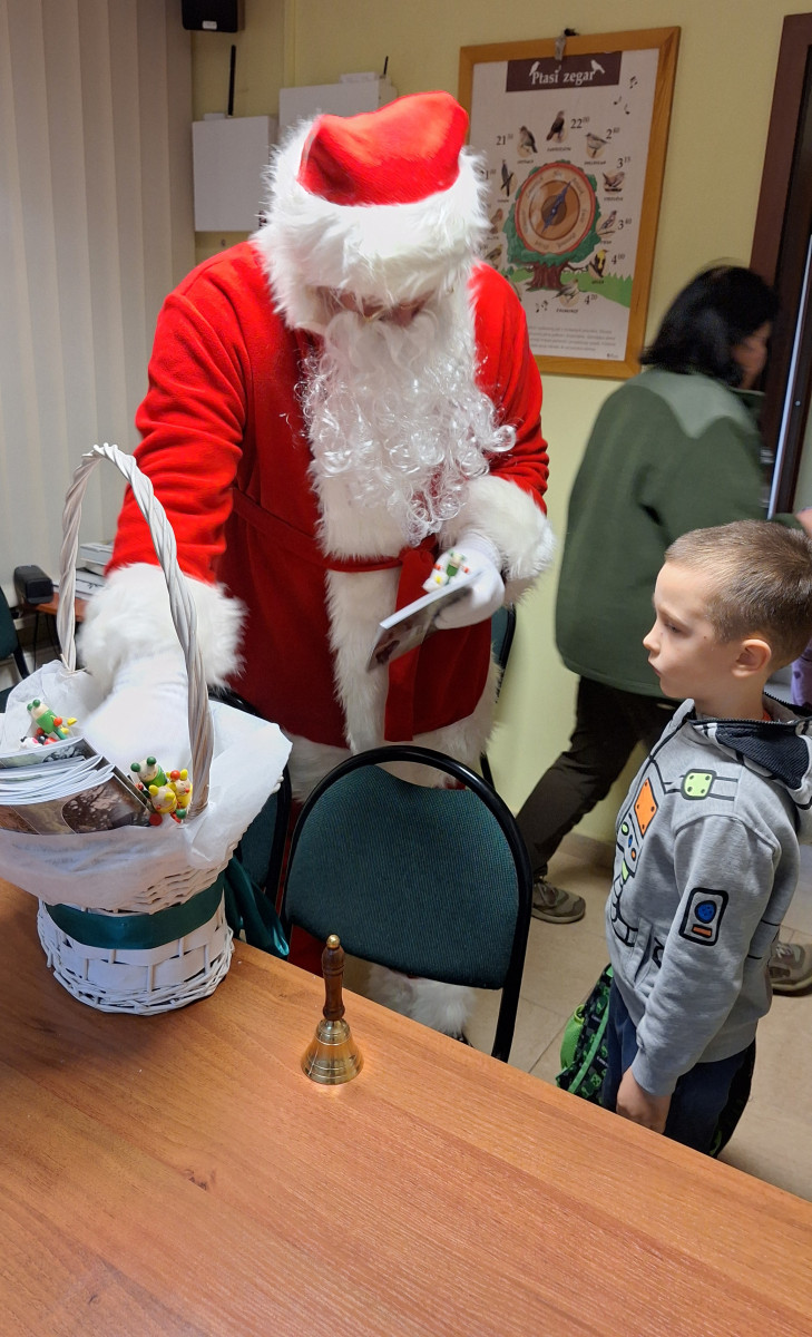 Na zakończenie tego pełnego wrażeń dnia na dzieci czekała wspaniała niespodzianka. Odwiedził ich Mikołaj, który wręczył każdemu dziecku prezent, wywołując szerokie uśmiechy i dodając spotkaniu magicznego, świątecznego nastroju.