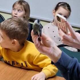 Podczas zajęć dzieci mogły z bliska przyjrzeć się ptakom oraz obserwować, jak wyglądają podstawowe czynności wykonywane przez ornitologów. Wielkim przeżyciem była możliwość samodzielnego wypuszczenia na wolność zaobrączkowanego ptaka — moment, który wywołał u najmłodszych ogromne emocje i radość. Warsztaty były nie tylko pouczające, ale również inspirowały do troski o przyrodę i zwróciły uwagę na to, jak ważna jest pomoc ptakom w zimowych miesiącach.