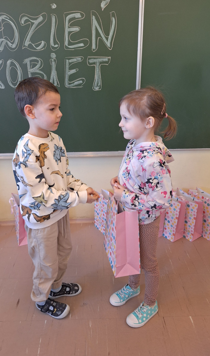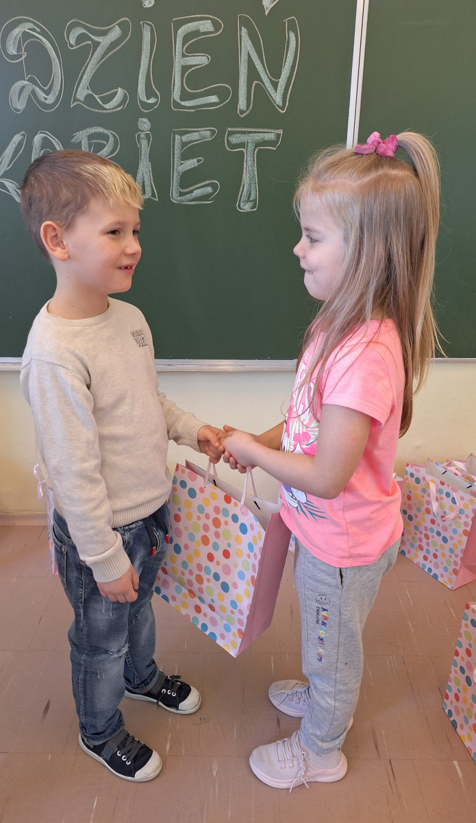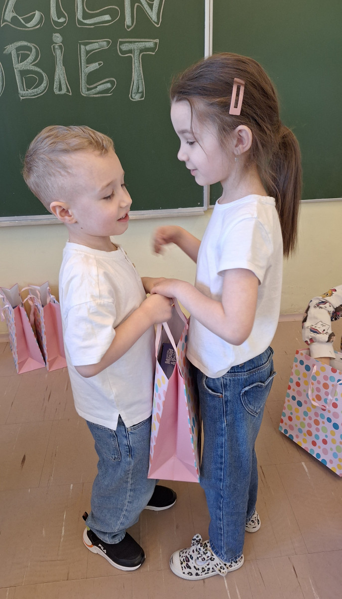 Tegoroczny Dzień Kobiet upłynął w naszej klasie w niezwykle radosnym nastroju. Chłopcy obdarowali dziewczynki serdecznymi życzeniami i upominkami, a w ramach podziękowania sami również otrzymali miłe niespodzianki. Wzajemna życzliwość i uśmiechy towarzyszyły nam przez cały dzień, czyniąc to święto naprawdę wyjątkowym wydarzeniem.🌷