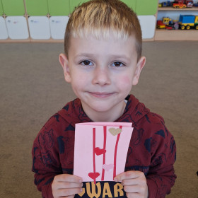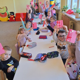 Nasi najmłodsi z ogromnym zaangażowaniem przygotowywali się w świętowanie tego dnia. Z myślą o swoich ukochanych osobach, dzieci z zerówki własnoręcznie wykonały piękne karty walentynkowe. Te małe dzieła sztuki już niebawem trafią do rąk rodziców, dziadków i przyjaciół, niosąc ze sobą najszczersze życzenia prosto z małych serc. ❤️