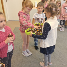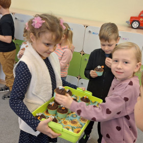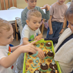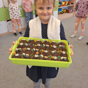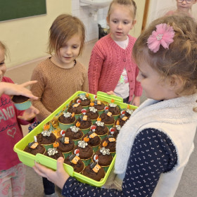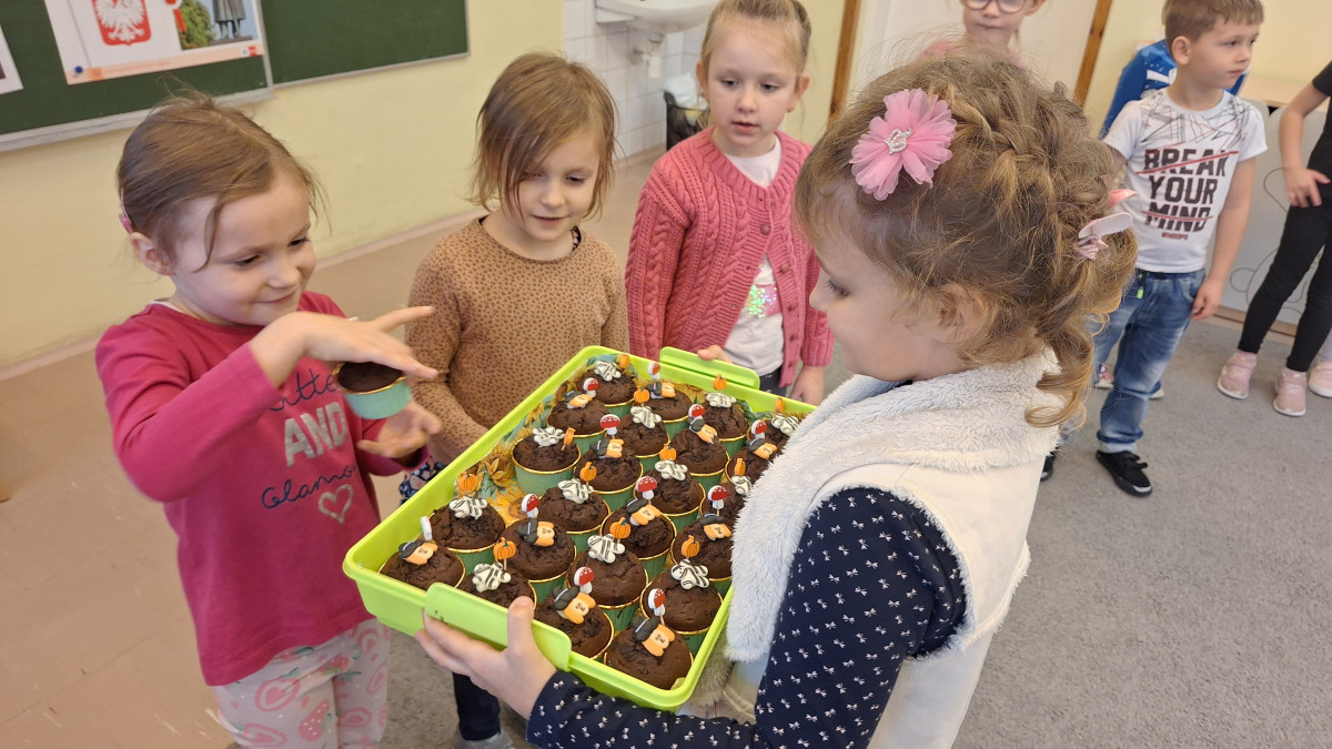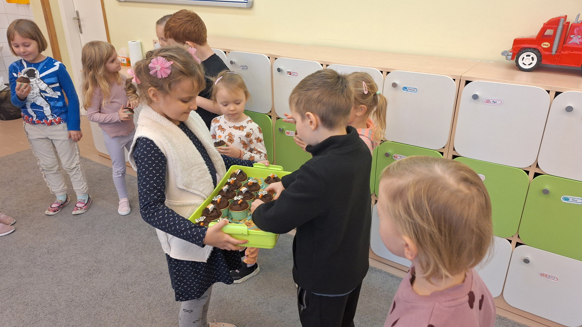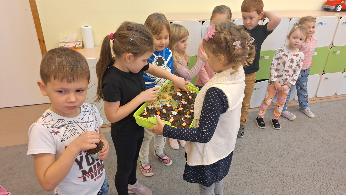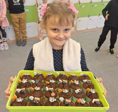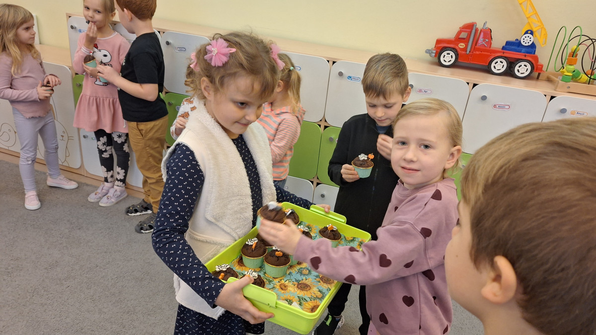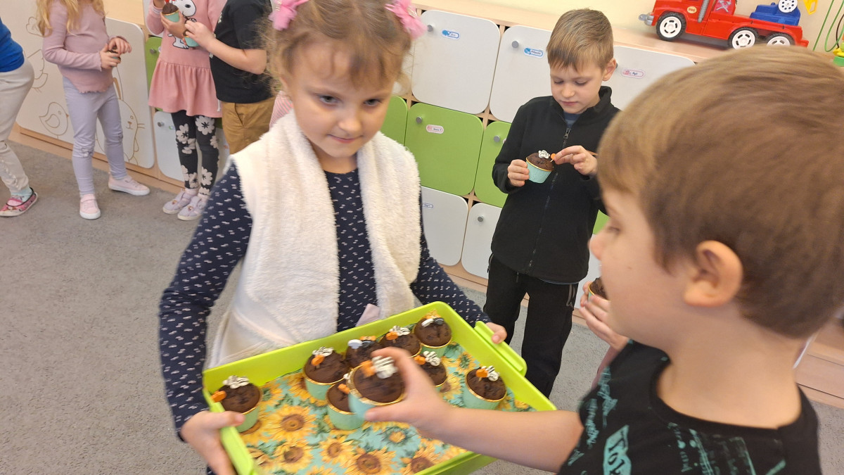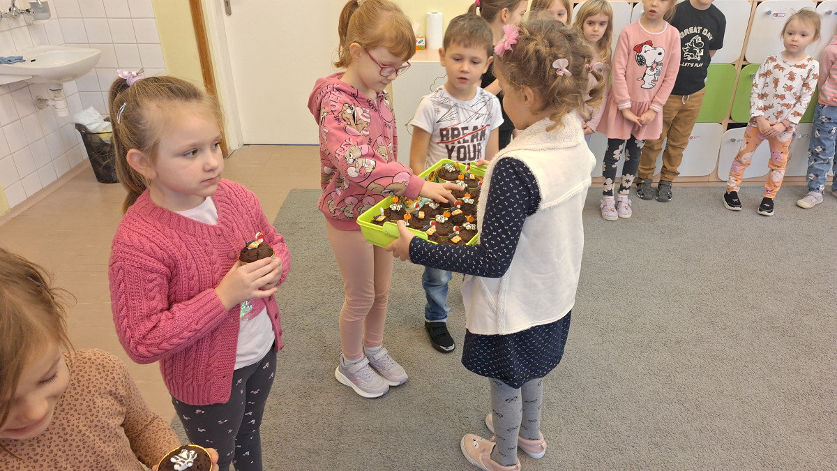 Choć do Świąt zostało jeszcze trochę czasu, w naszej klasie już poczuliśmy ich wyjątkową atmosferę. Wszystko za sprawą pysznych, pachnących babeczek, które przygotowała dla wszystkich przedszkolaków Wiktoria wraz ze swoją mamą.