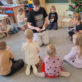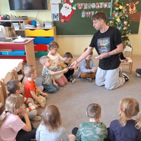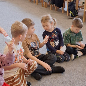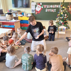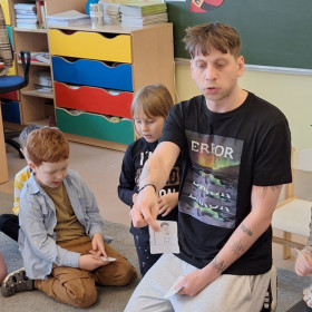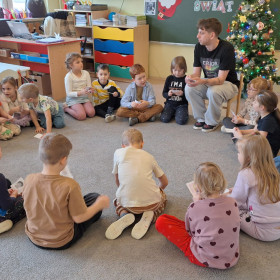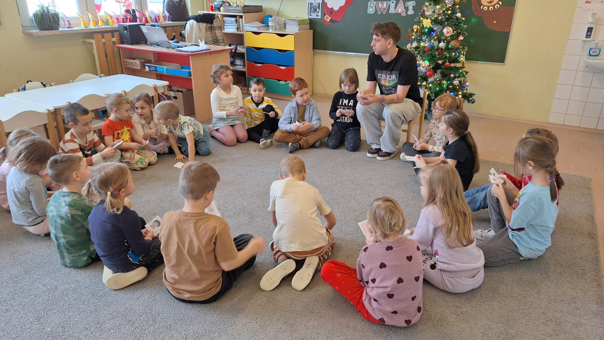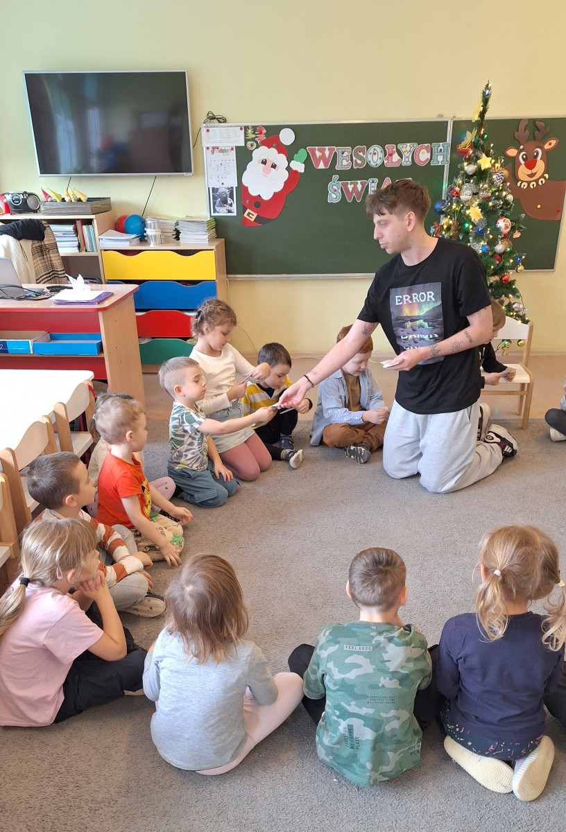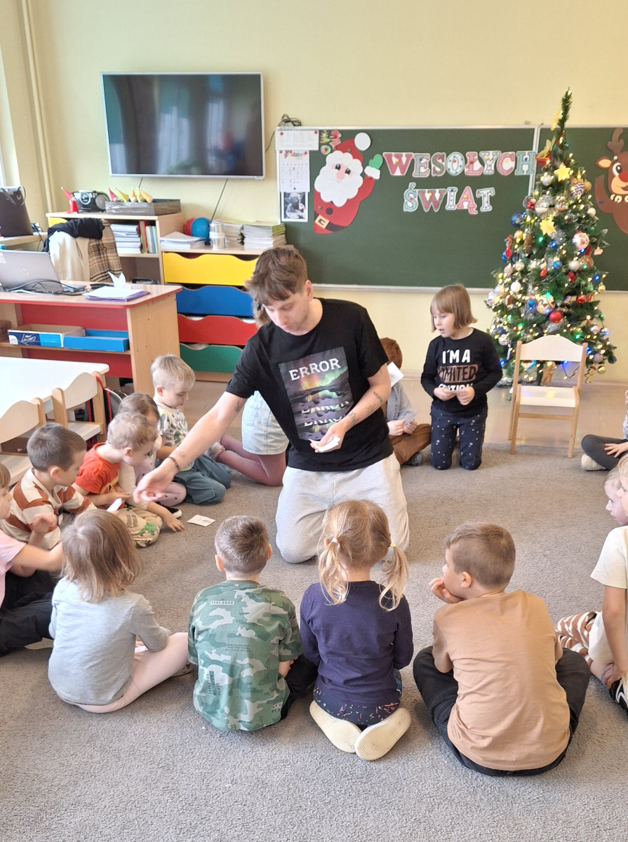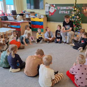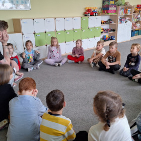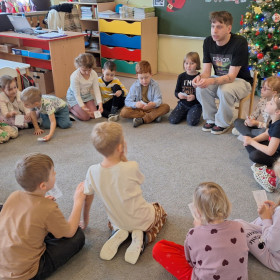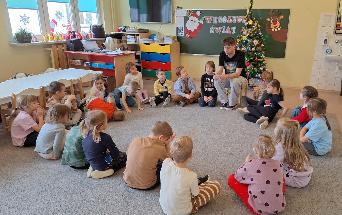 W zerówce odbyły się zajęcia z psychologiem szkolnym, Panem Jankiem, poświęcone tematyce emocji. Dzieci rozmawiały o tym, czym są emocje oraz jak je rozpoznawać, rozumieć i w odpowiedni sposób nad nimi panować. Uczniowie mieli możliwość przedstawiania różnych emocji za pomocą mimiki twarzy, gestów oraz krótkich scenek. Zajęcia wzbudziły duże zainteresowanie, a dzieci wykazały się znaczną wiedzą na temat omawianych zagadnień i chętnie udzielały odpowiedzi.