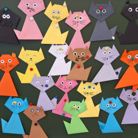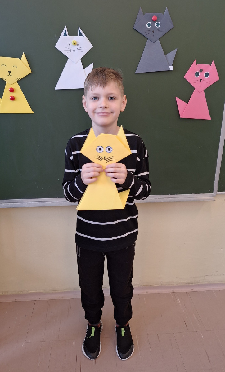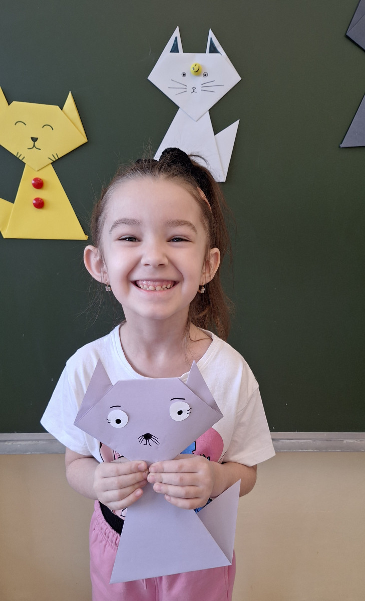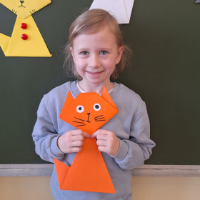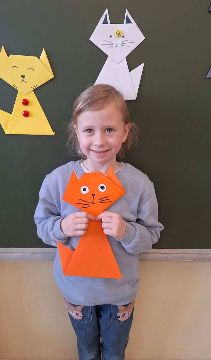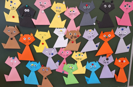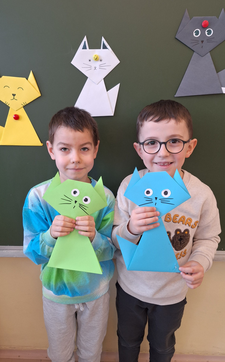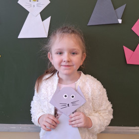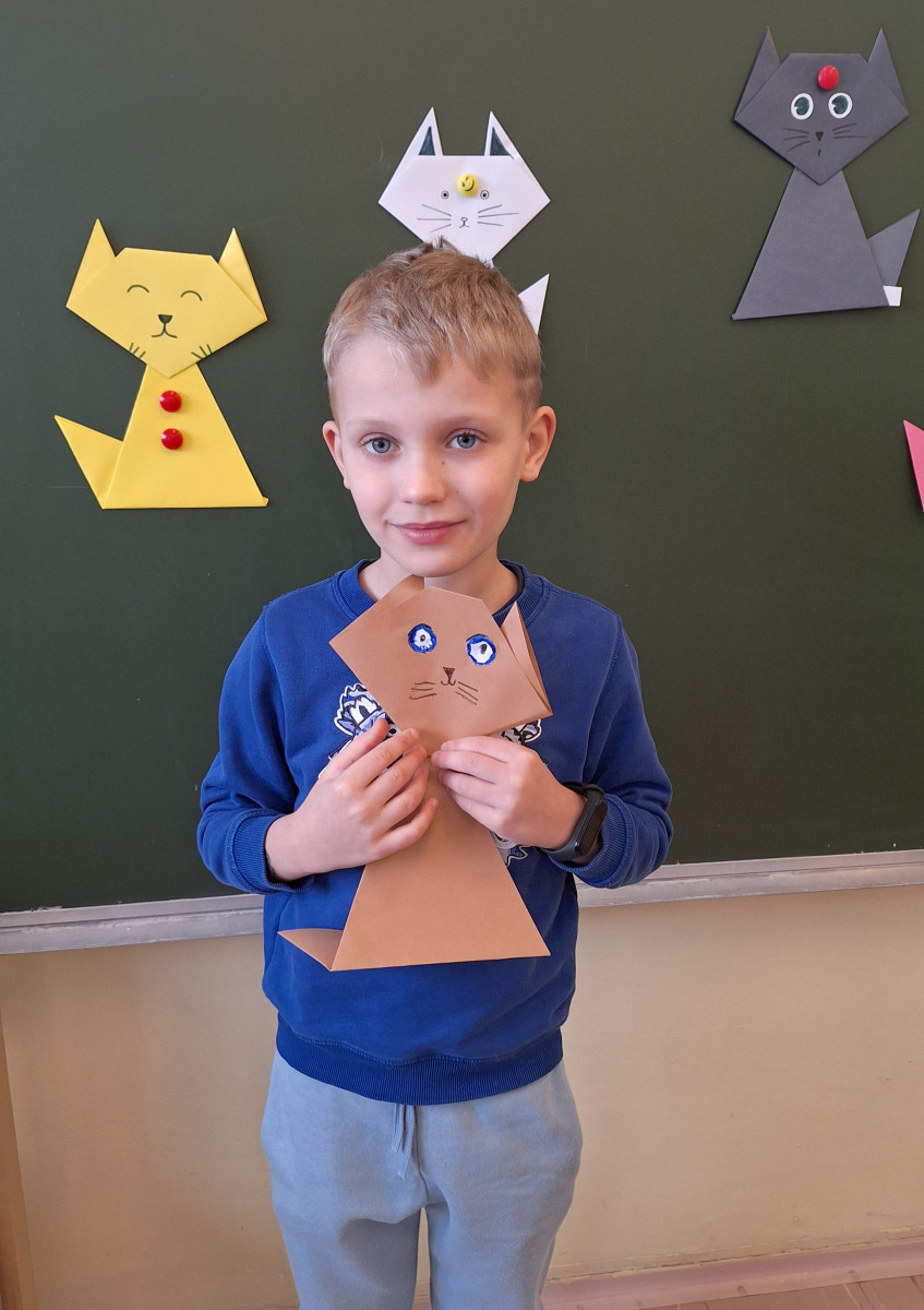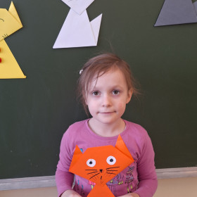 W ramach obchodów nasi mali artyści wykonali piękne prace plastyczne – koty techniką origami, wykazując się przy tym dużą cierpliwością i precyzją. Zwieńczeniem tego "kociego" dnia było wspólne wysłuchanie ponadczasowej bajki o „Kocie w butach”, która dostarczyła wszystkim mnóstwo radości.