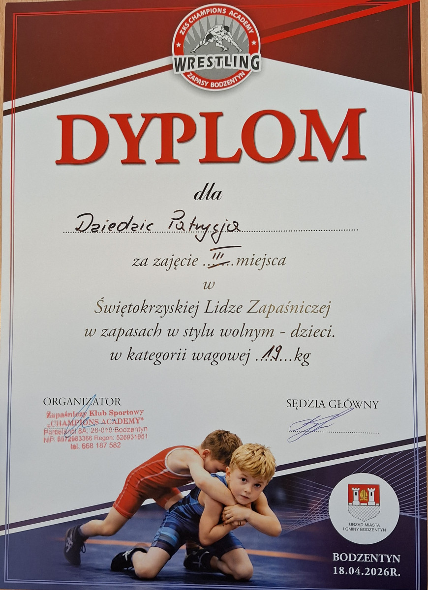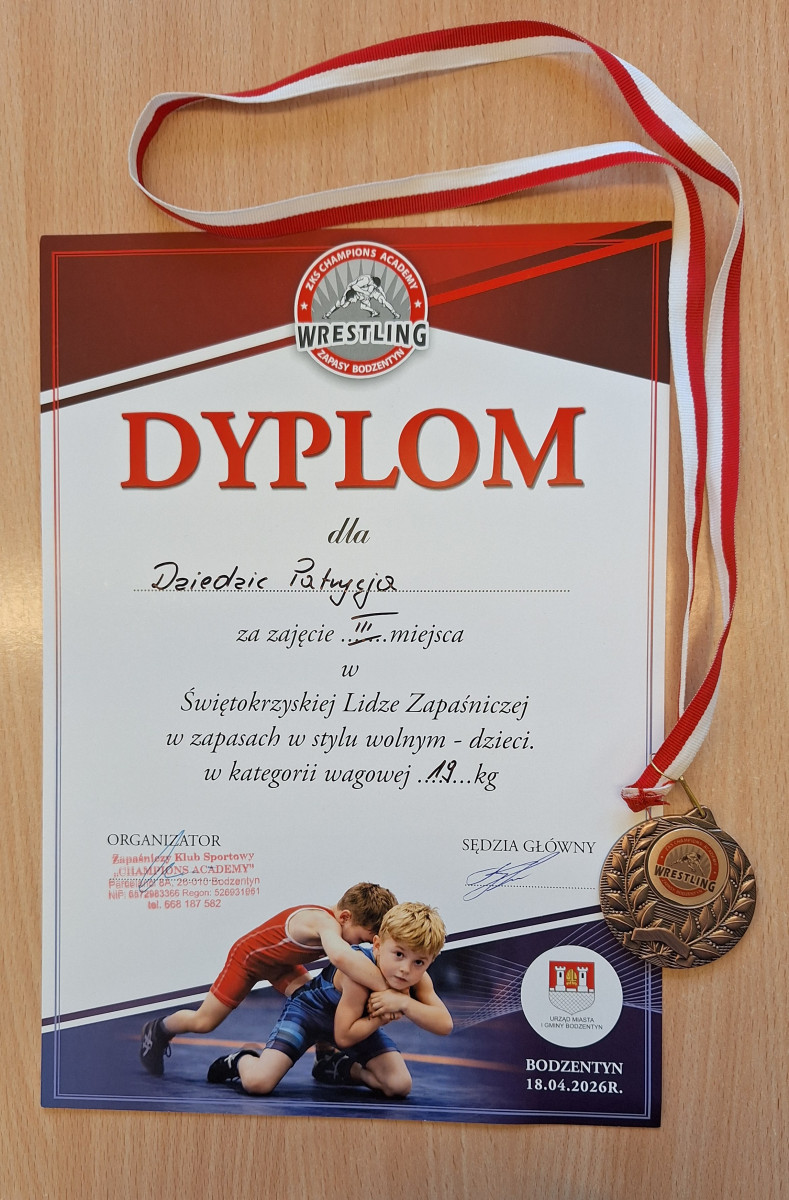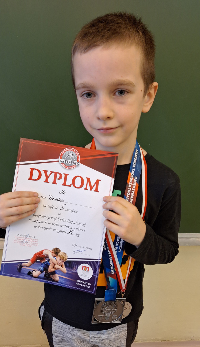 Nasi uczniowie wzięli udział w II Międzynarodowym Turnieju Zapaśniczym – Memoriale Tadeusza Trojanowskiego, który odbył się 14 marca 2026 roku w Bodzentynie. W ramach tego wydarzenia rozegrano również Świętokrzyską Ligę Zapaśniczą w stylu wolnym.