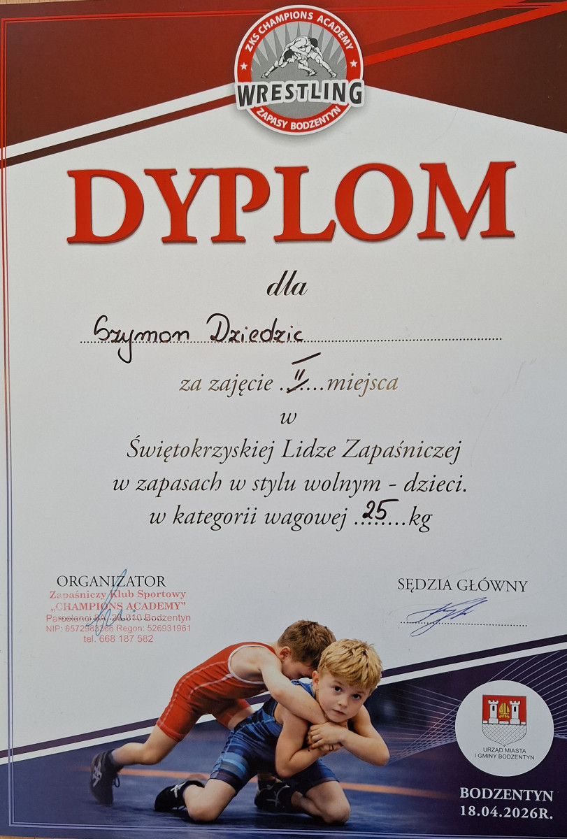 Podczas zawodów Patrycja startowała w kategorii wagowej do 19 kg i wywalczyła wysokie III miejsce. Szymon natomiast rywalizował w kategorii do 25 kg i zdobył znakomite II miejsce, potwierdzając swój wysoki poziom sportowy.