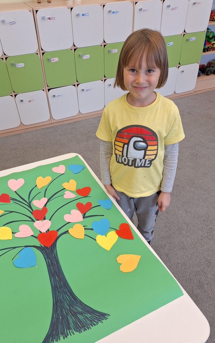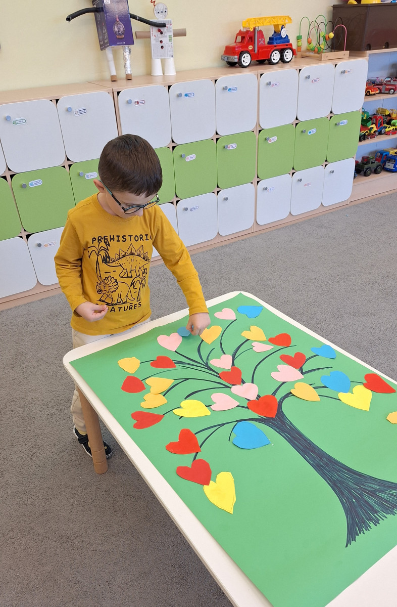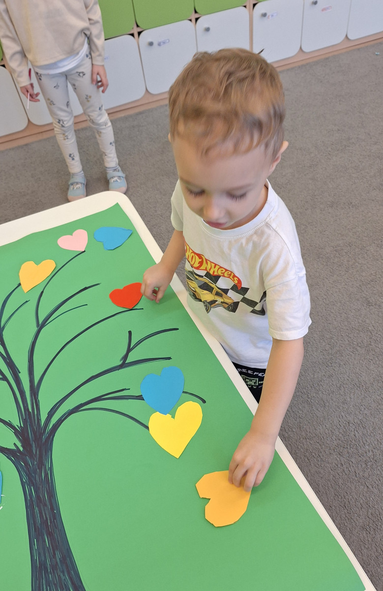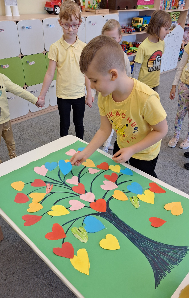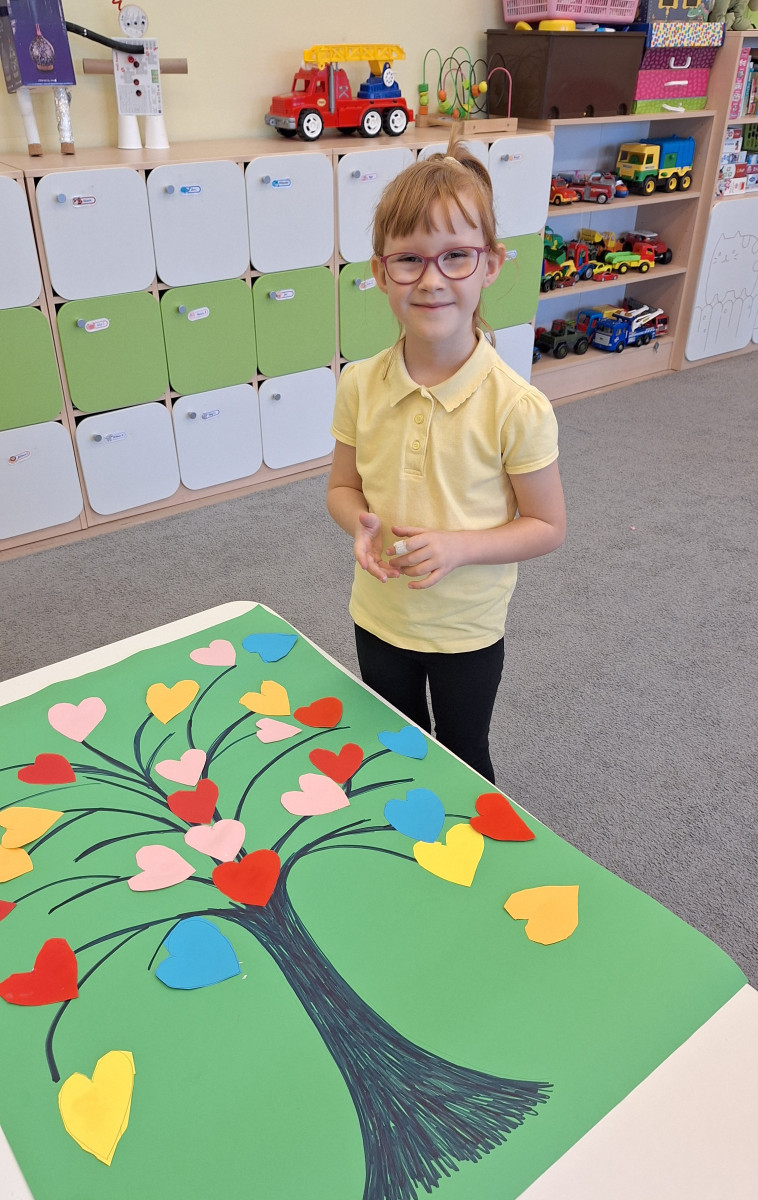 Wspólnie wykonaliśmy również plakat – serduszkowe drzewko, które stało się symbolem życzliwości, szacunku, uśmiechu i radości, jaką chcemy dzielić się z innymi każdego dnia. Każde serduszko było wyjątkowe, tak jak wyjątkowe są gesty, którymi obdarzamy siebie nawzajem. ❤️