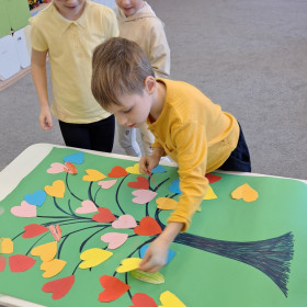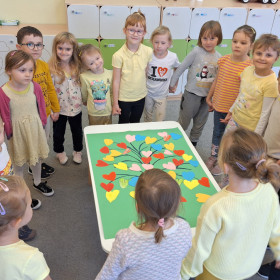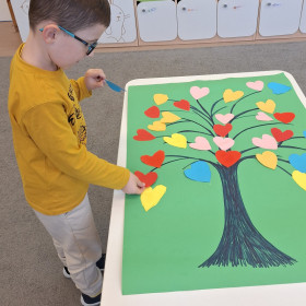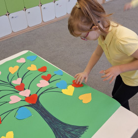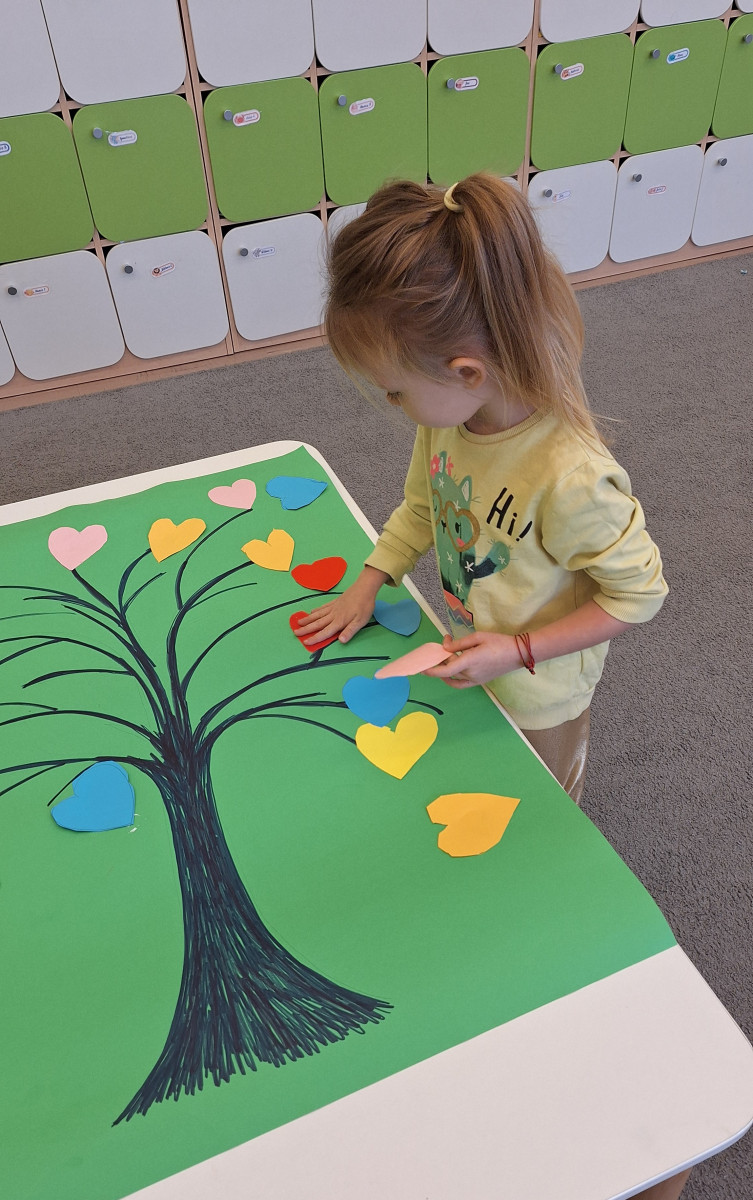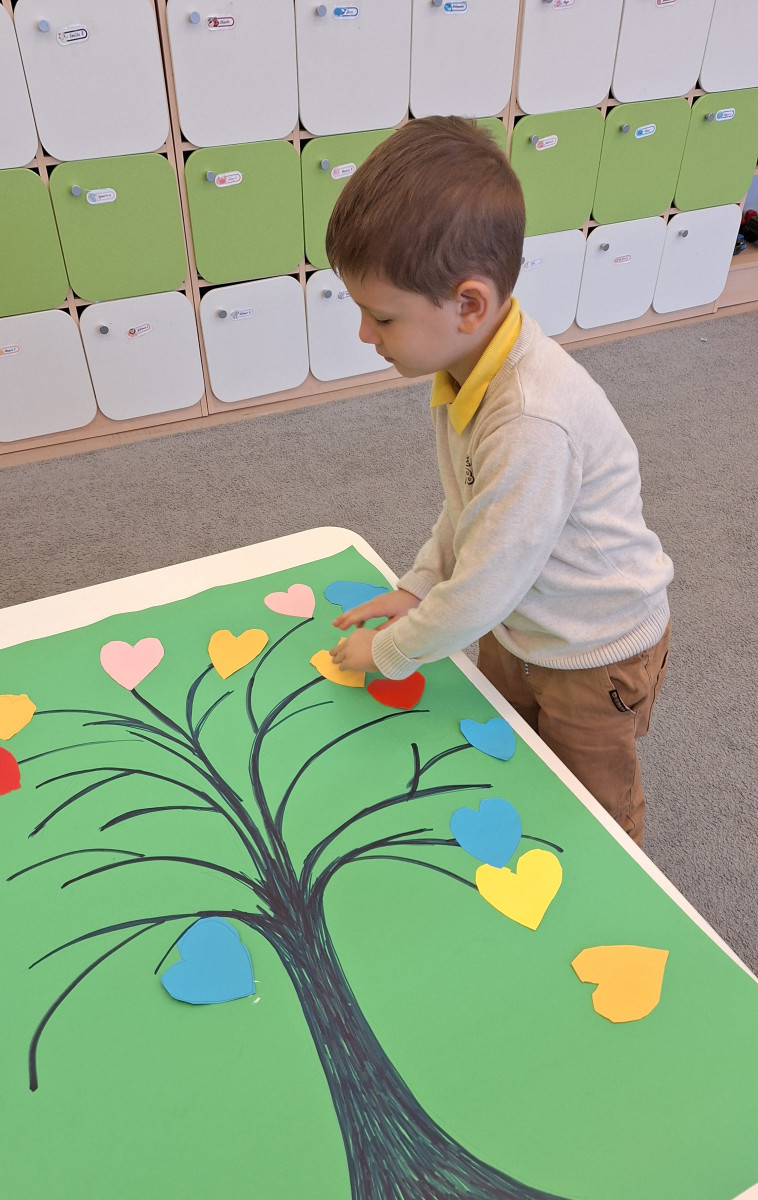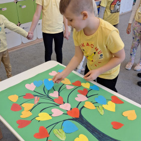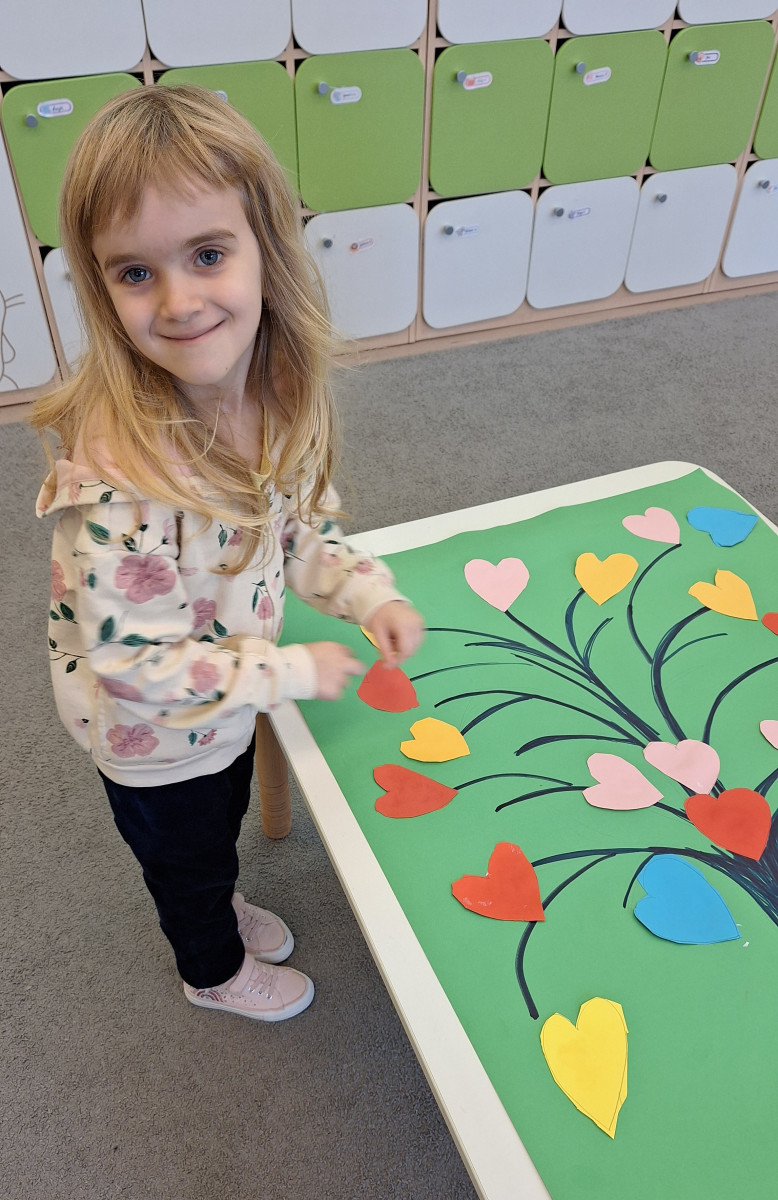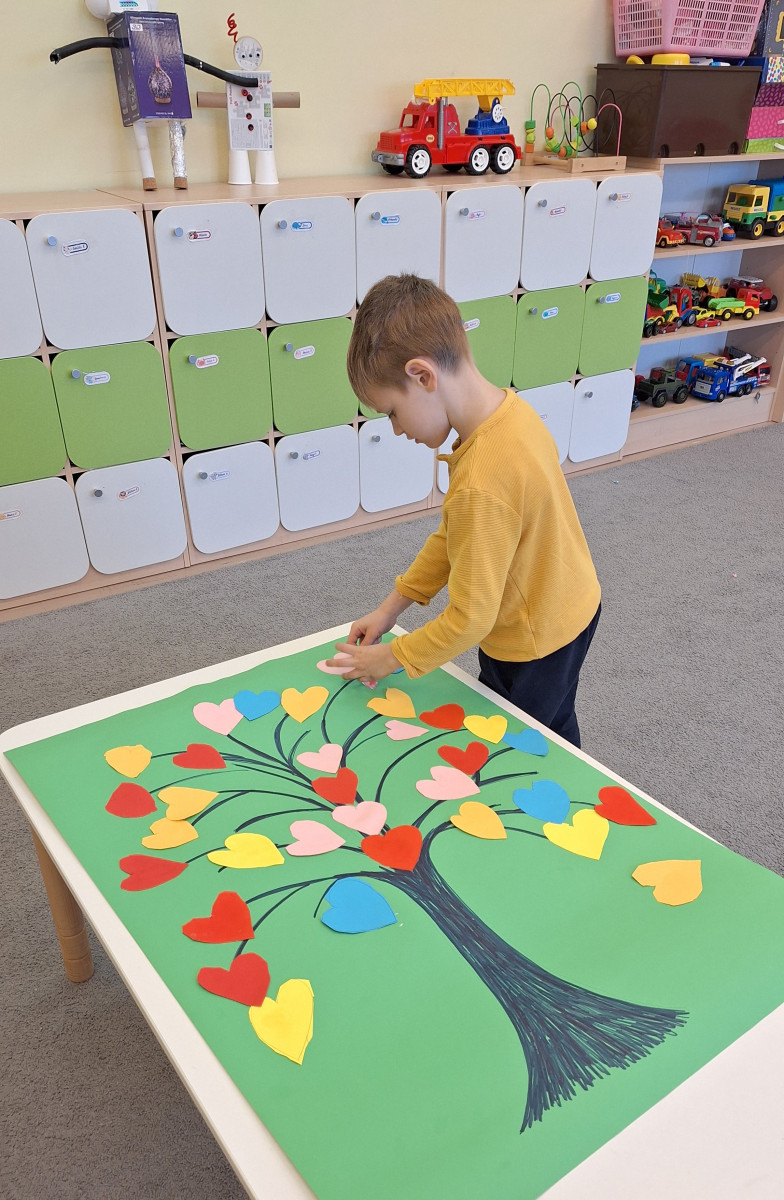 Wspólnie wykonaliśmy również plakat – serduszkowe drzewko, które stało się symbolem życzliwości, szacunku, uśmiechu i radości, jaką chcemy dzielić się z innymi każdego dnia. Każde serduszko było wyjątkowe, tak jak wyjątkowe są gesty, którymi obdarzamy siebie nawzajem. ❤️