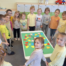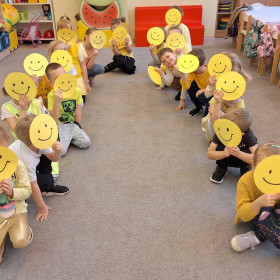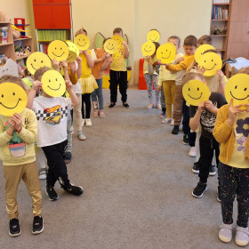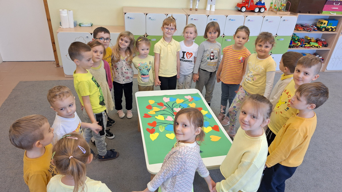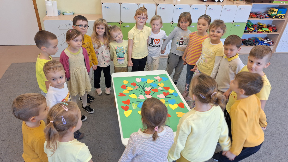 W naszej zerówce ten dzień miał wyjątkowo radosny charakter. Wszystkie dzieci przyszły ubrane na żółto, a kolor ten – kojarzący się ze słońcem, energią i radością – idealnie oddawał ducha święta.