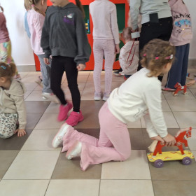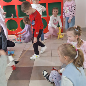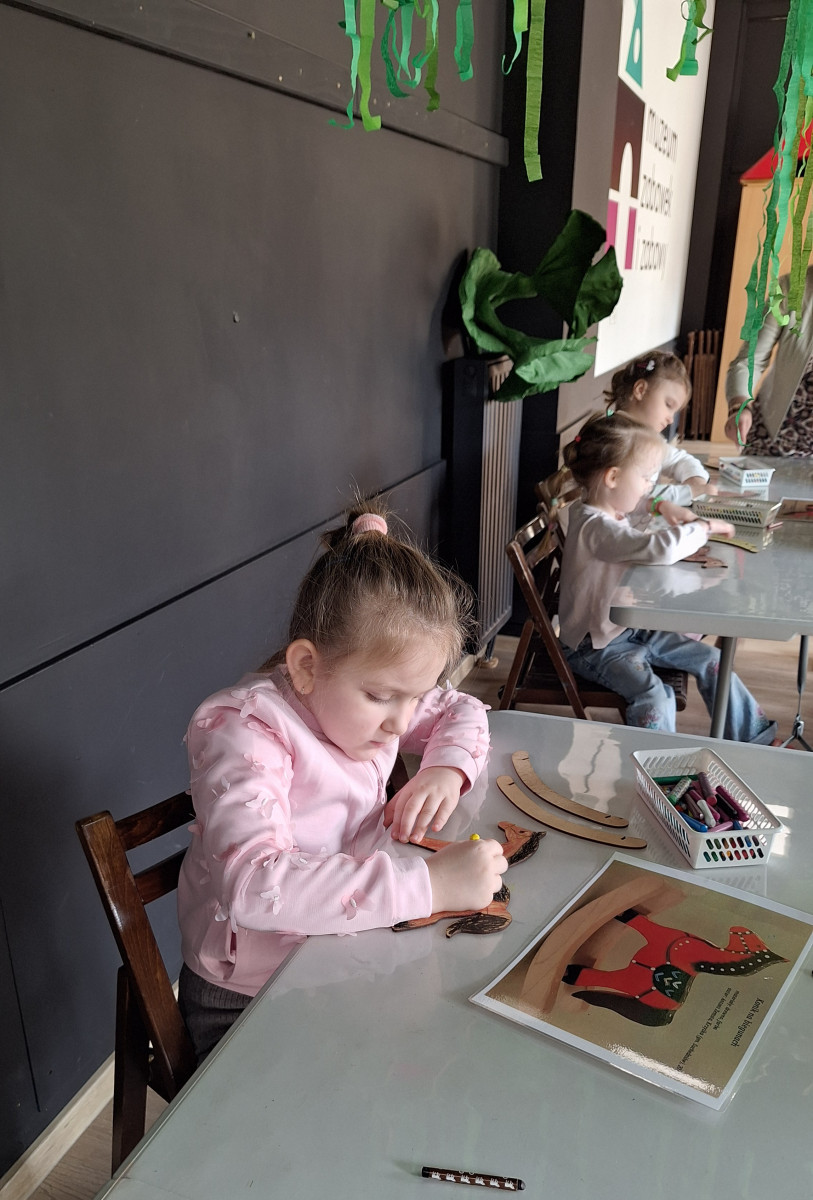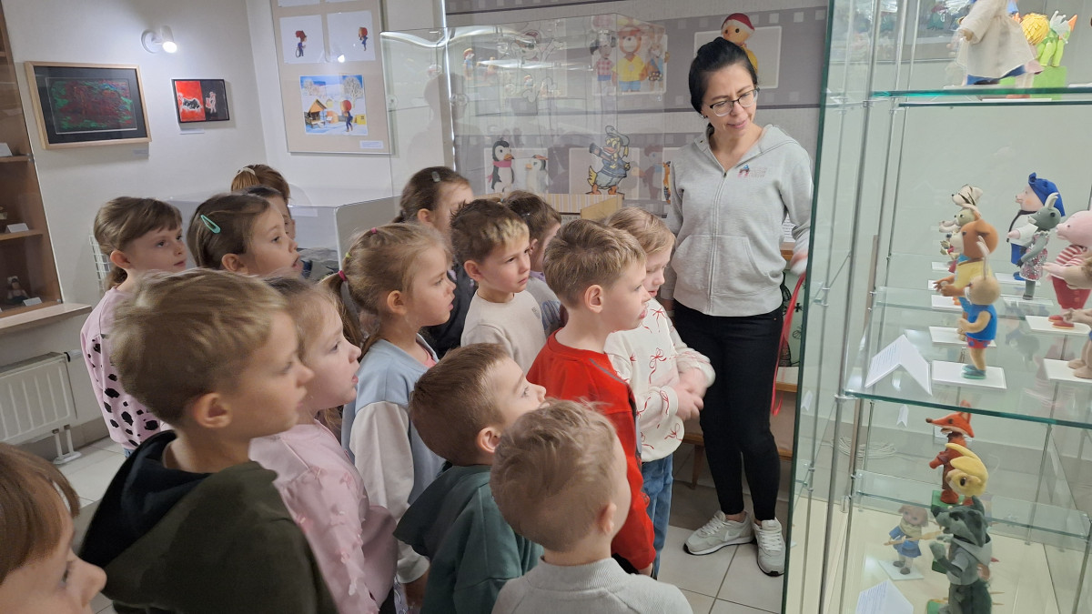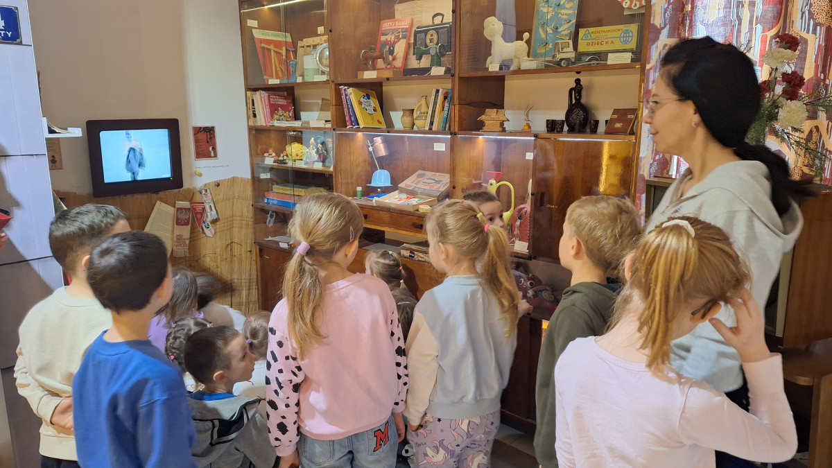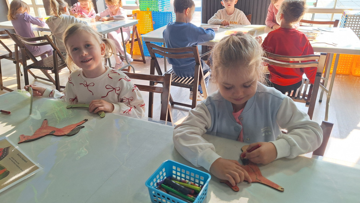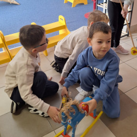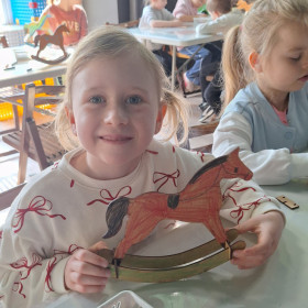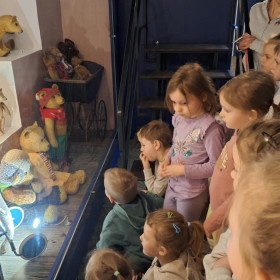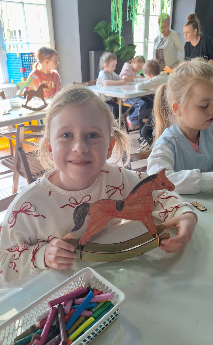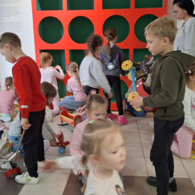 Nasi najmłodsi uczniowie z oddziału „0” wybrali się na wyjątkową wycieczkę do Muzeum Zabawek, gdzie przenieśli się w świat dzieciństwa swoich babć i dziadków. Podczas zwiedzania ekspozycji dzieci z zachwytem odkrywały skarby z dawnych lat – od misternych domków dla lalek po mechaniczne figurki. Głównym punktem programu były warsztaty edukacyjne pt. „Konik Bujany”, podczas których przedszkolaki poznały historię tej kultowej zabawki i tajniki dawnego rzemiosła. Wiele emocji wzbudziła możliwość bezpośredniego kontaktu z zabawkami z dawnych lat - dzieci mogły samodzielnie pobawić się tradycyjnymi, drewnianymi zabawkami, przekonując się, że proste zabawki również dają mnóstwo radości. Ta pełna uśmiechu lekcja historii na długo pozostanie w ich pamięci, rozbudzając ciekawość świata i szacunek do tradycji.
