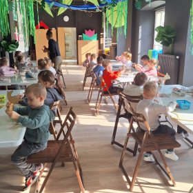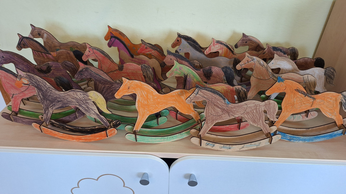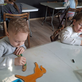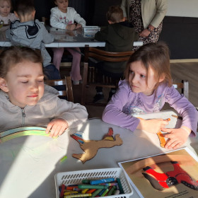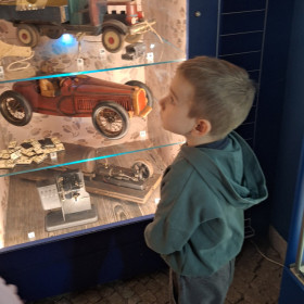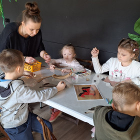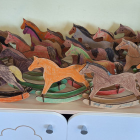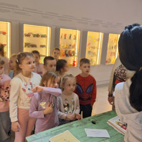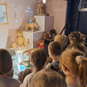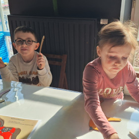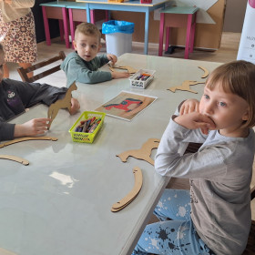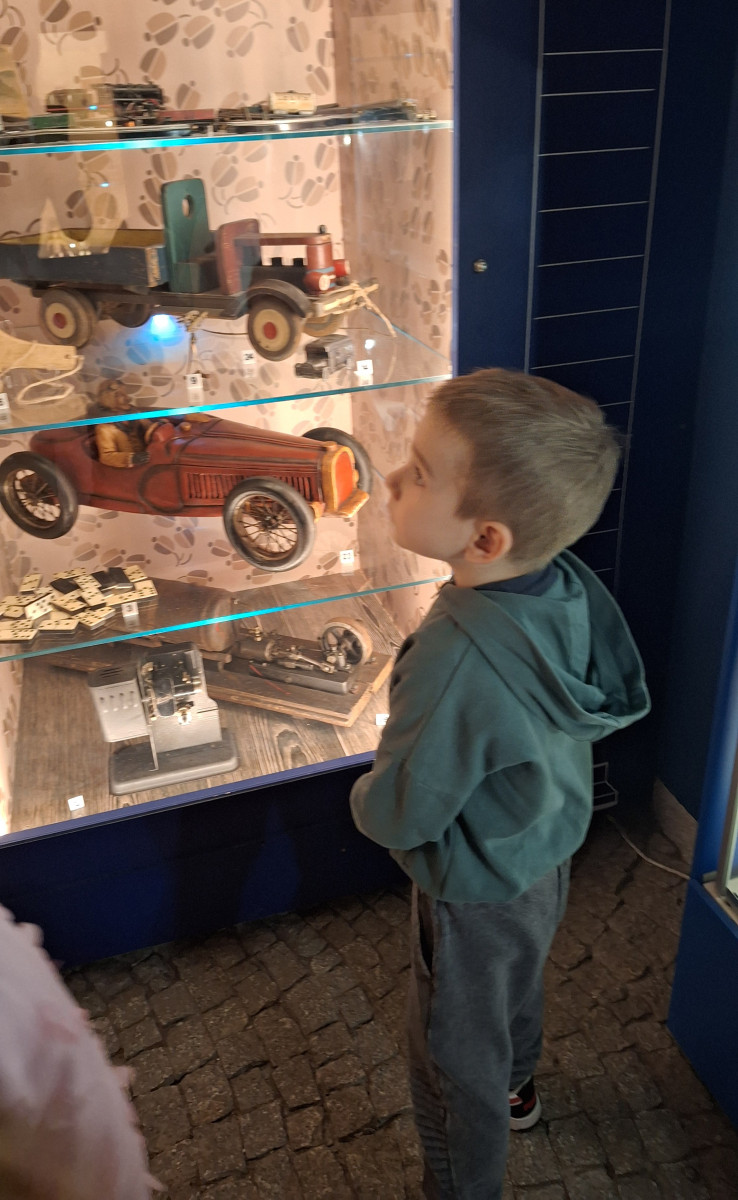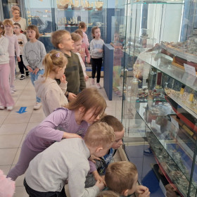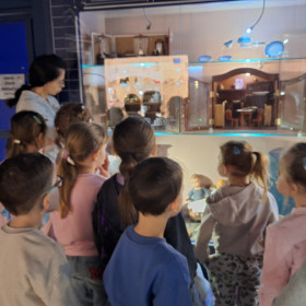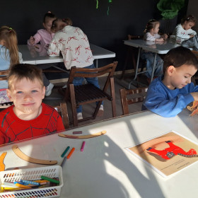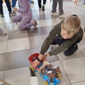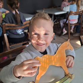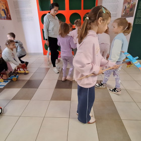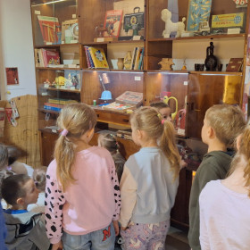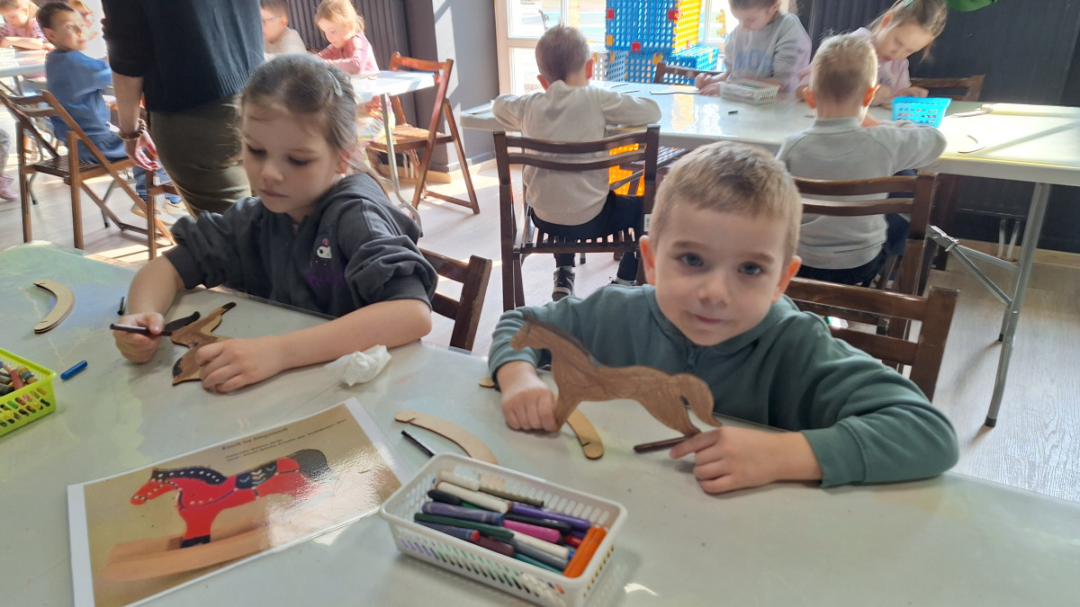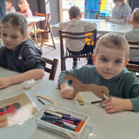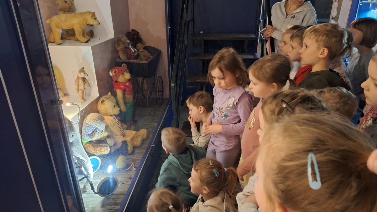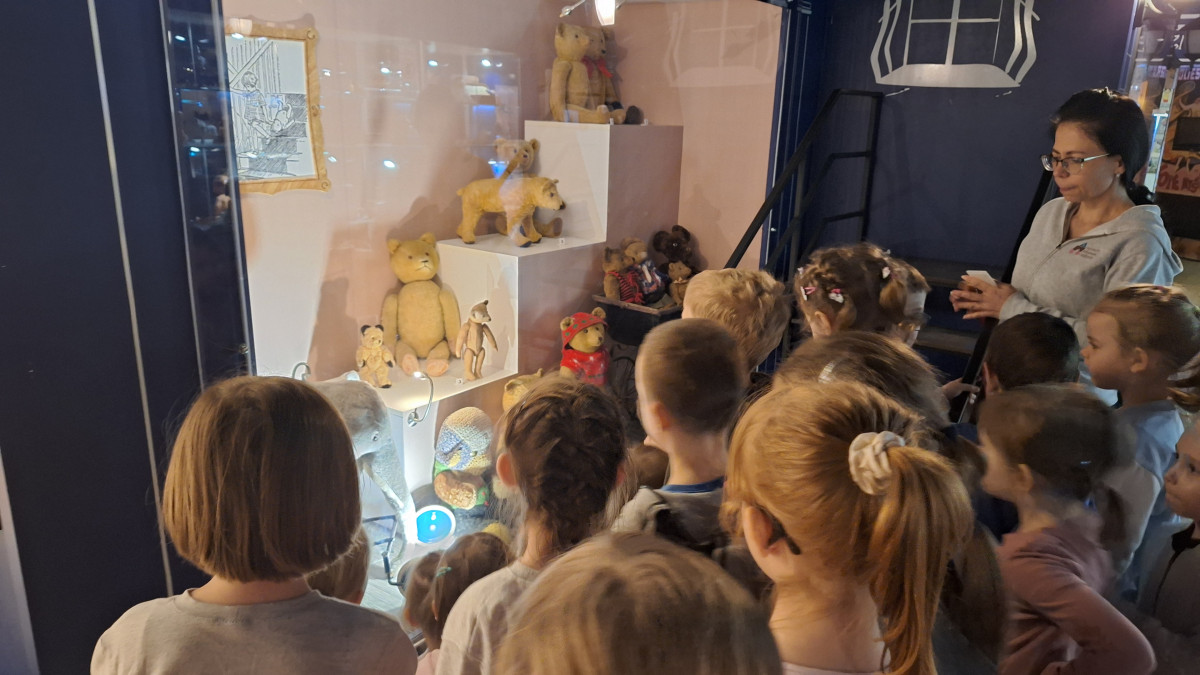 Nasi najmłodsi uczniowie z oddziału „0” wybrali się na wyjątkową wycieczkę do Muzeum Zabawek, gdzie przenieśli się w świat dzieciństwa swoich babć i dziadków. Podczas zwiedzania ekspozycji dzieci z zachwytem odkrywały skarby z dawnych lat – od misternych domków dla lalek po mechaniczne figurki. Głównym punktem programu były warsztaty edukacyjne pt. „Konik Bujany”, podczas których przedszkolaki poznały historię tej kultowej zabawki i tajniki dawnego rzemiosła. Wiele emocji wzbudziła możliwość bezpośredniego kontaktu z zabawkami z dawnych lat - dzieci mogły samodzielnie pobawić się tradycyjnymi, drewnianymi zabawkami, przekonując się, że proste zabawki również dają mnóstwo radości. Ta pełna uśmiechu lekcja historii na długo pozostanie w ich pamięci, rozbudzając ciekawość świata i szacunek do tradycji.