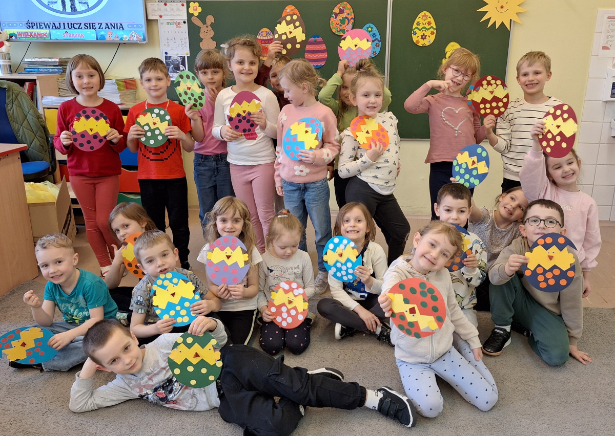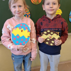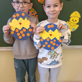 Dzieci z naszej zerówki zainspirowane wielkanocnymi tradycjami wykonały urocze prace plastyczne – kurczaczki wykluwające się z jajeczka.  Z ogromnym zaangażowaniem i radością tworzyli swoje dzieła, wykorzystując różnorodne materiały i własną wyobraźnię. Efekty ich pracy można podziwiać na korytarzu szkolnym. 🐣