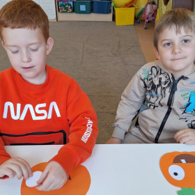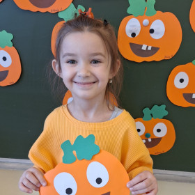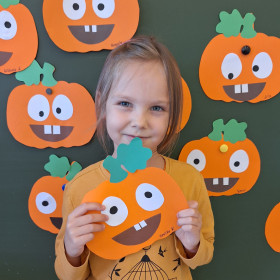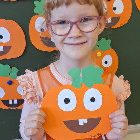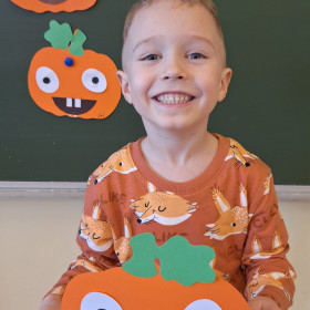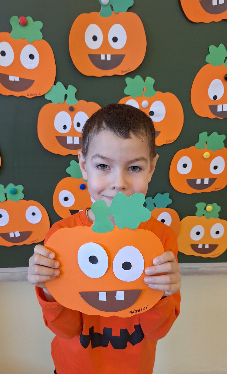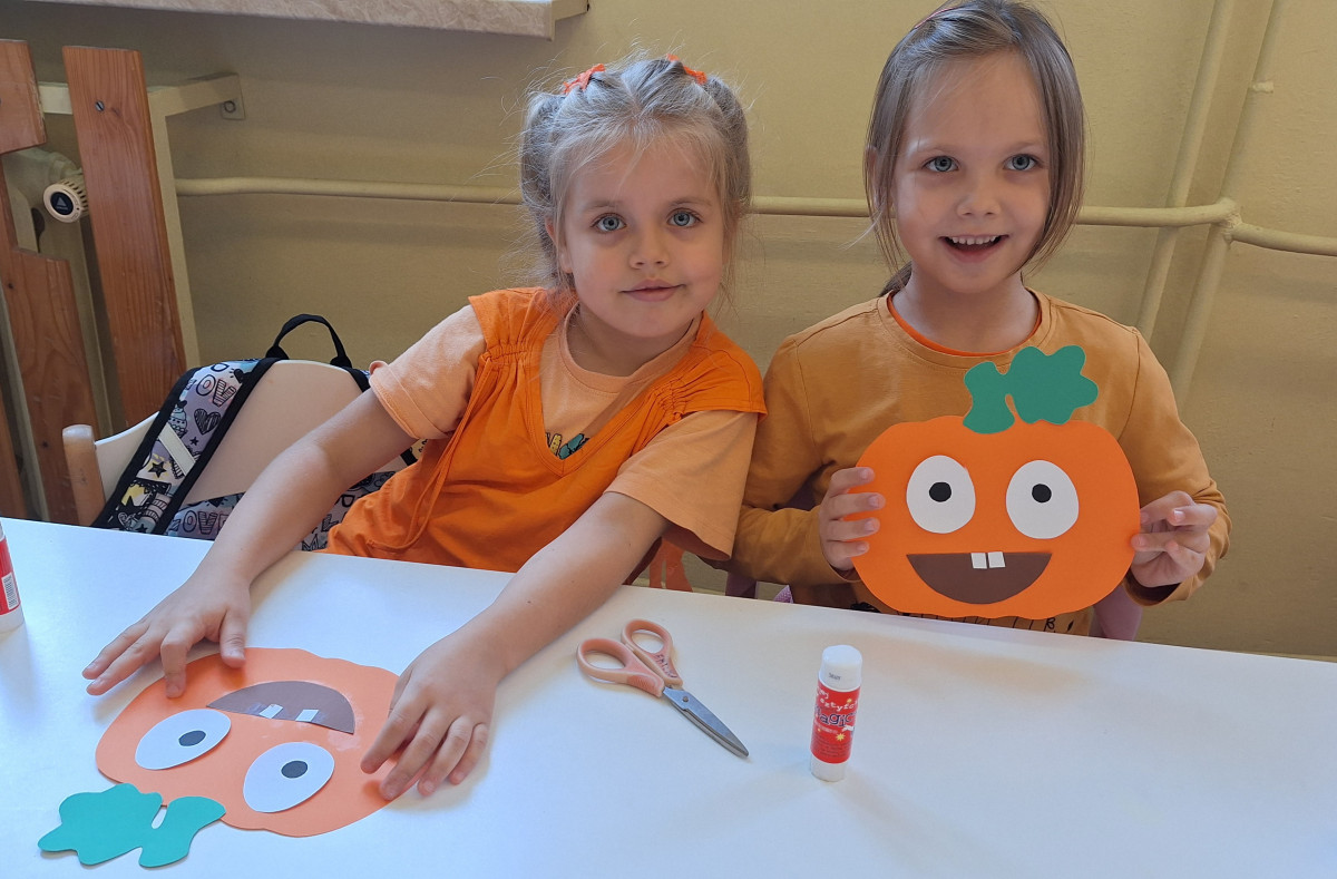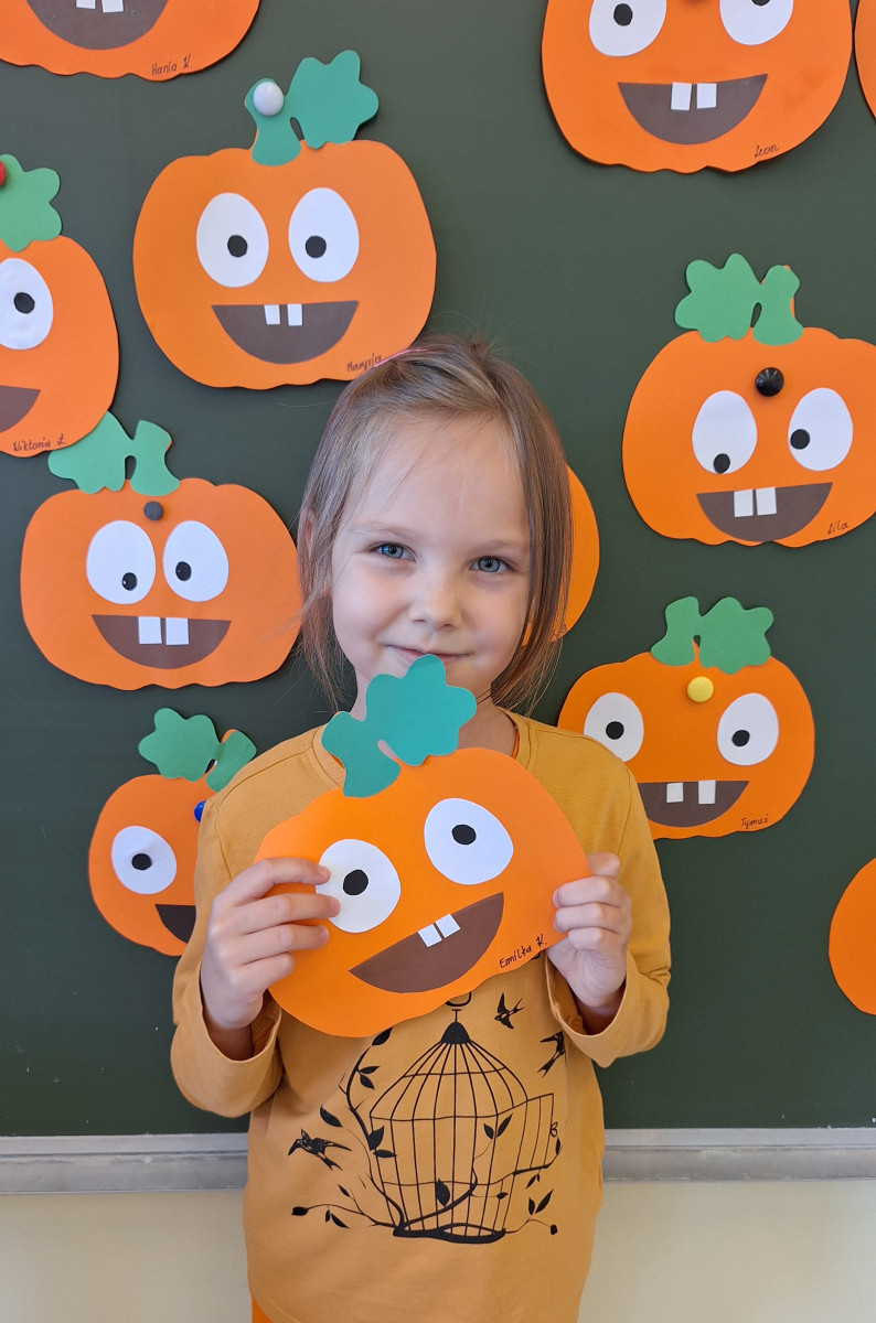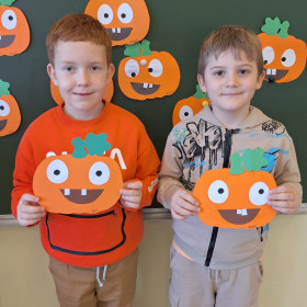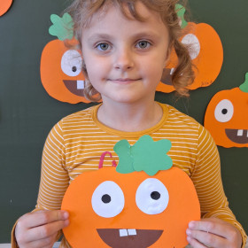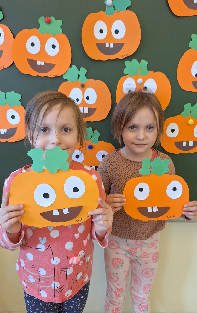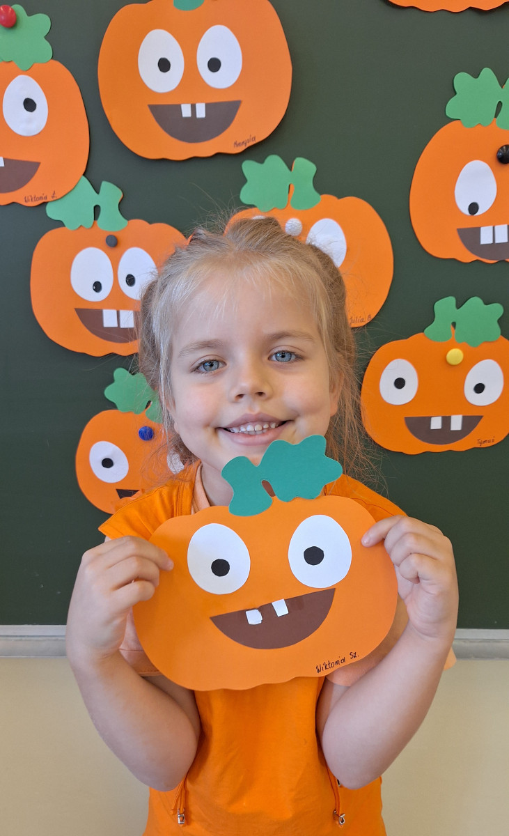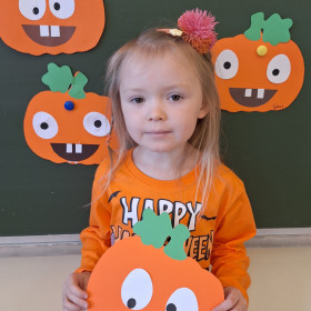 Aby ten dzień był jeszcze bardziej pomarańczowy, przedszkolaki wykonały pracę plastyczną – „Uśmiechniętą dynię”.