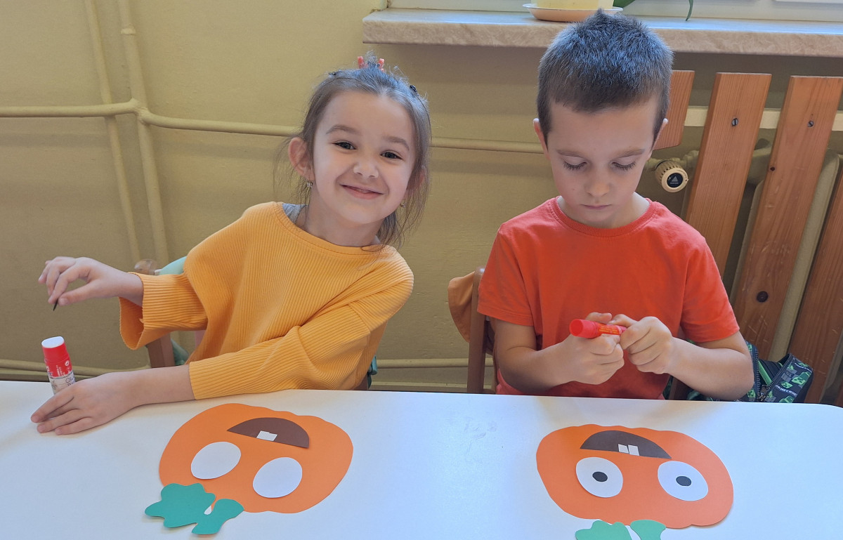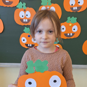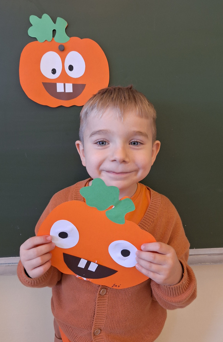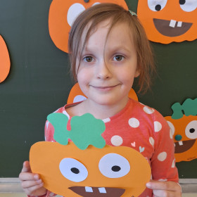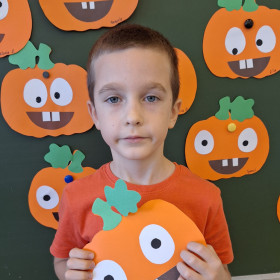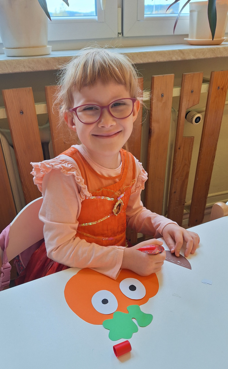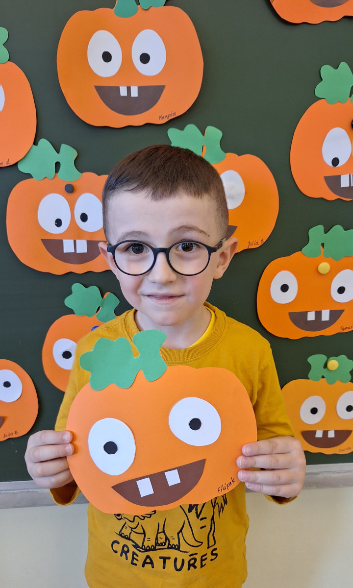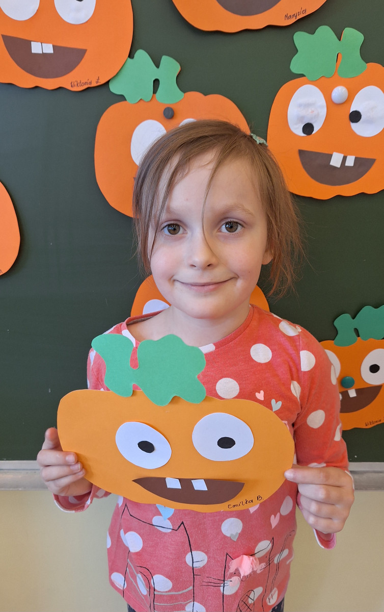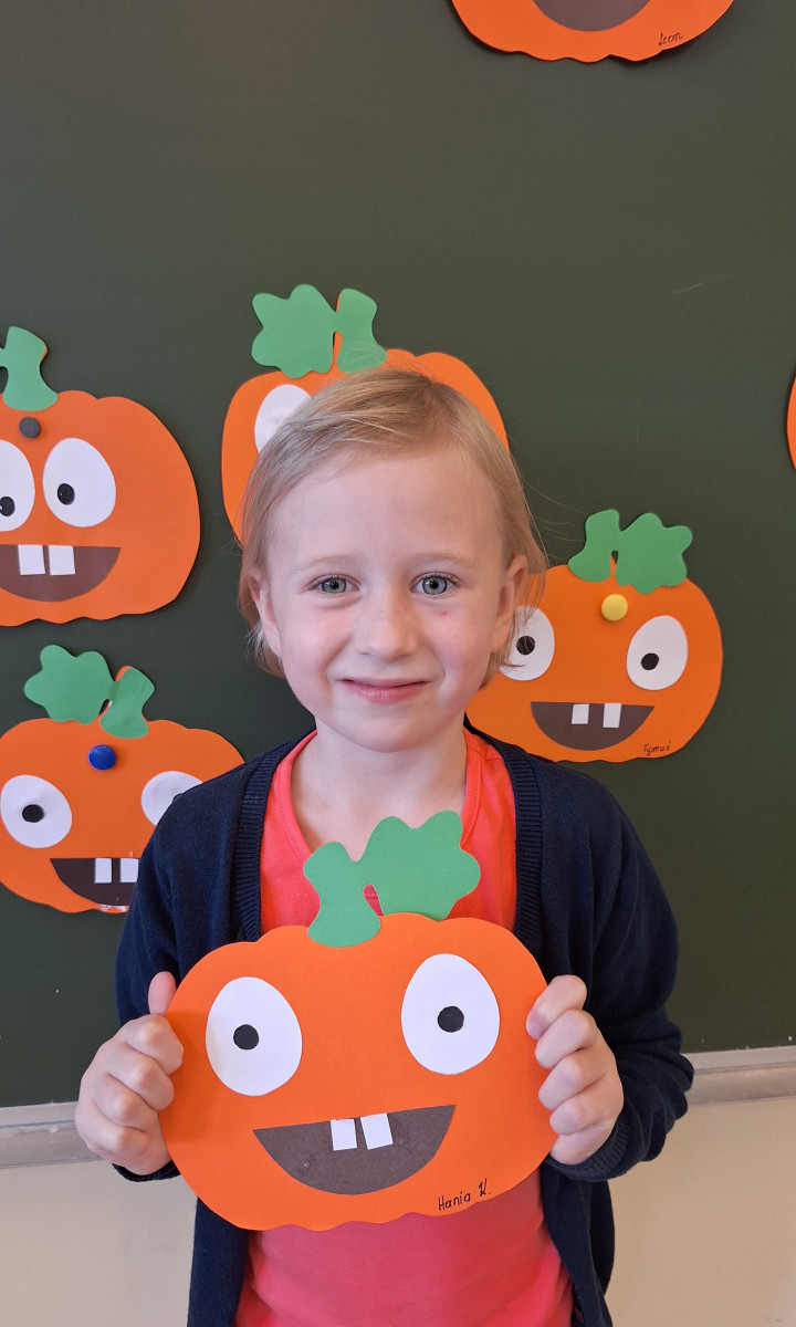 Aby ten dzień był jeszcze bardziej pomarańczowy, przedszkolaki wykonały pracę plastyczną – „Uśmiechniętą dynię”.