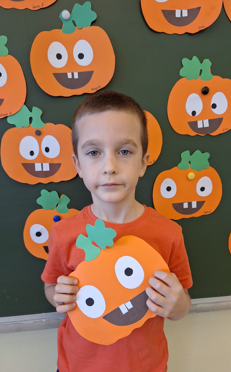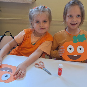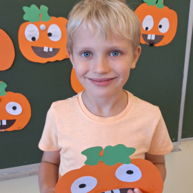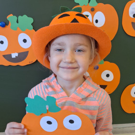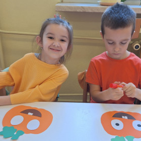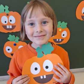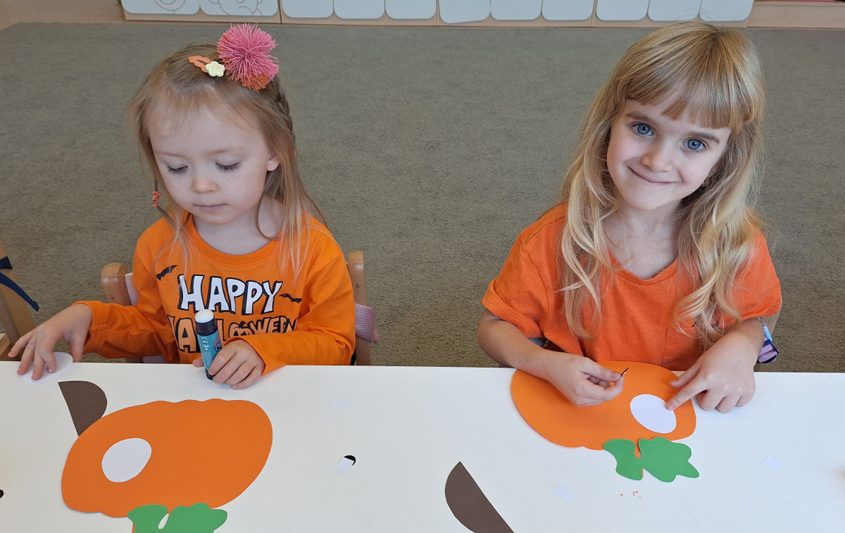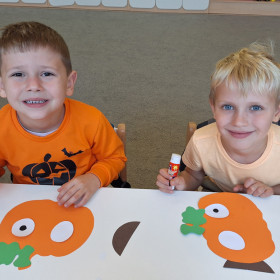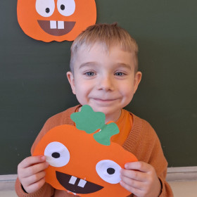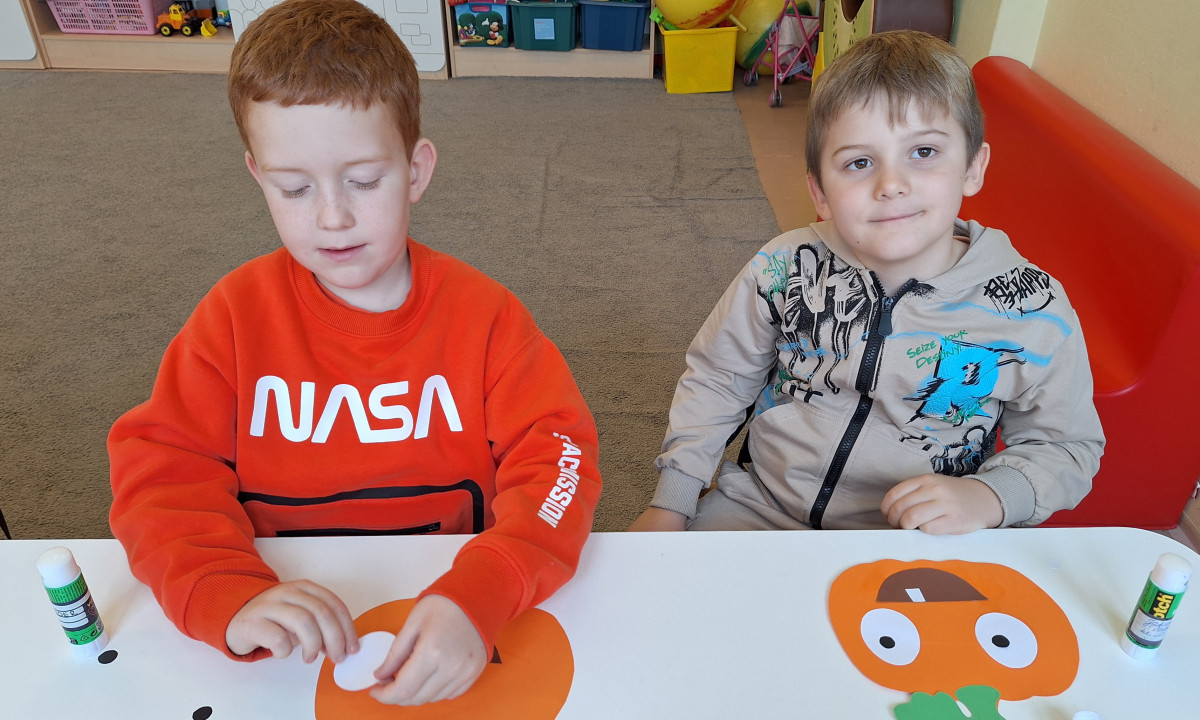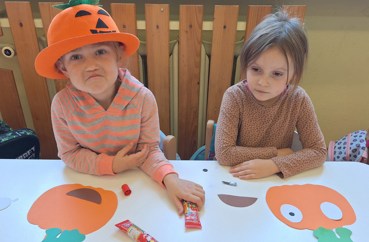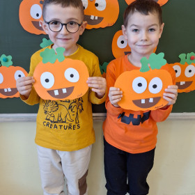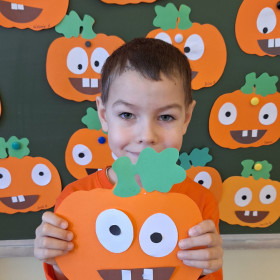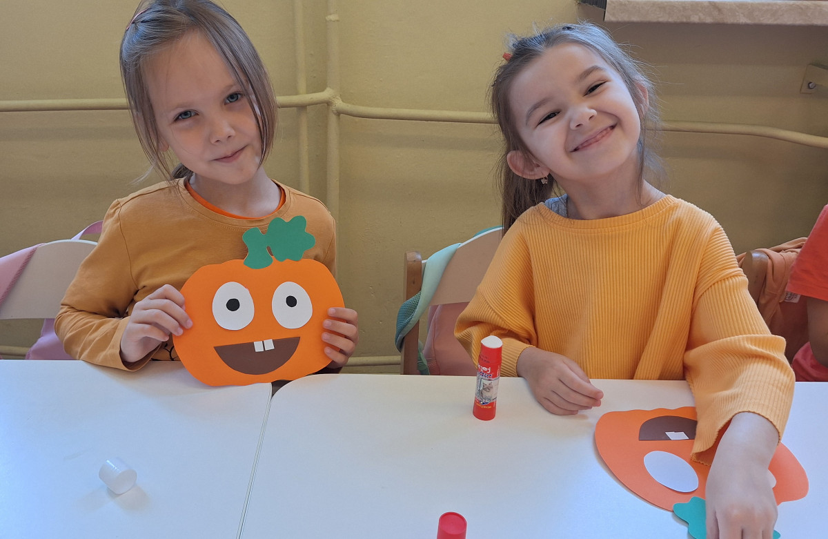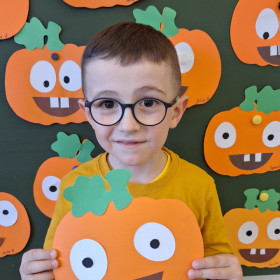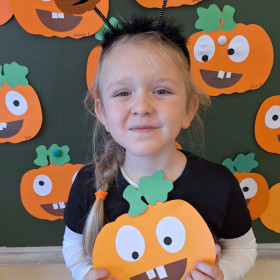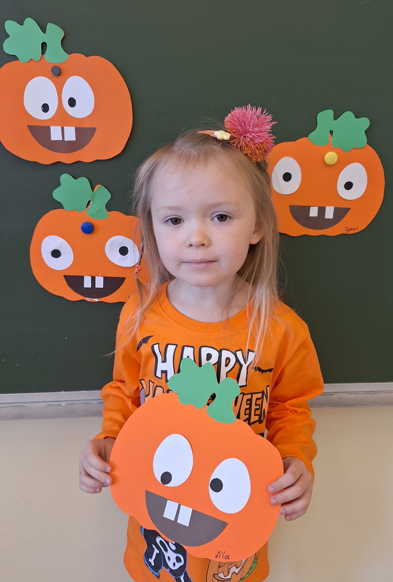 Aby ten dzień był jeszcze bardziej pomarańczowy, przedszkolaki wykonały pracę plastyczną – „Uśmiechniętą dynię”.