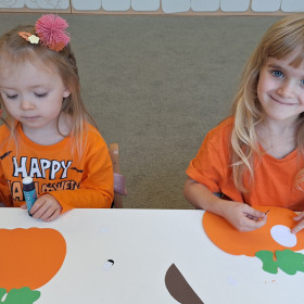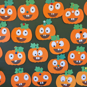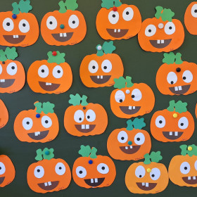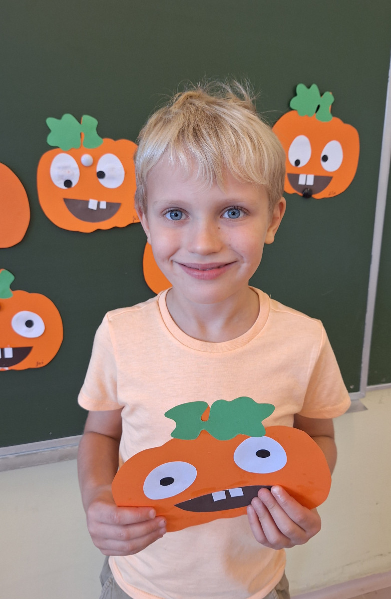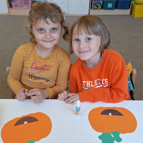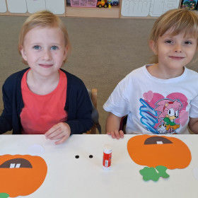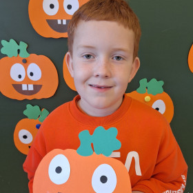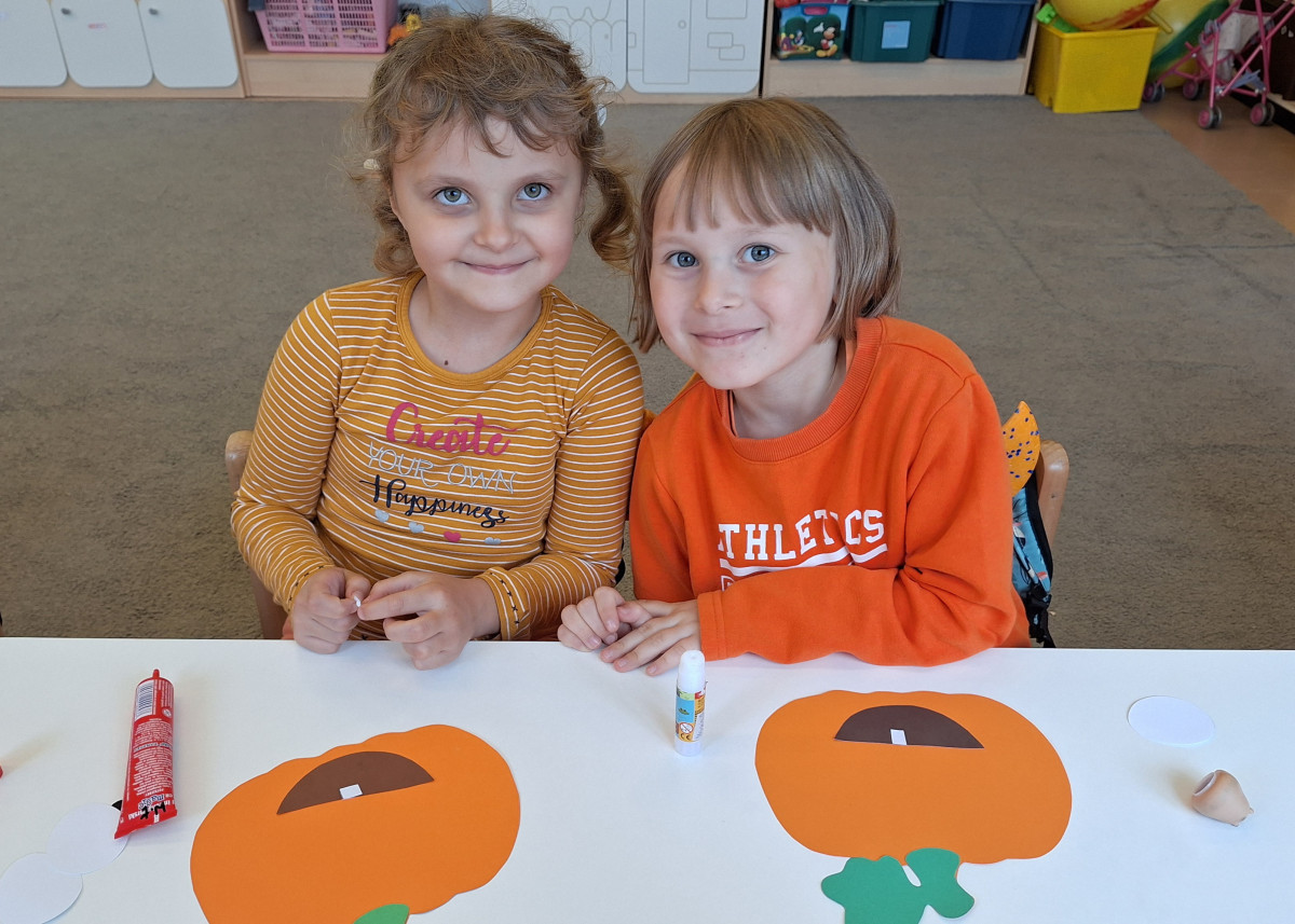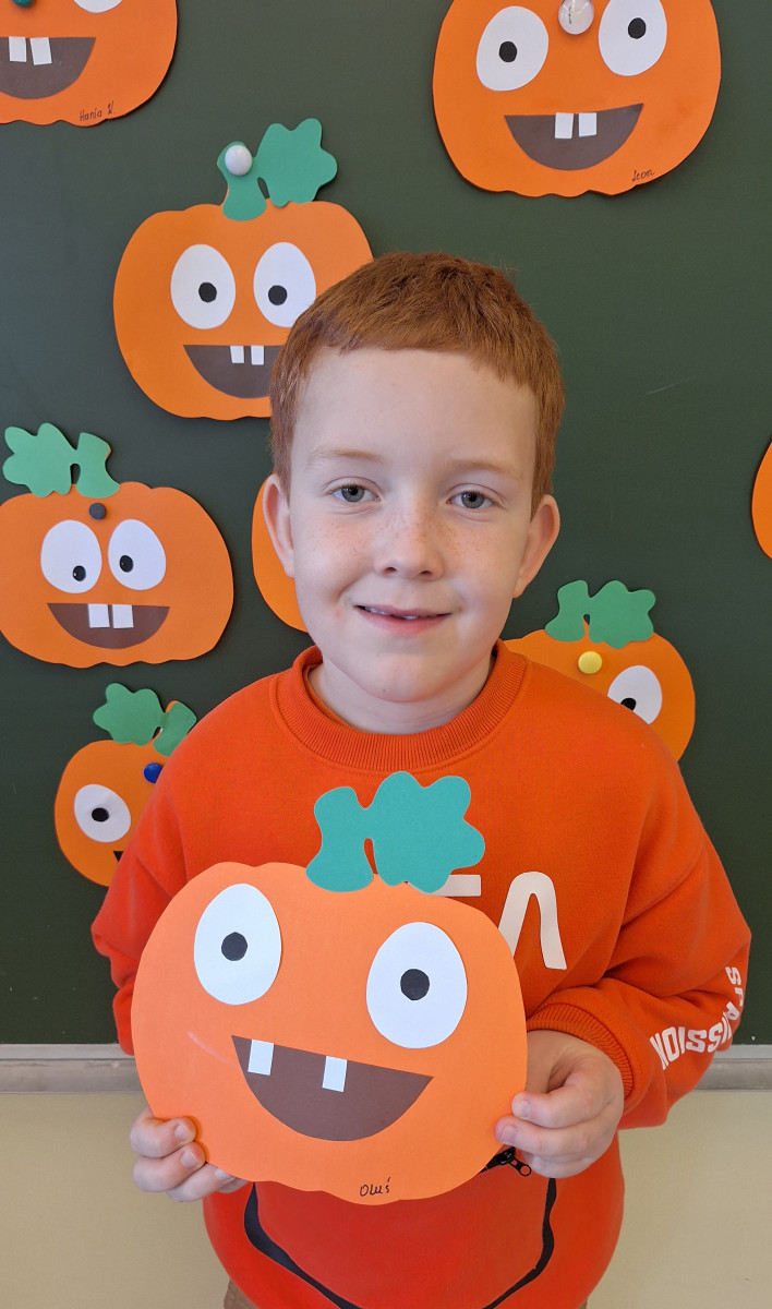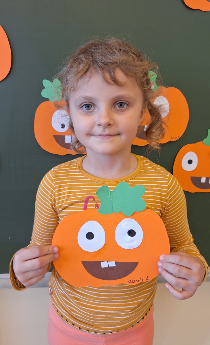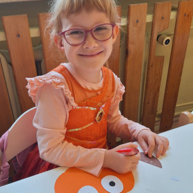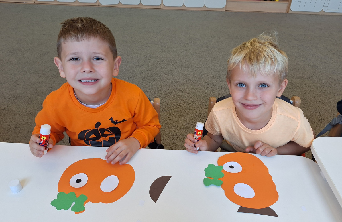 Aby ten dzień był jeszcze bardziej pomarańczowy, przedszkolaki wykonały pracę plastyczną – „Uśmiechniętą dynię”.