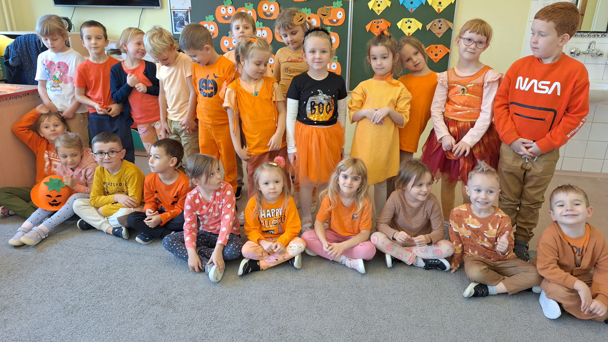 Dziś w naszym przedszkolu zrobiło się wyjątkowo ciepło i słonecznie – a to wszystko za sprawą Pomarańczowego Dnia Jesieni, zorganizowanego przez Samorząd Uczniowski.
