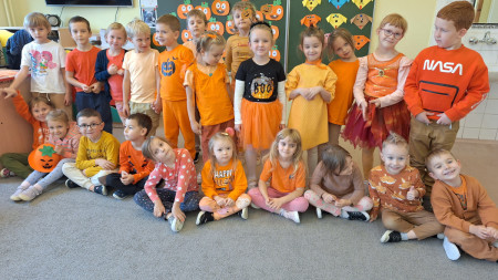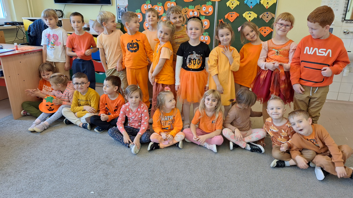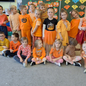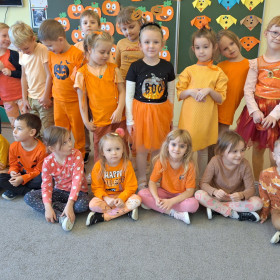 Zgodnie z zasadami zabawy, wszystkie przedszkolaki przyszły ubrane na pomarańczowo – królowały więc barwy jesiennych liści, dyni i marchewek! Dzieci wyglądały przepięknie i z ogromnym zaangażowaniem wzięły udział w tym radosnym wydarzeniu.