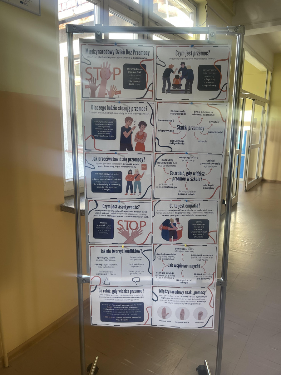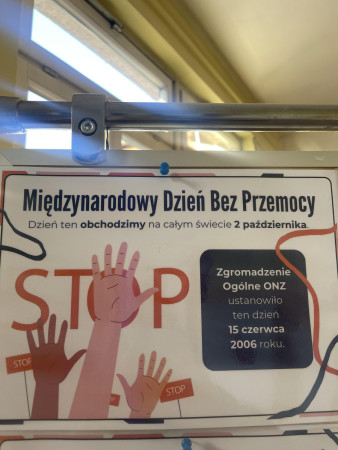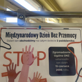 2 października w naszej szkole obchodzimy Międzynarodowy Dzień bez Przemocy uchwalony przez Zgromadzenie Ogólne ONZ. W tym szczególnym dniu chcemy przypomnieć, że każdy z nas może być wsparciem dla osoby doznającej przemocy. Jeżeli jesteś świadkiem stosowania przemocy, nie bądź obojętny na cudzą krzywdę.