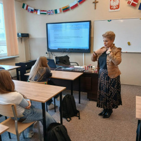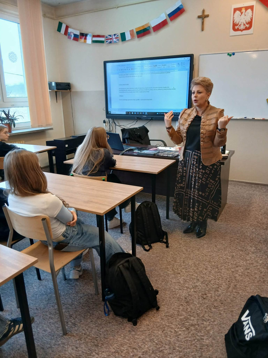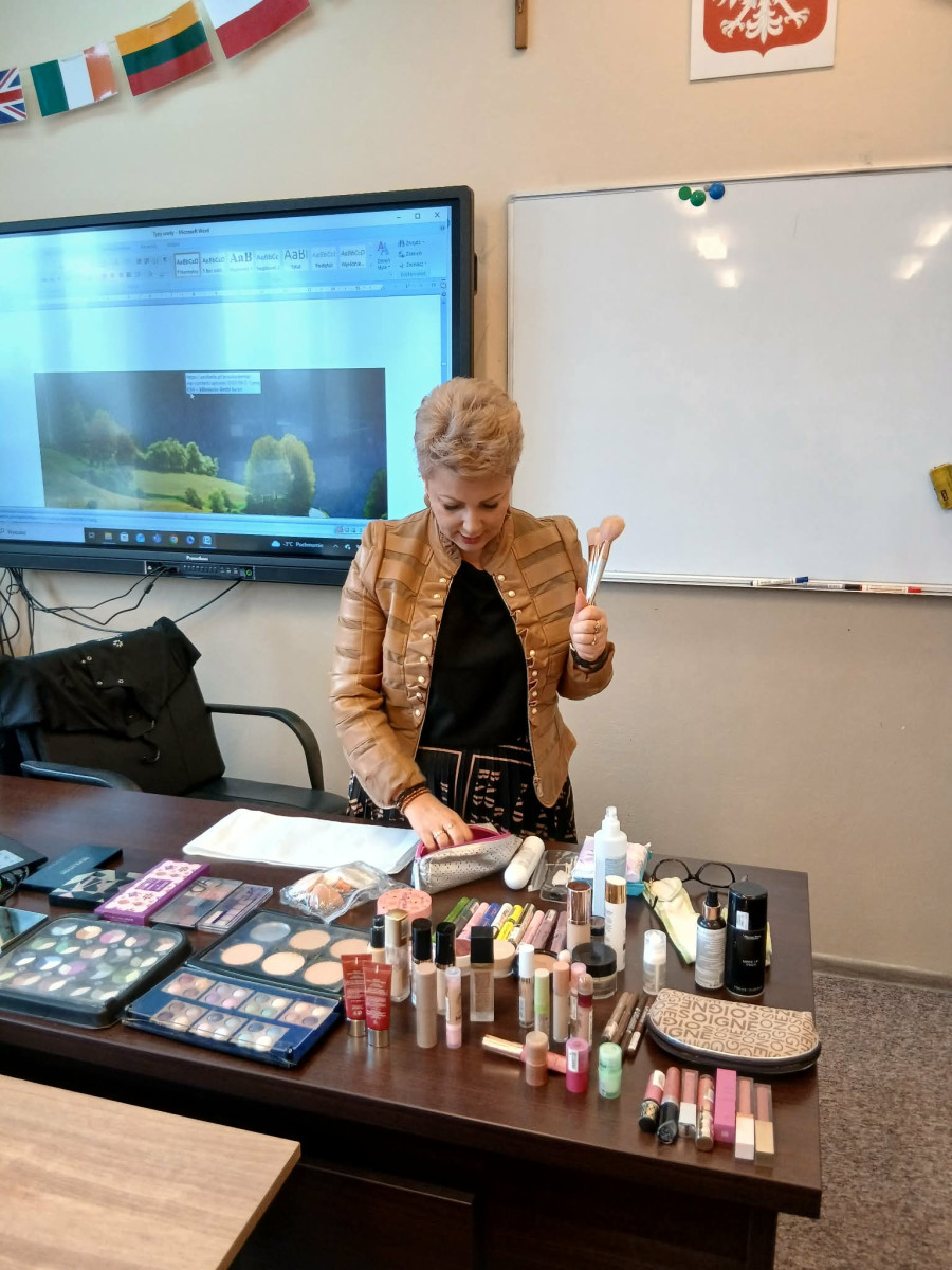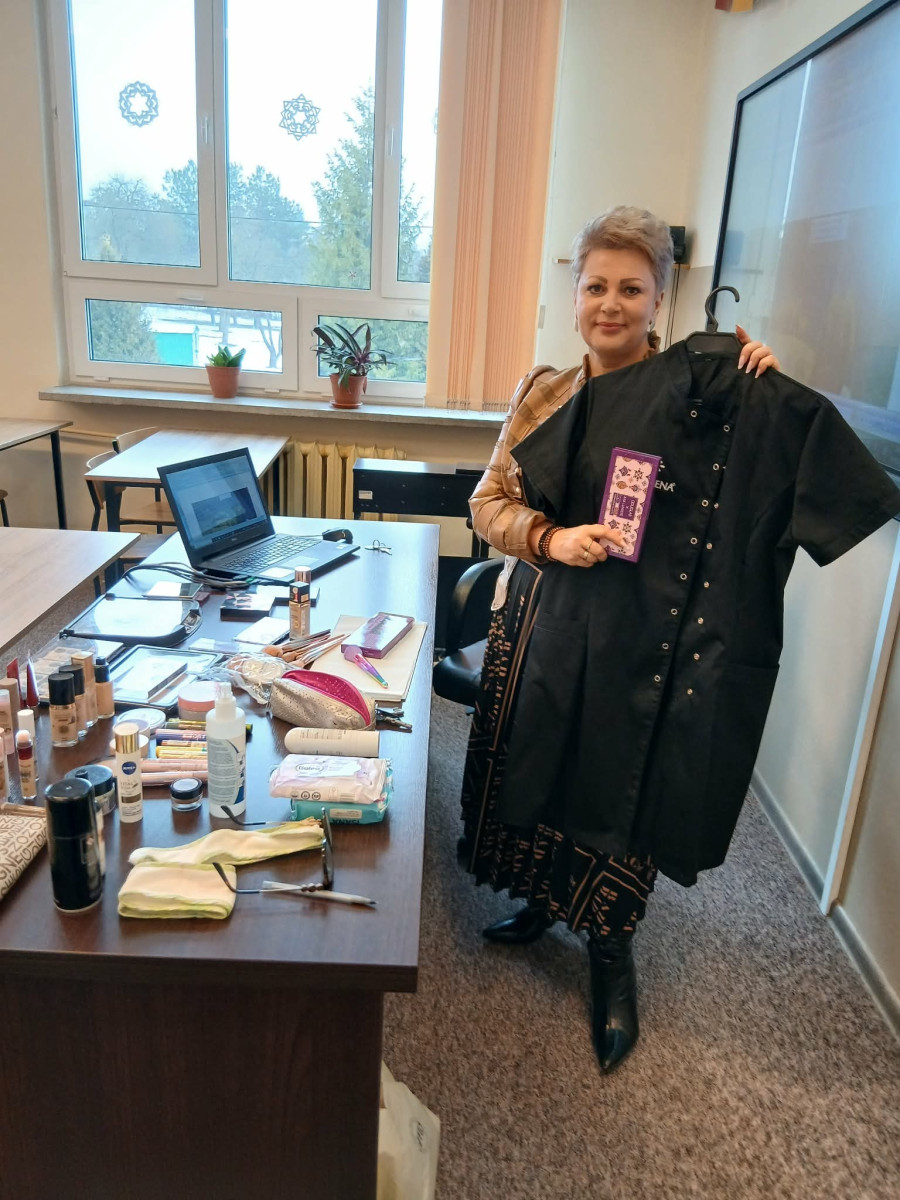 Podczas spotkania Pani Ewa zaprezentowała tajniki swojego zawodu, opowiadając o ścieżce kariery, wymaganych kwalifikacjach oraz realiach pracy w branży kosmetologicznej. Uczniowie mieli okazję poznać praktyczne aspekty zawodu, nowoczesne metody pielęgnacji oraz zadać pytania dotyczące rozwoju zawodowego.