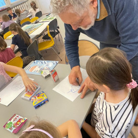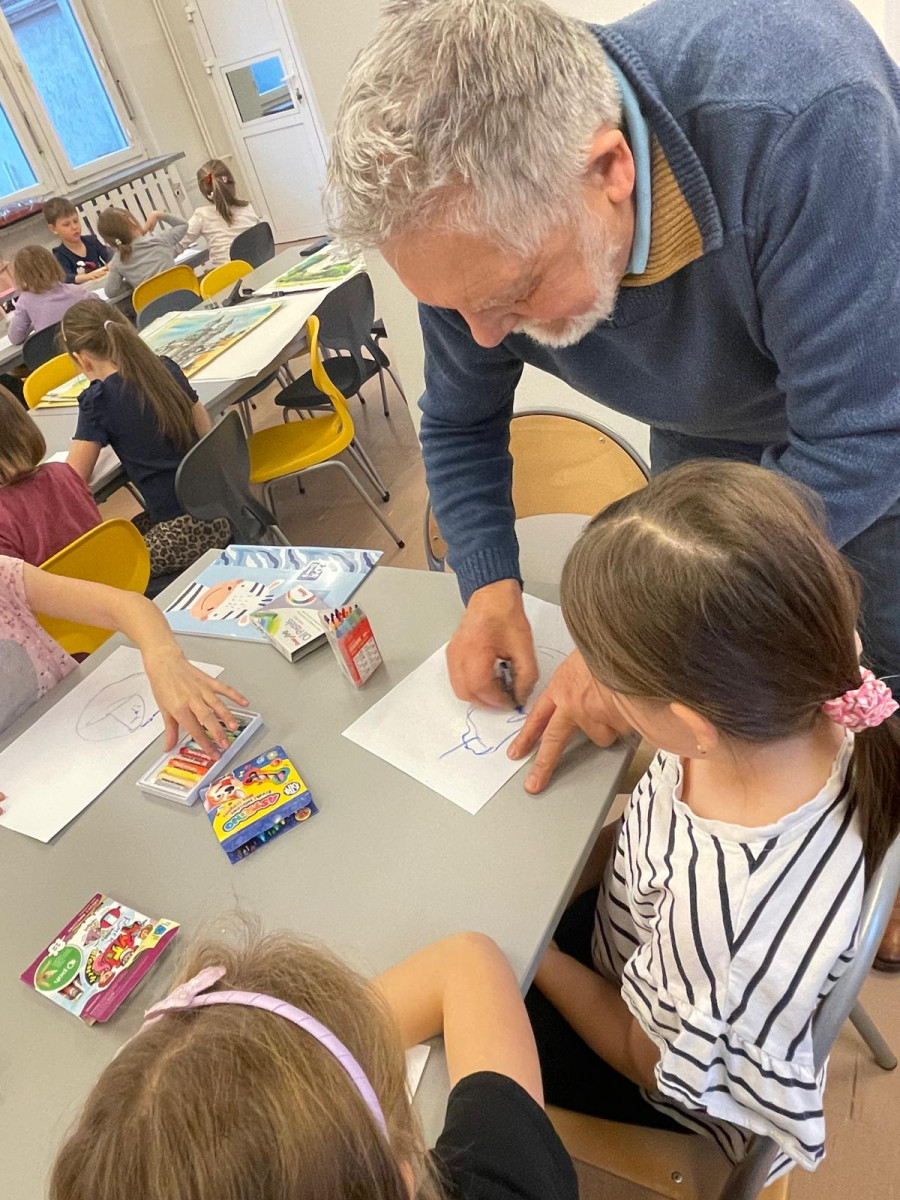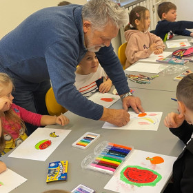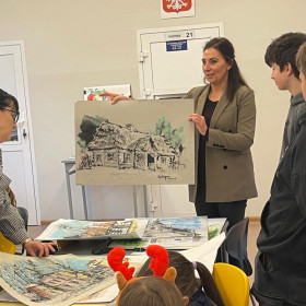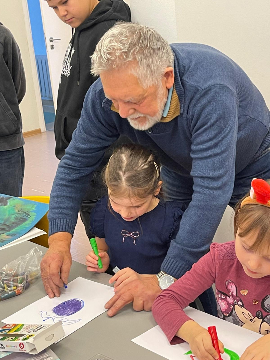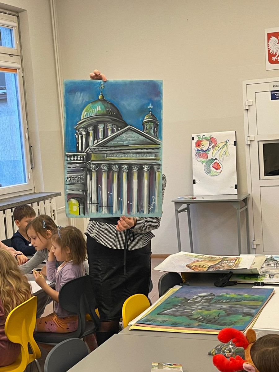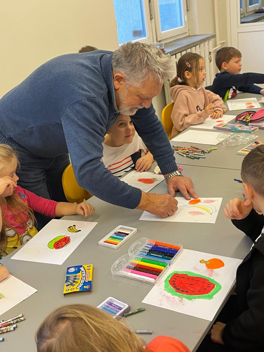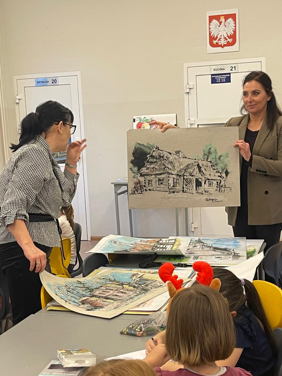 9 grudnia 2025 roku odwiedził naszą szkołę znany jędrzejowski artysta – plastyk, Pan ZBIGNIEW KASPRZAK, który maluje od ponad pięćdziesięciu lat. Przez ten czas, udało mu się stworzyć kolekcję kilku tysięcy obrazów prezentujących głównie architekturę i krajobrazy Ponidzia. Dla naszych uczniów poprowadził warsztaty plastyczne, przekazując jednocześnie informacje o historii swojego artyzmu i całego dorobku. Wszyscy świetnie się bawili robiąc przepiękne rysunki, pod okiem Mistrza.