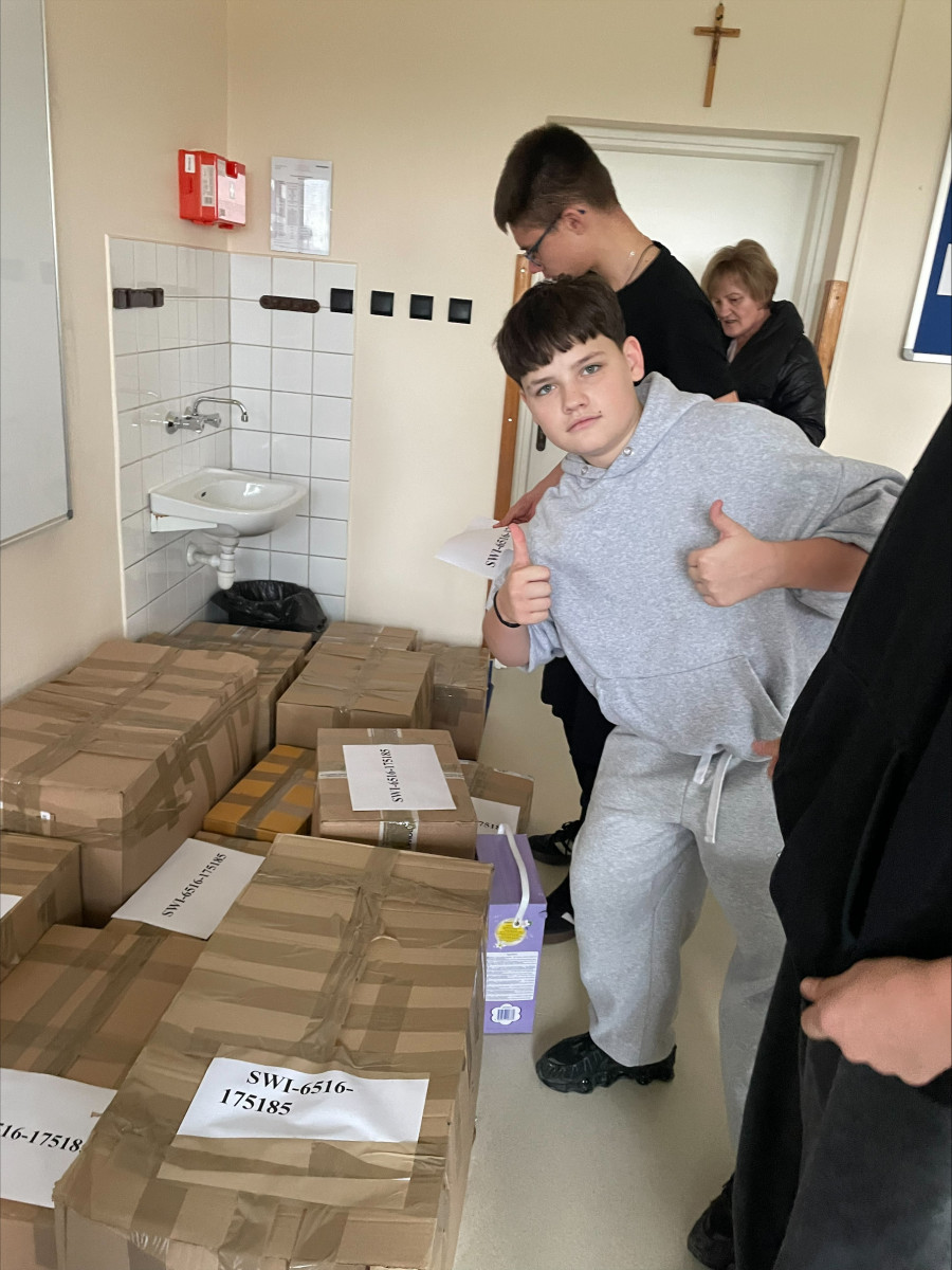 W piątek spakowaliśmy 17 pudeł darów, które zostały przewiezione do magazynu Kielce-Północ, a stamtąd do pana Darka.