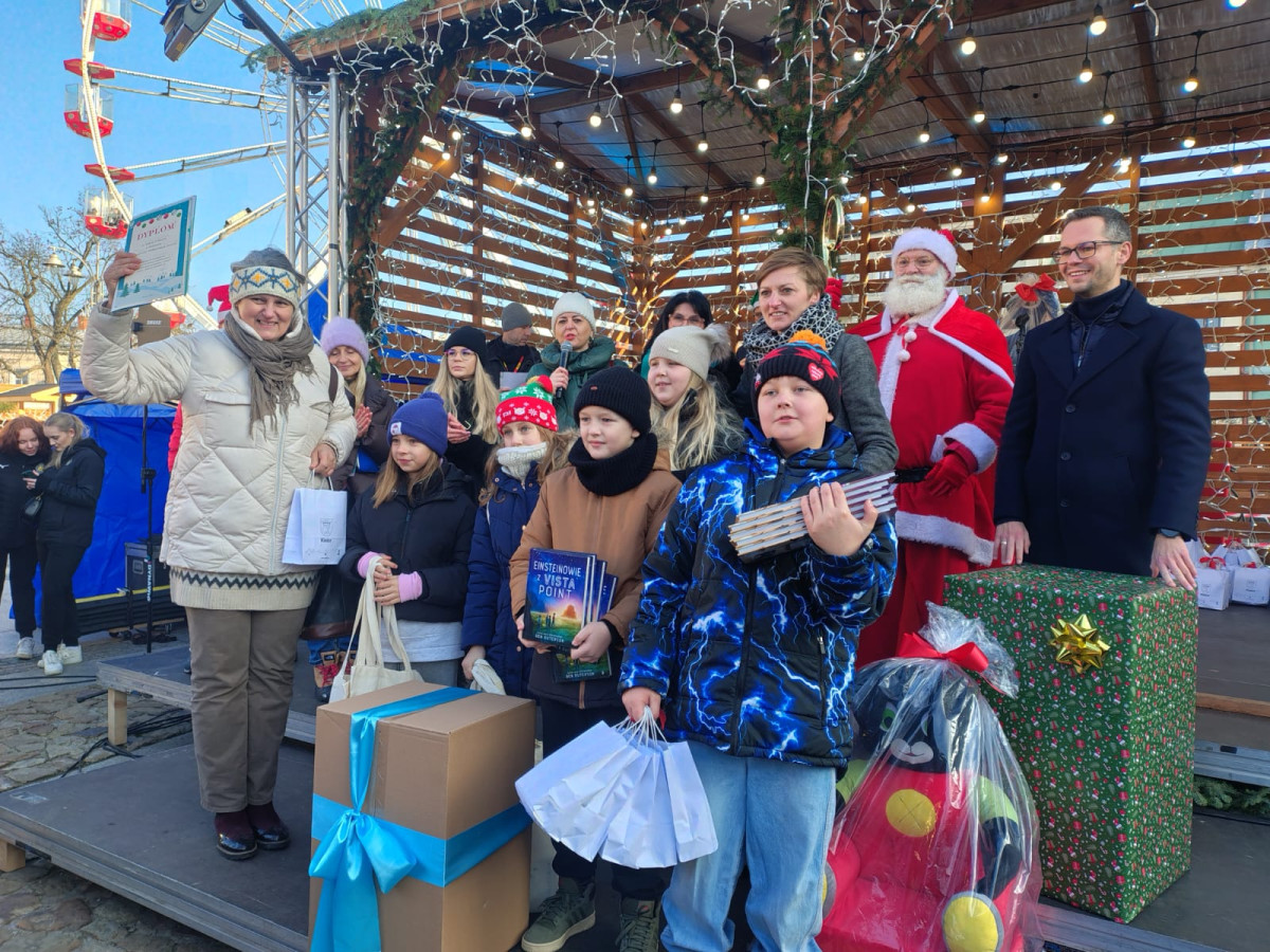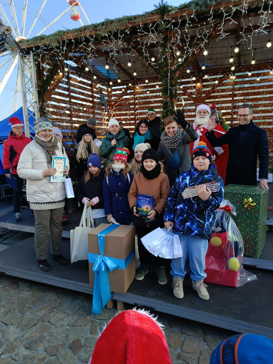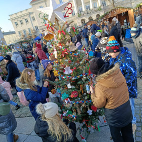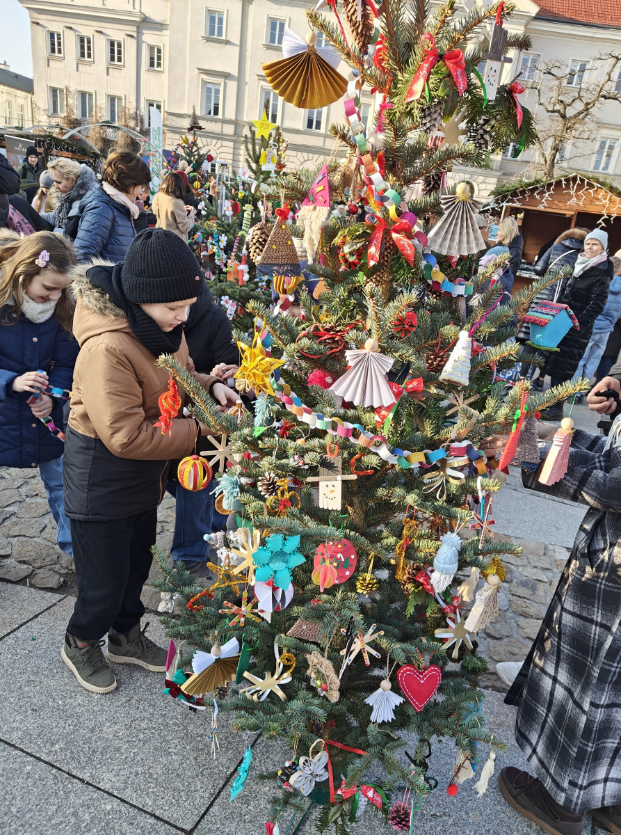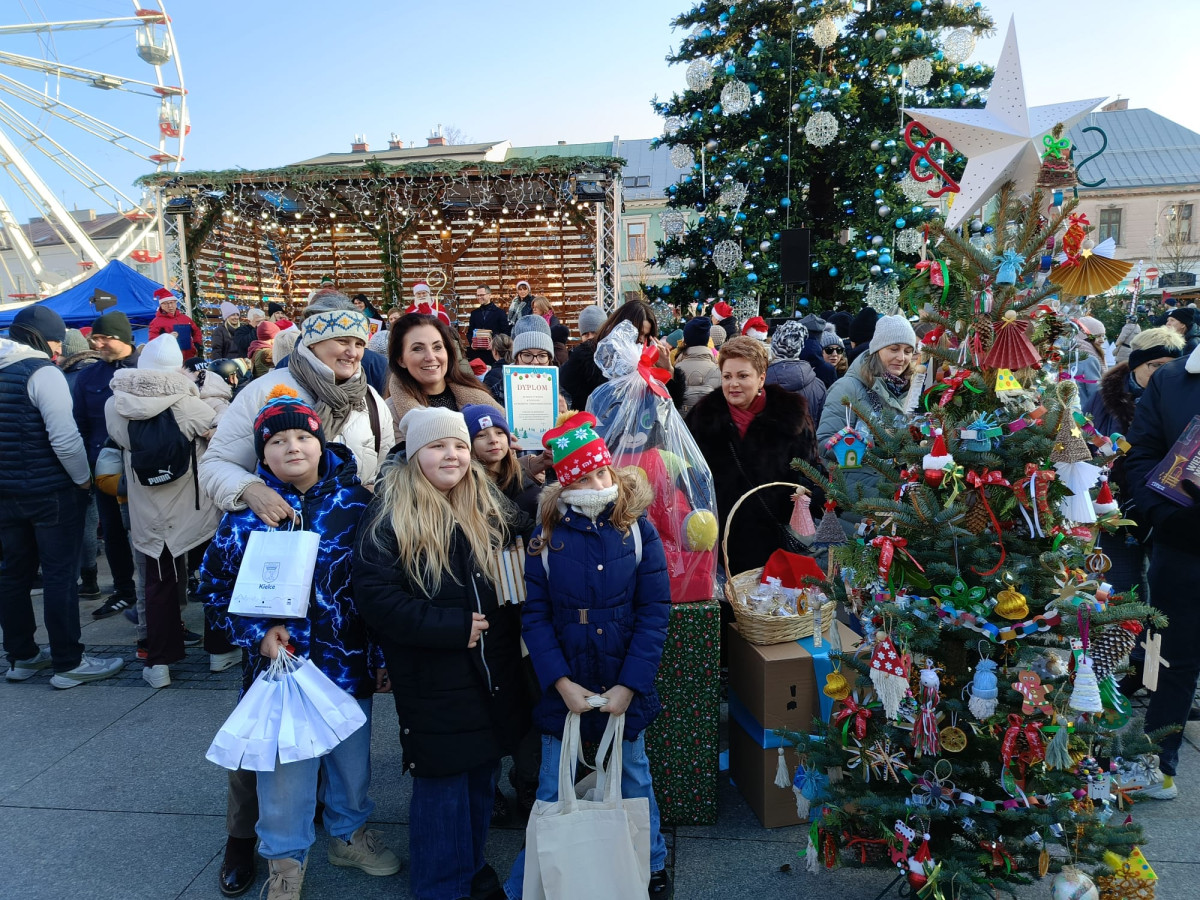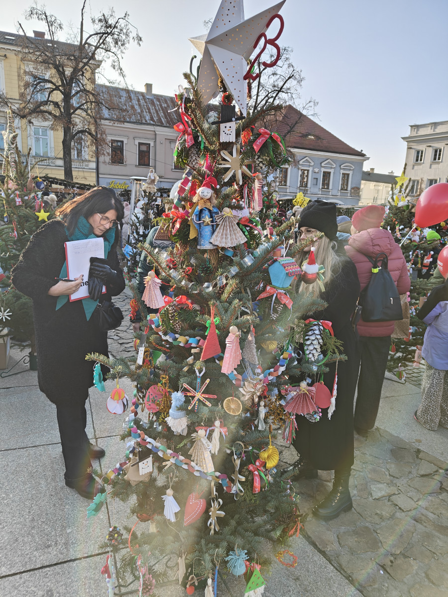 W sobotę, 13 grudnia, w ramach Jarmarku Świętokrzyskiego odbył się KONKURS NA NAJPIĘKNIEJ UDEKOROWANĄ CHOINKĘ. W atmosferze radości i świątecznego klimatu na kieleckim Rynku dzieci z 18 szkół dekorowały świąteczne drzewka ozdobami wykonanymi przez siebie. Naszą szkołę reprezentowali uczniowie klasy trzeciej wraz ze swoją wychowawczynią, panią Barbarą Kiepas. Z radością informujemy, że nasza choinka zajęła w konkursie II MIEJSCE. To wyjątkowe wyróżnienie jest efektem ogromnego zaangażowania, kreatywności i wspólnej pracy trzecioklasistów, którzy z wielkim entuzjazmem przygotowywali świąteczne ozdoby.