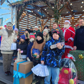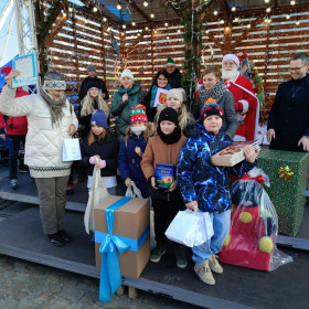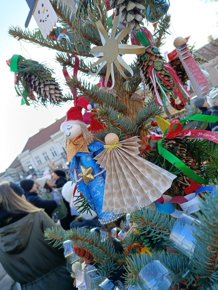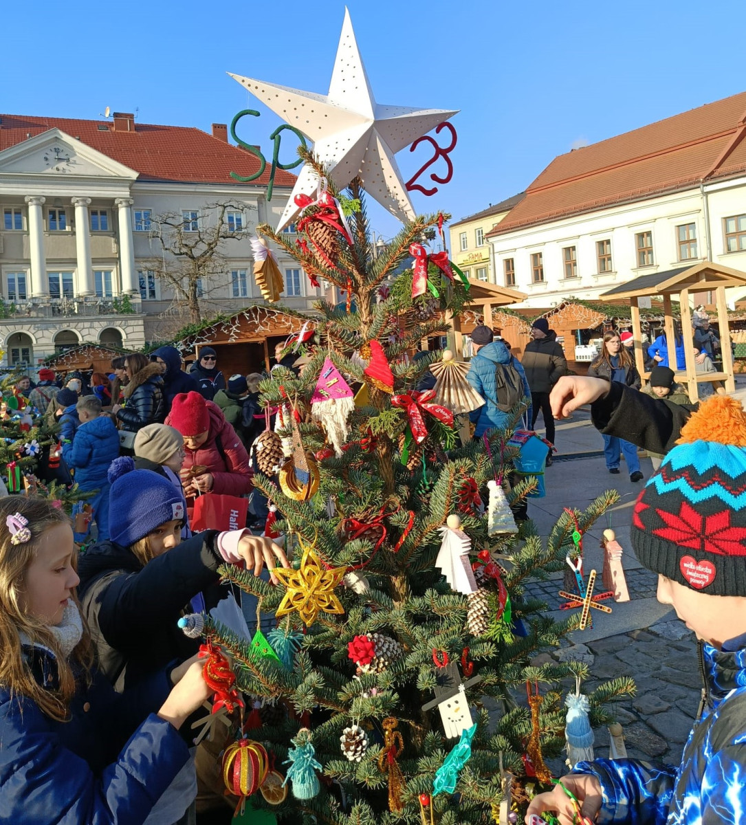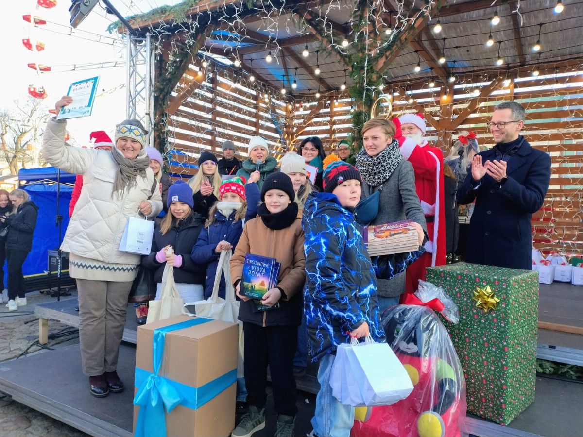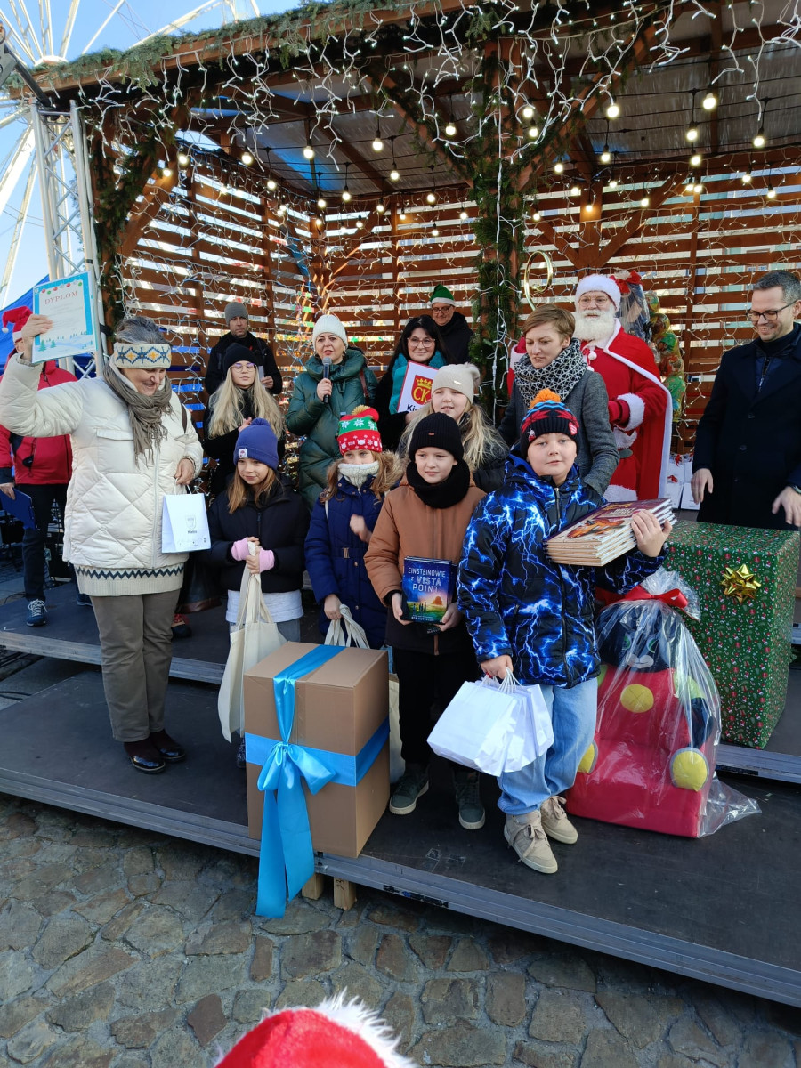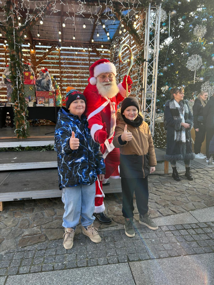 W sobotę, 13 grudnia, w ramach Jarmarku Świętokrzyskiego odbył się KONKURS NA NAJPIĘKNIEJ UDEKOROWANĄ CHOINKĘ. W atmosferze radości i świątecznego klimatu na kieleckim Rynku dzieci z 18 szkół dekorowały świąteczne drzewka ozdobami wykonanymi przez siebie. Naszą szkołę reprezentowali uczniowie klasy trzeciej wraz ze swoją wychowawczynią, panią Barbarą Kiepas. Z radością informujemy, że nasza choinka zajęła w konkursie II MIEJSCE. To wyjątkowe wyróżnienie jest efektem ogromnego zaangażowania, kreatywności i wspólnej pracy trzecioklasistów, którzy z wielkim entuzjazmem przygotowywali świąteczne ozdoby.