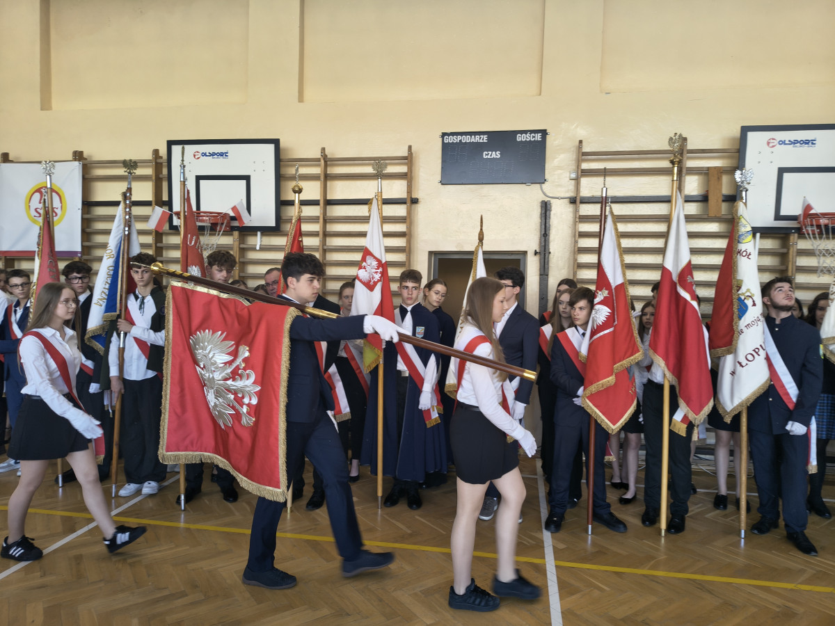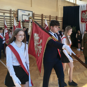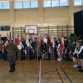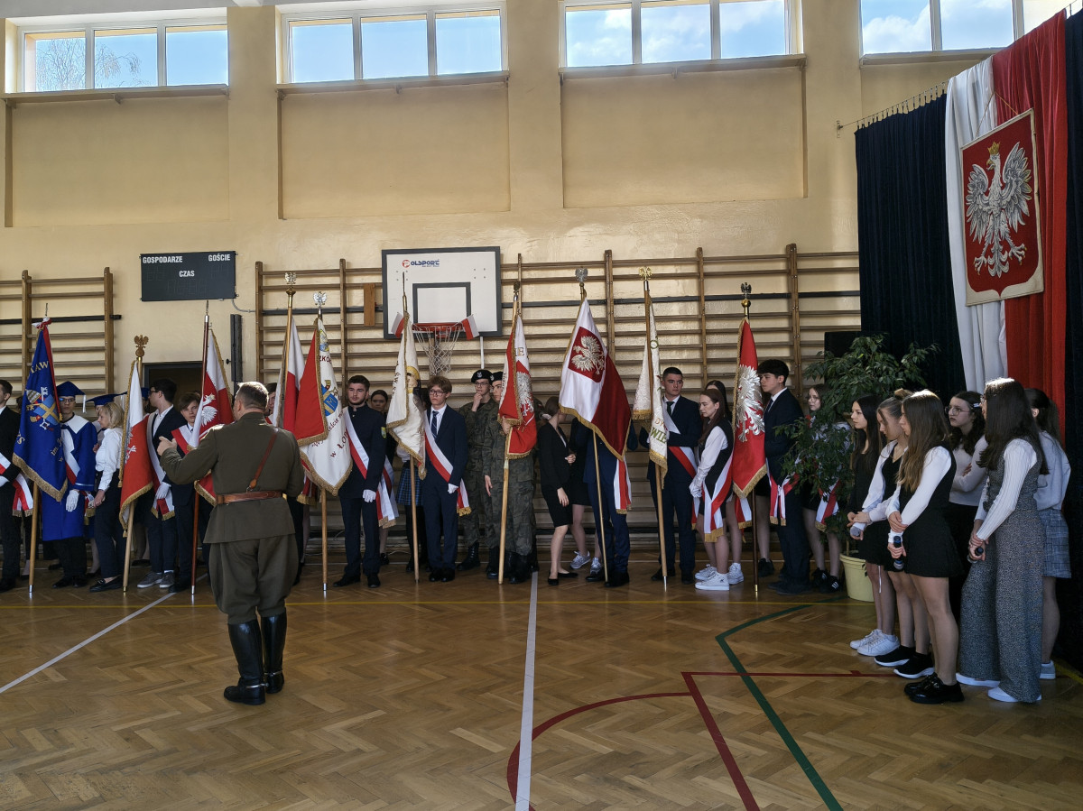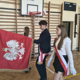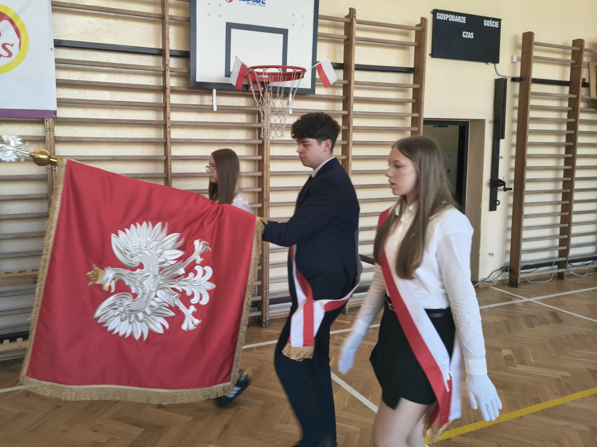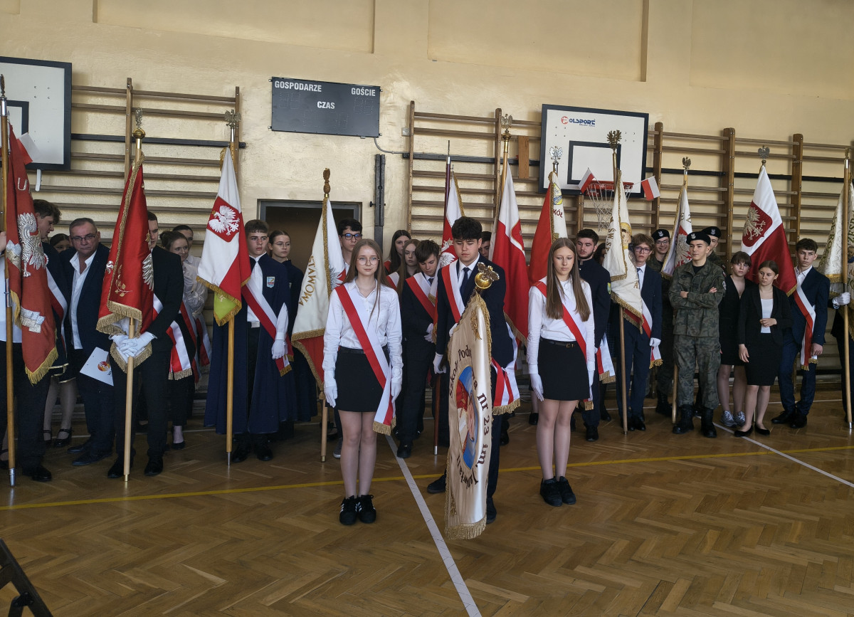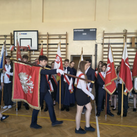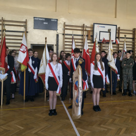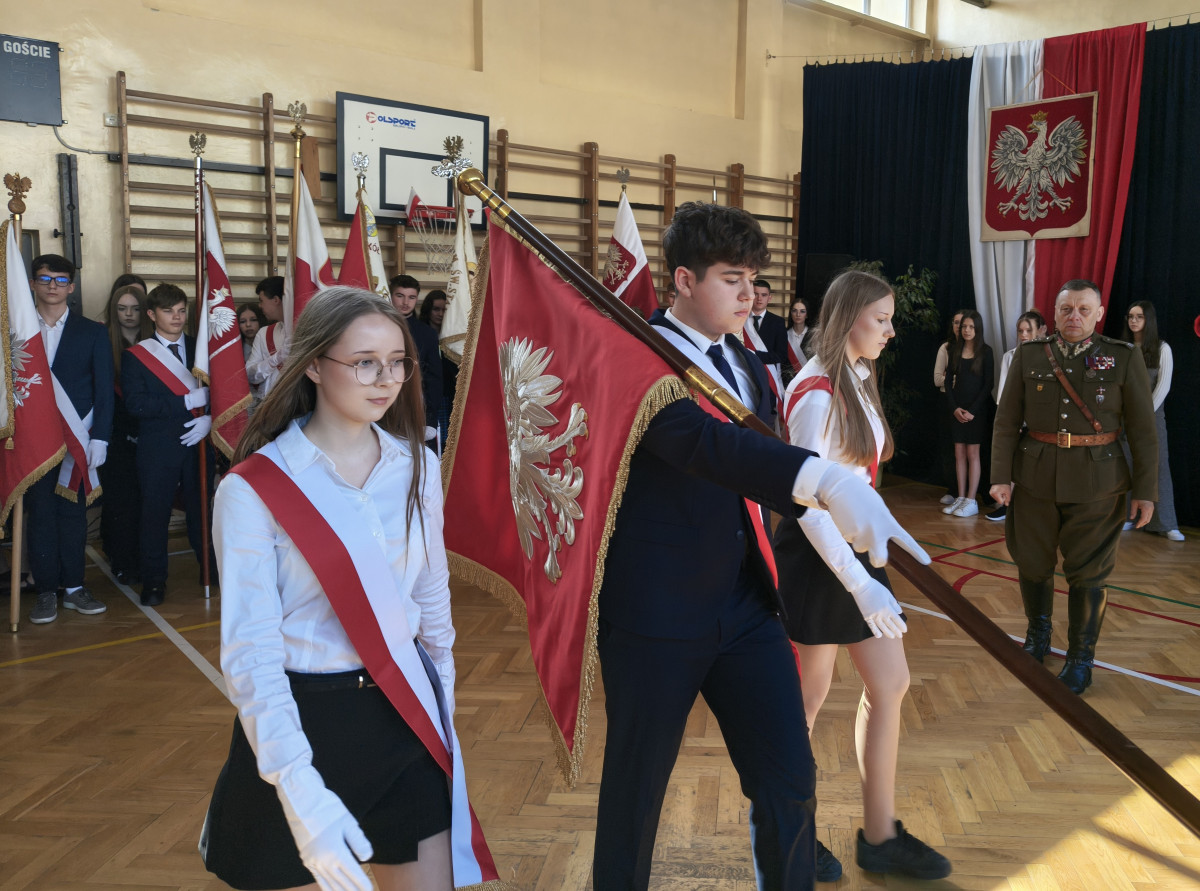 Naszą szkołę reprezentowali: Kamila Kubicka – dowódca pocztu, Maria Kowalska – asystująca, Mikołaj Wróbel – chorąży.