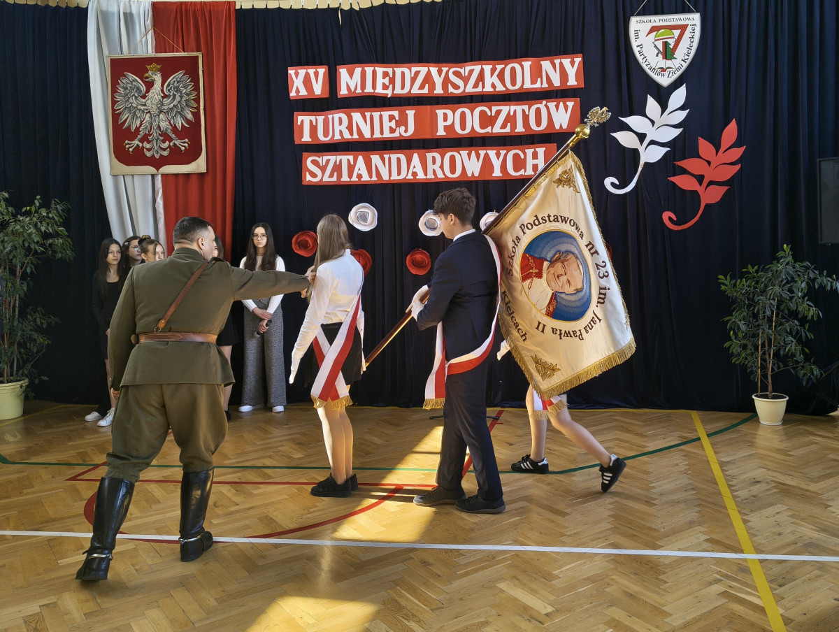 17 kwietnia 2026 r. reprezentacja naszej szkoły wzięła udział w XV edycji Międzyszkolnego Turnieju Pocztów Sztandarowych, organizowanego przez Szkołę Podstawową nr 7 im. Partyzantów Ziemi Kieleckiej w Kielcach we współpracy z Kieleckim Ochotniczym Szwadronem Kawalerii oraz Wojewódzkim Domem Kultury w Kielcach.