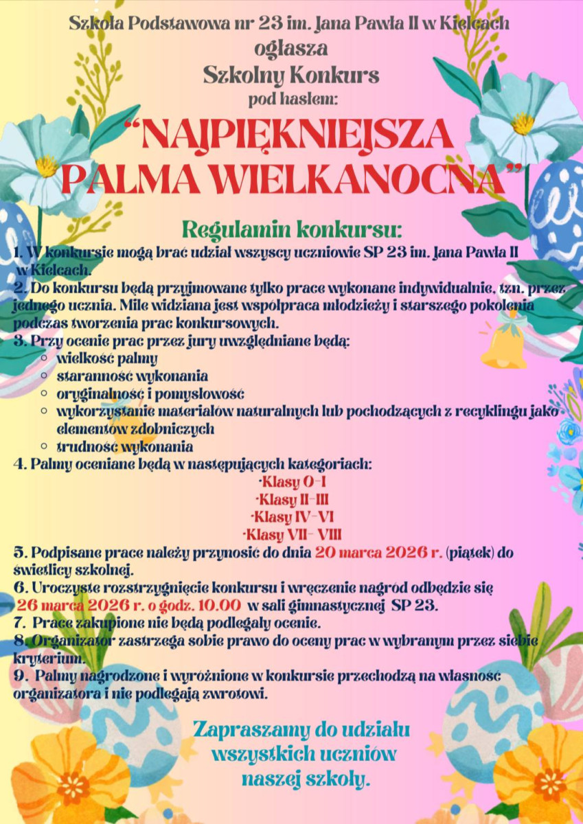 1.W konkursie mogą brać udział wszyscy uczniowie SP 23 im. Jana Pawła II w Kielcach.