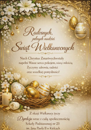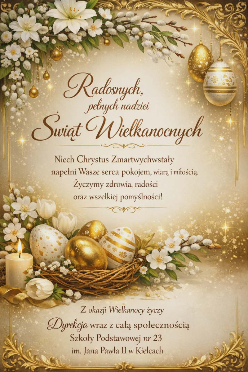 Dyrekcja wraz z całą społecznością Szkoły Podstawowej nr 23 im. Jana Pawła II w Kielcach