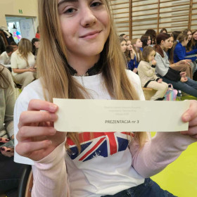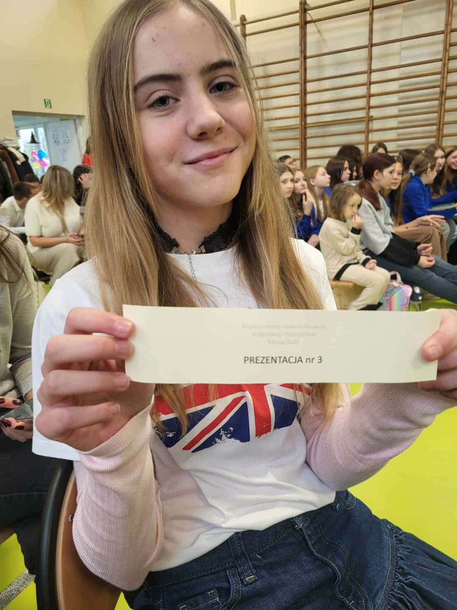 Dnia 27.11.2025 r. uczennica klasy 6, Natalia Sobaszek, reprezentowała naszą szkołę w Międzyszkolnym Konkursie Piosenki Angielskiej i Niemieckiej dla Uczniów Klas 4-8.