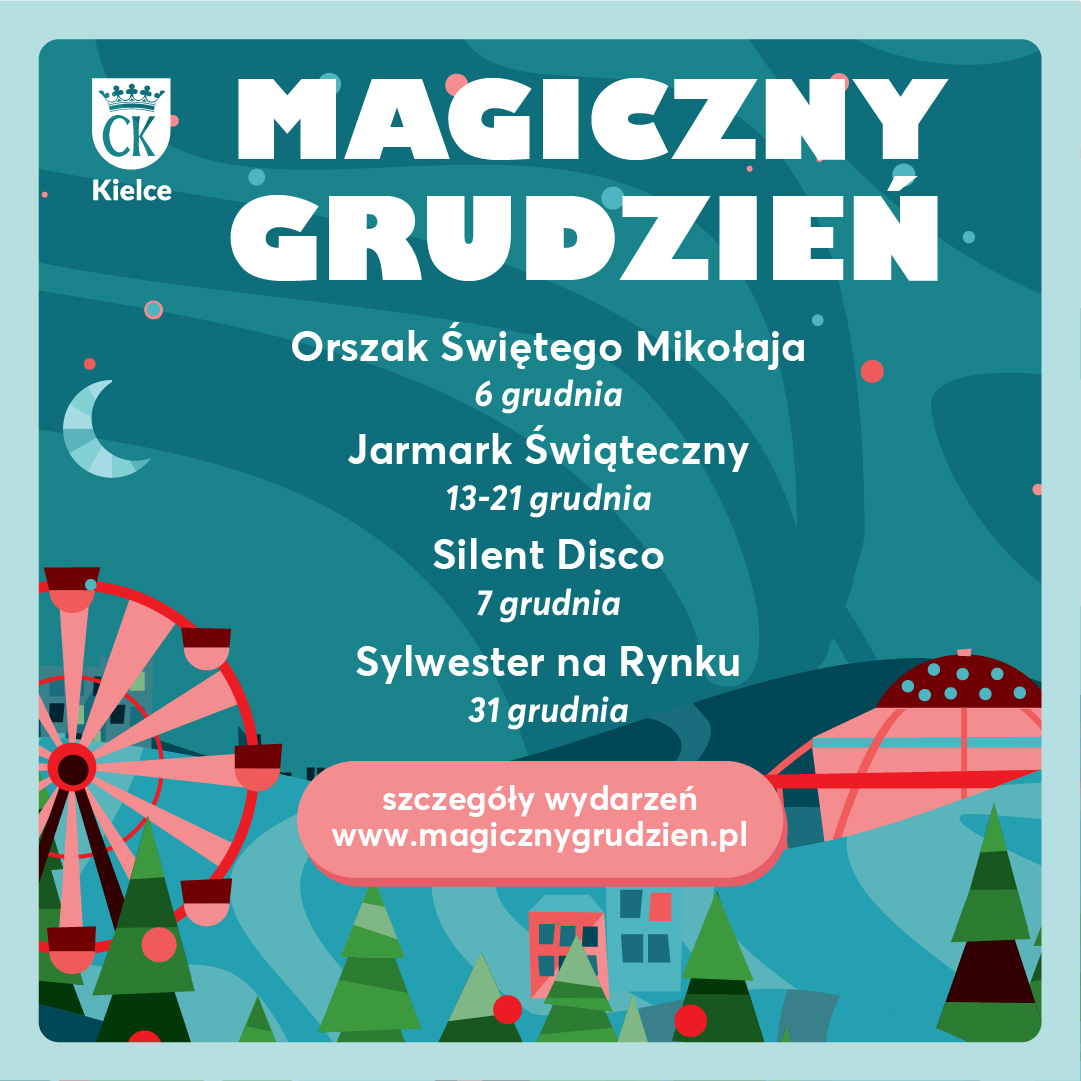 Kielce zamienią się w świąteczną krainę pełną uśmiechu, smaków i dobrej zabawy. Razem z miejskimi instytucjami wypełnimy Wam grudniowy kalendarz - od Mikołajek po Sylwestra!