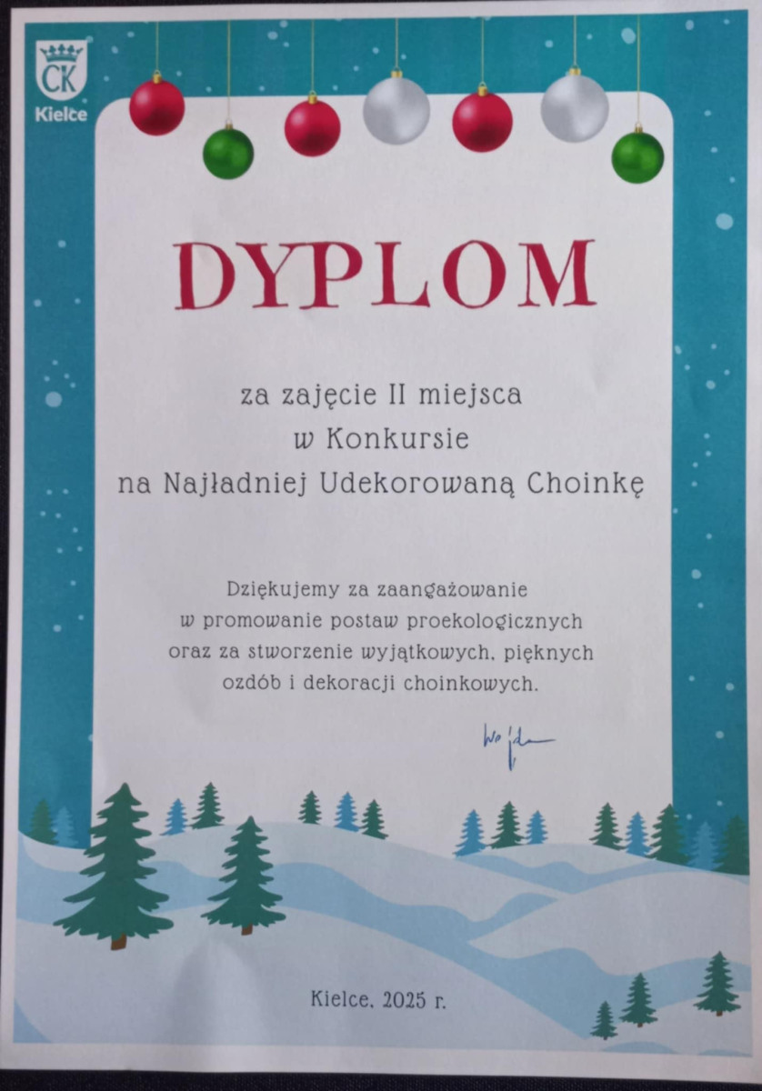 Z wielką radością dziękujemy za udział w Jarmarku Świątecznym – to była magiczna atmosfera pełna ciepła, śmiechu i świątecznych zapachów! Miło nam poinformować, że nasza choinka zajęła drugie miejsce w konkursie na najładniej udekorowaną choinkę!