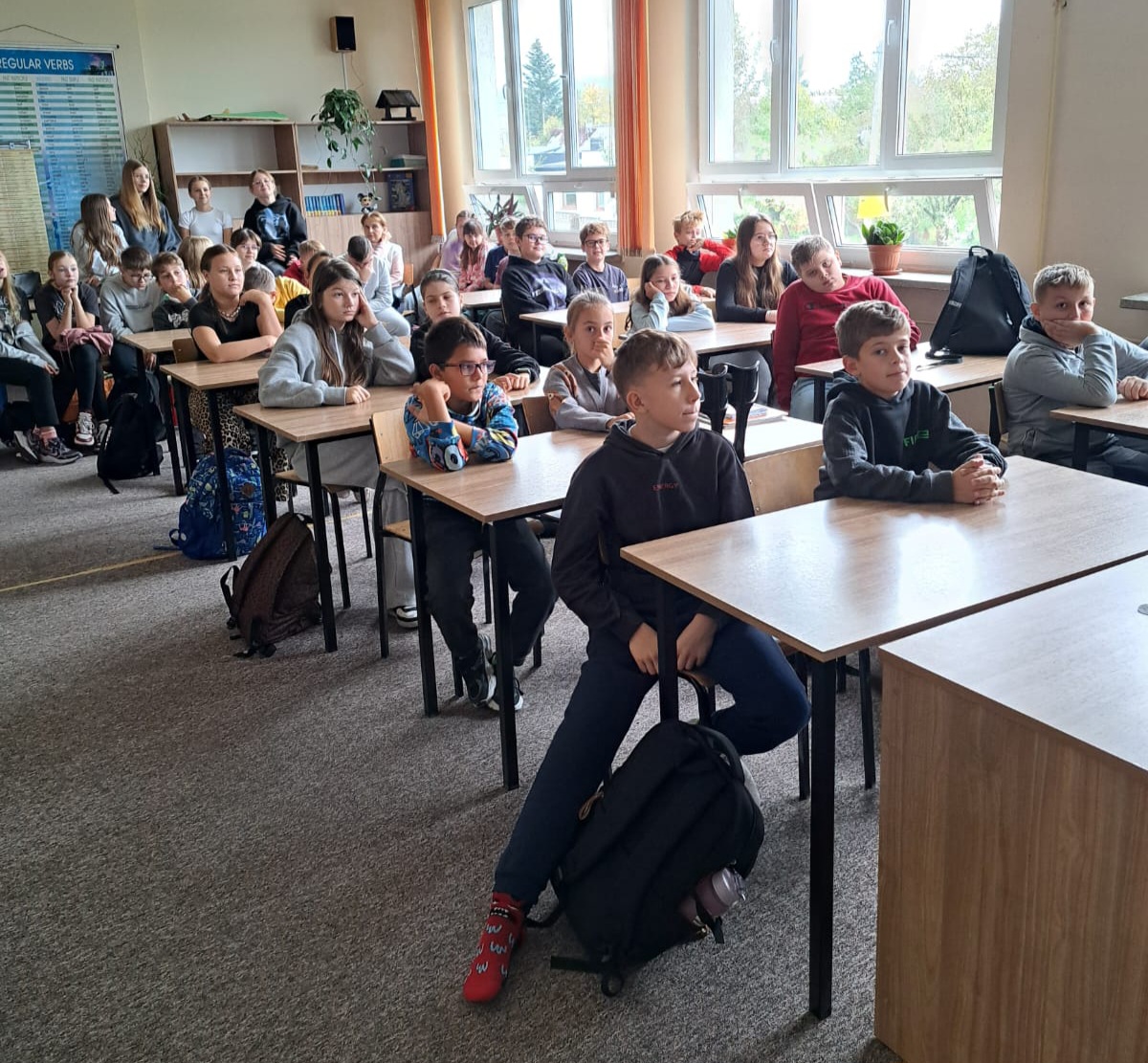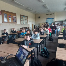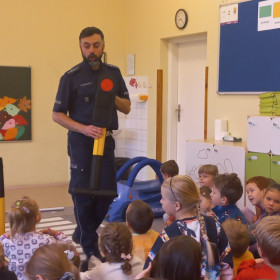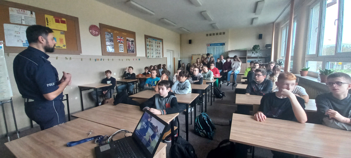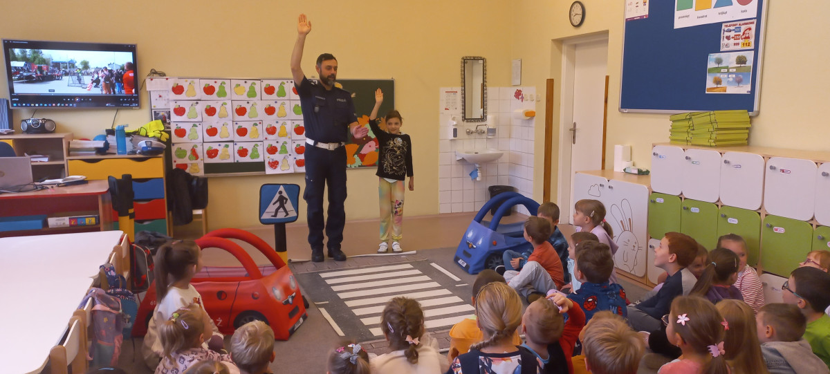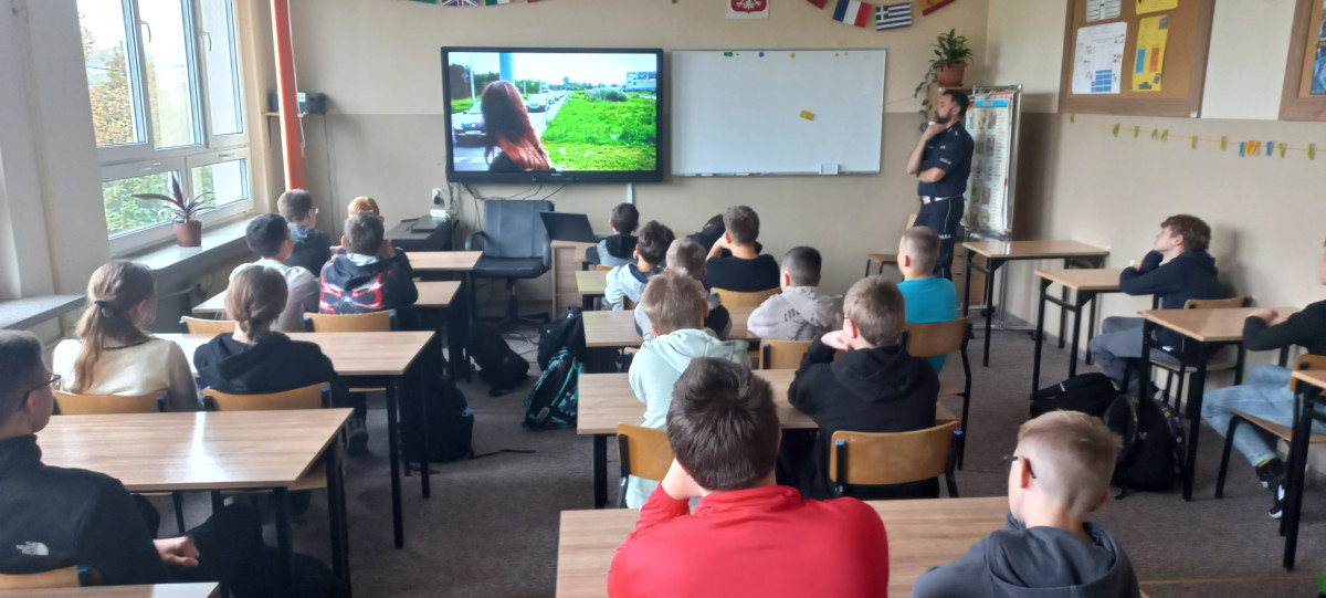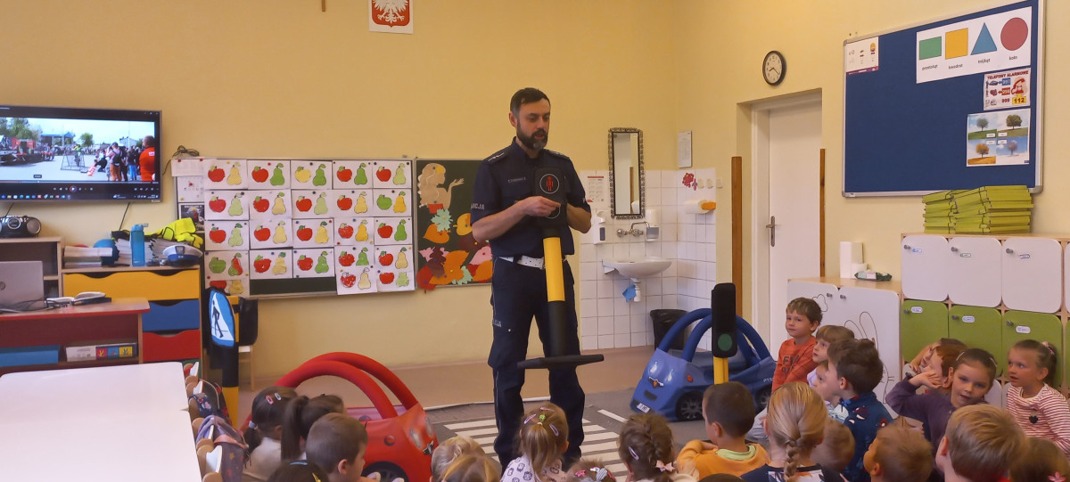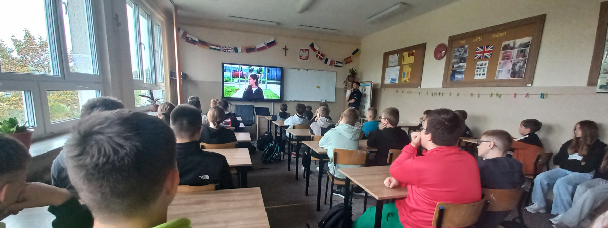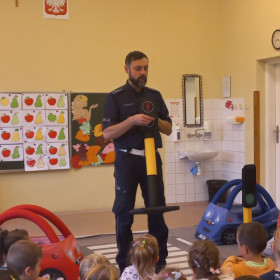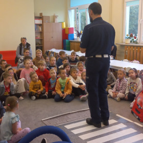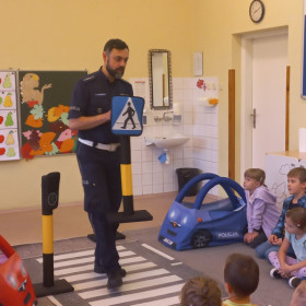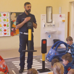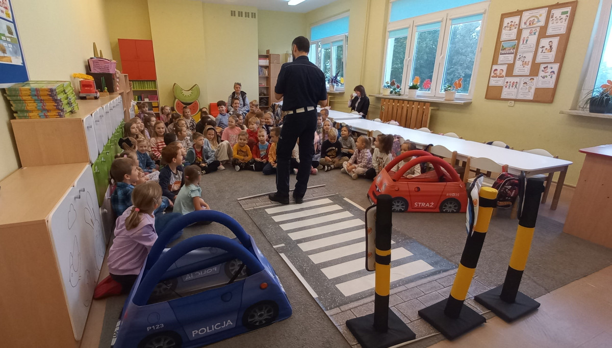 W naszej szkole duży nacisk kładziemy na bezpieczeństwo oraz edukację związaną z bezpieczeństwem dzieci. W ramach edukacji zaprosiliśmy do nas zaprzyjaźnionego policjanta, Pana aspiranta Tomasza z KWP w Kielcach, który spotkał się z całą społecznością szkolną. Tematem spotkania była "Bezpieczna droga do szkoły". Policjant rozmawiał z uczniami o bezpiecznym poruszaniu się po ulicach, a w szczególności omówił zasady bezpiecznej drogi do i ze szkoły. Przypomniał również o korzyściach noszenia elementów odblaskowych przy ubraniu bądź tornistrze oraz jak należy zachować się, gdy zaczepi nas obca osoba. Następnie wytłumaczył jak dbać o bezpieczeństwo własne i innych oraz do kogo zwracać się o pomoc w sytuacji zagrożenia. Powtórzyliśmy również numery alarmowe. W starszych klasach policjant poruszył również temat bezpieczeństwa w szkole i poza nią oraz konsekwencji nieodpowiedzialnych zachowań. Uczniowie mieli okazję zadać pytania i podzielić się własnymi spostrzeżeniami.