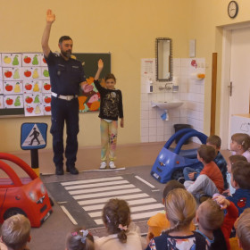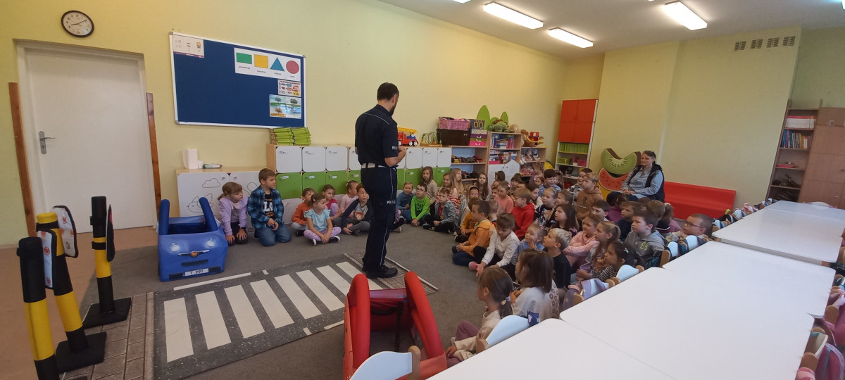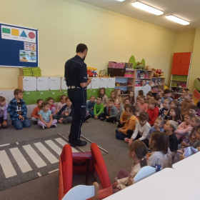 Dzieci czynnie uczestniczyły w spotkaniu, dzieliły się swoimi doświadczeniami oraz zadawały bardzo dużo pytań. Nie mogło oczywiście zabraknąć pamiątkowego zdjęcia z panem policjantem.
