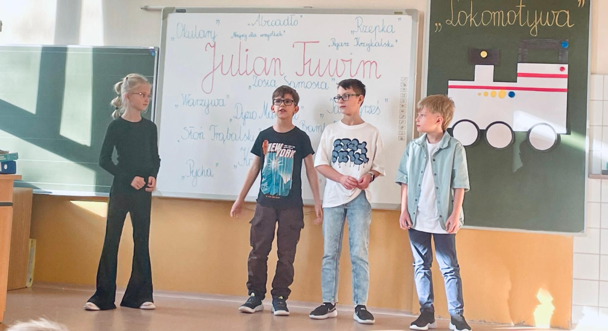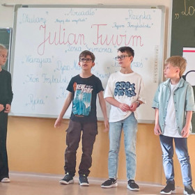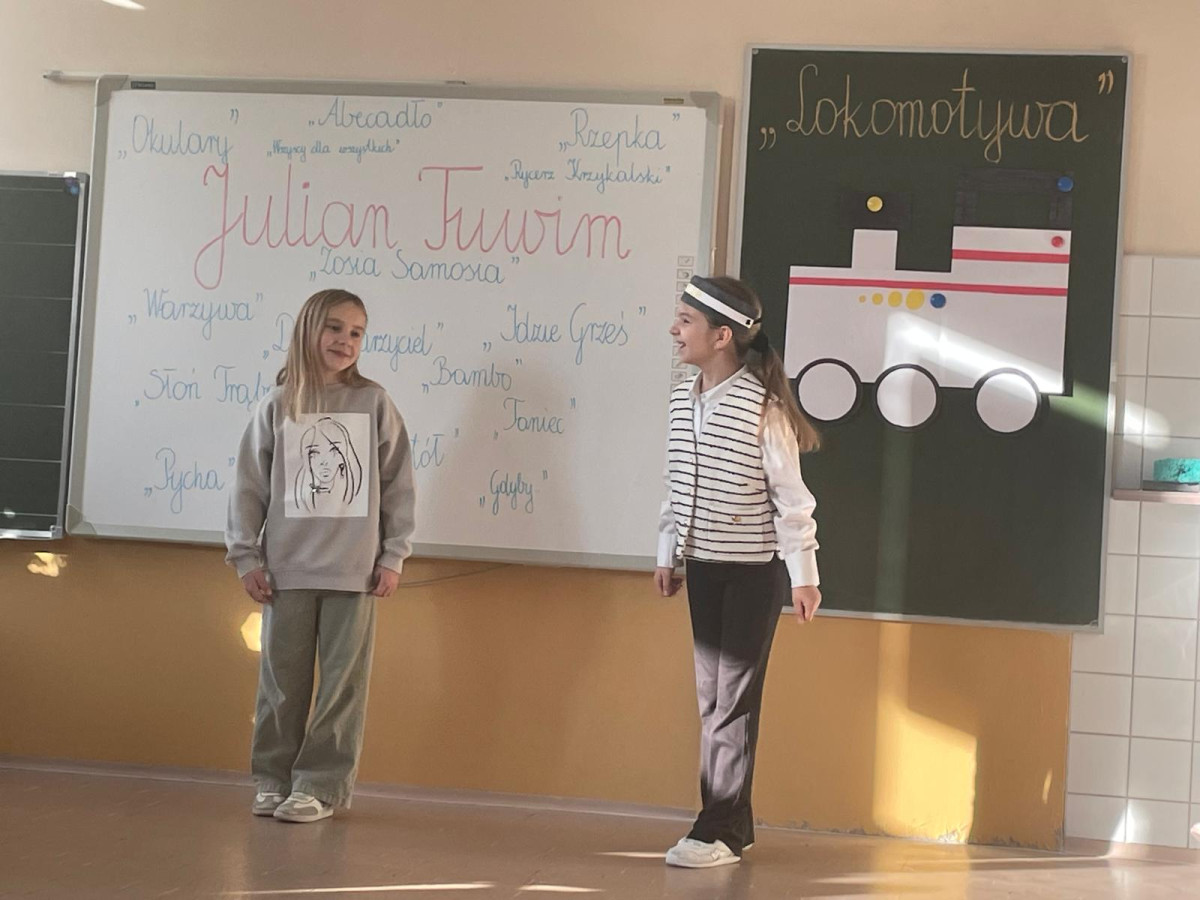 W klasie III a odbył się konkurs recytatorski wierszy Juliana Tuwima. Przedstawienie poezji Tuwima stanowiło podsumowanie cyklu lekcji o tym poecie i było wspaniałą okazją do prezentacji talentów aktorskich uczniów klasy trzeciej. Dzieci zaprezentowały się wspaniale, pięknie recytując przygotowane utwory. Popisy trzecioklasistów podziwiali pozostali uczniowie edukacji wczesnoszkolnej. Wszyscy wspaniale się bawili.