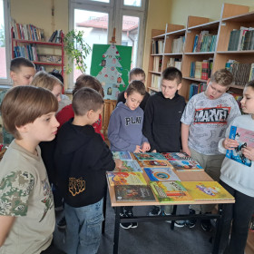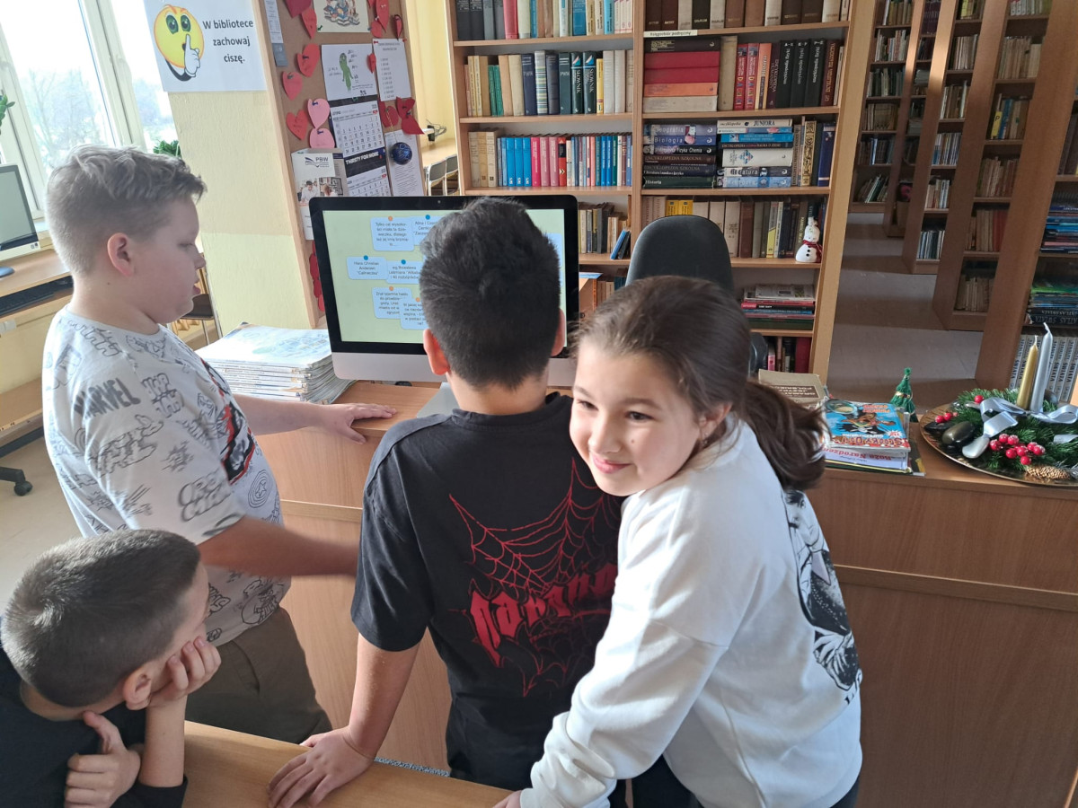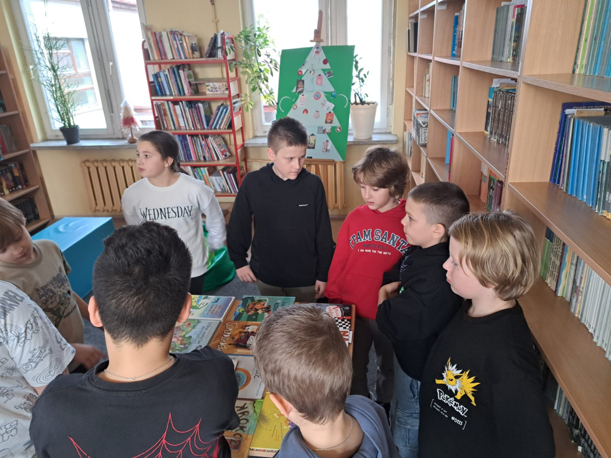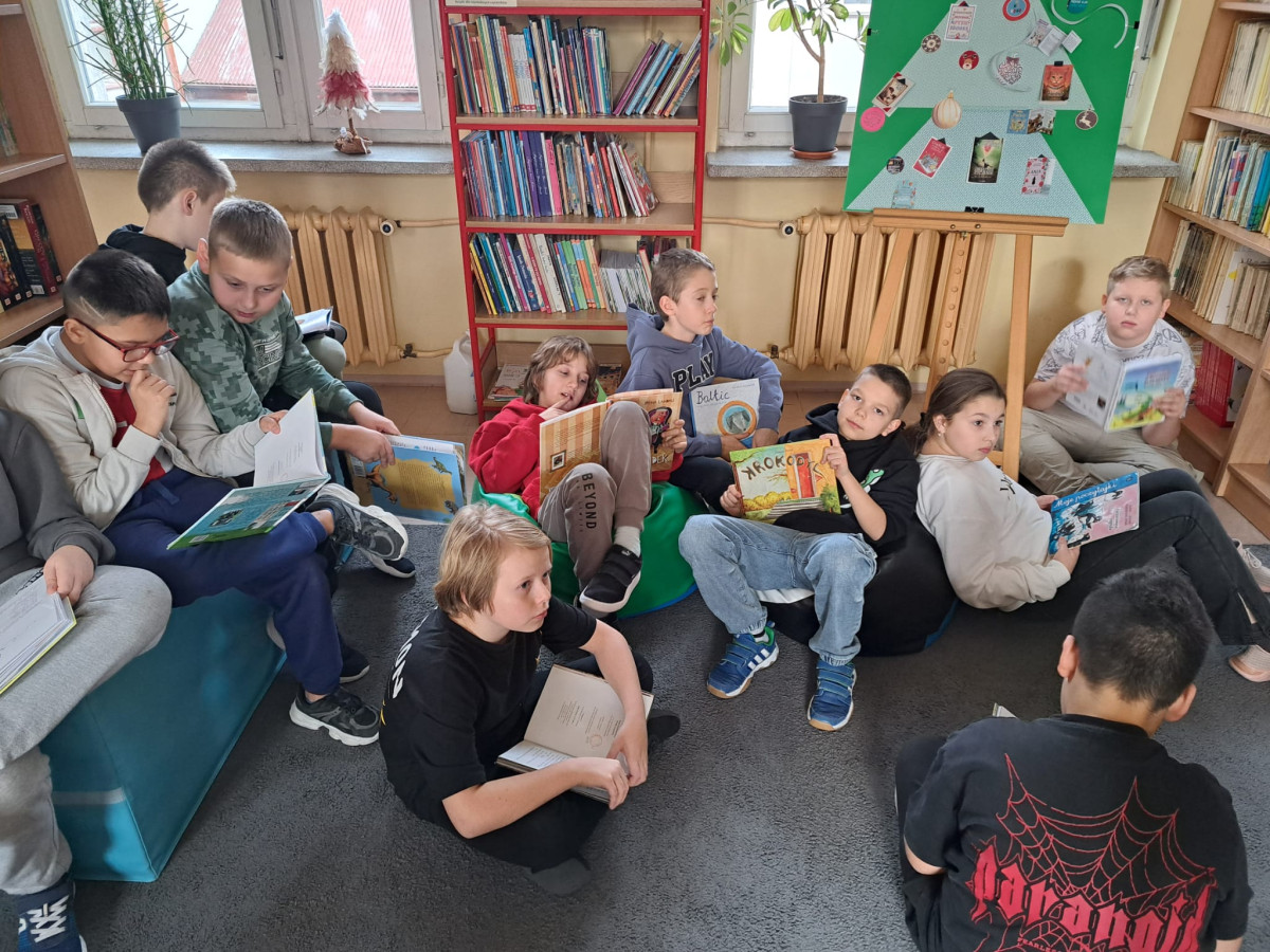 16 grudnia 2025 roku uczniowie klasy 4a wzięli udział w zajęciach bibliotecznych pod hasłem „Zakochaj się w czytaniu”, których celem było przybliżenie dzieciom świata książek oraz roli biblioteki szkolnej w życiu ucznia.