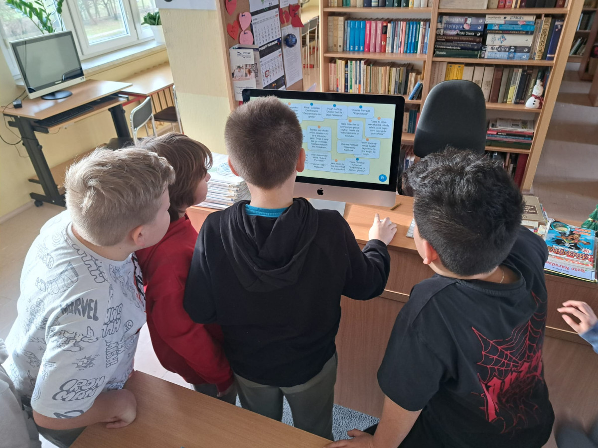 Atrakcyjnym elementem zajęć było wykorzystanie aplikacji LearningApps, dzięki której uczniowie w formie zabawy mogli sprawdzić, czy pamiętają treść książek z kanonu literatury dziecięcej. Interaktywne zadania spotkały się z dużym zainteresowaniem i zaangażowaniem uczniów.
