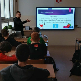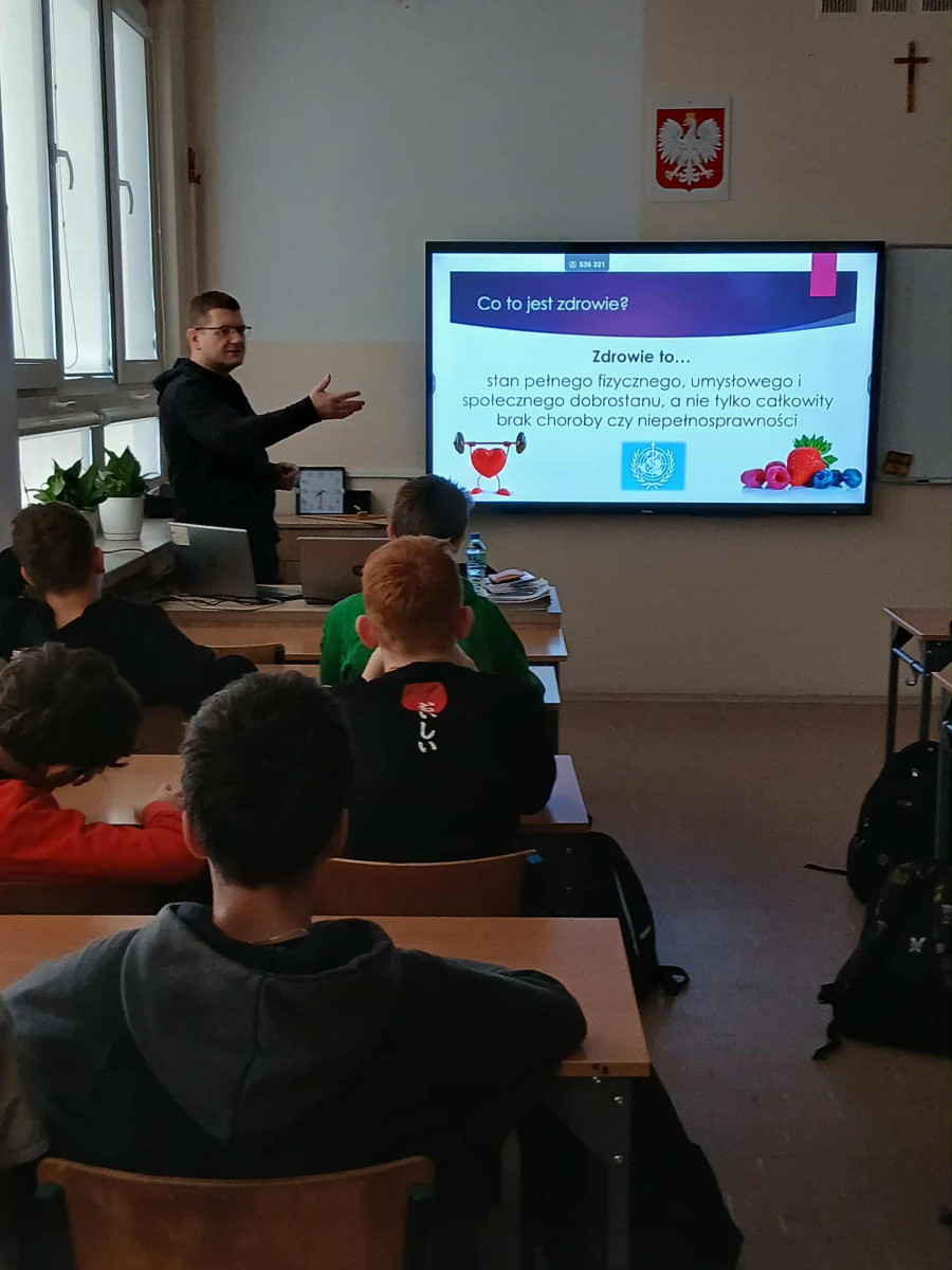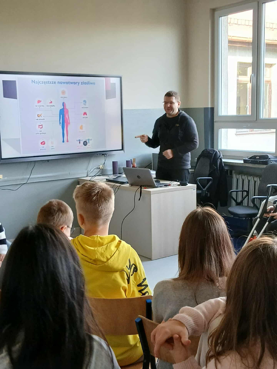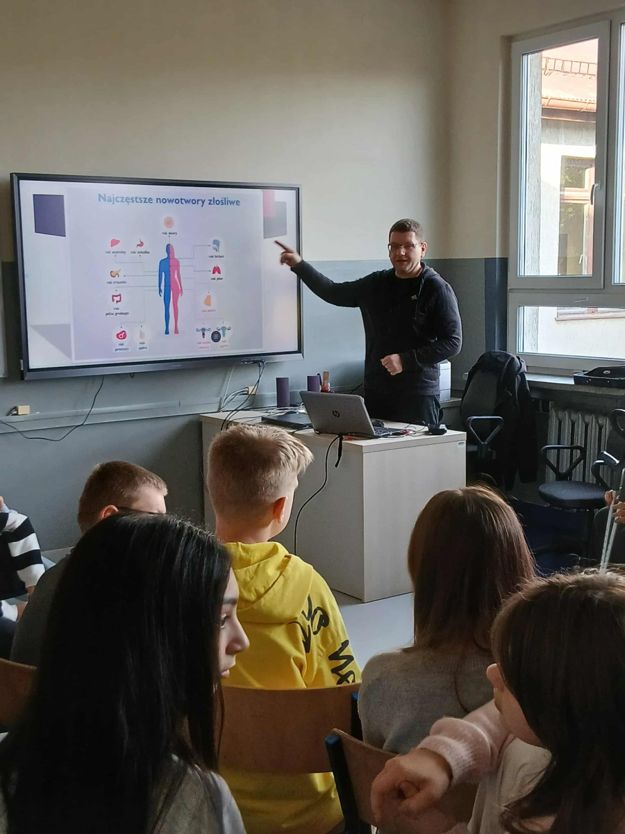 W naszej szkole odbyło się spotkanie z przedstawicielem Stacji Sanitarno-Epidemiologicznej Panem Łukaszem, podczas którego omówiono ważne zagadnienia dotyczące ochrony zdrowia. Rozmawiano o zdrowym stylu życia, profilaktyce antynowotworowej oraz roli szczepień w zapobieganiu chorobom. Przedstawiciel stacji podkreślił znaczenie regularnych badań, właściwej diety, aktywności fizycznej oraz uzupełniania szczepień zgodnie z kalendarzem. Spotkanie uświadomiło uczniom, jak ważne są prozdrowotne nawyki i dbanie o siebie na co dzień.
