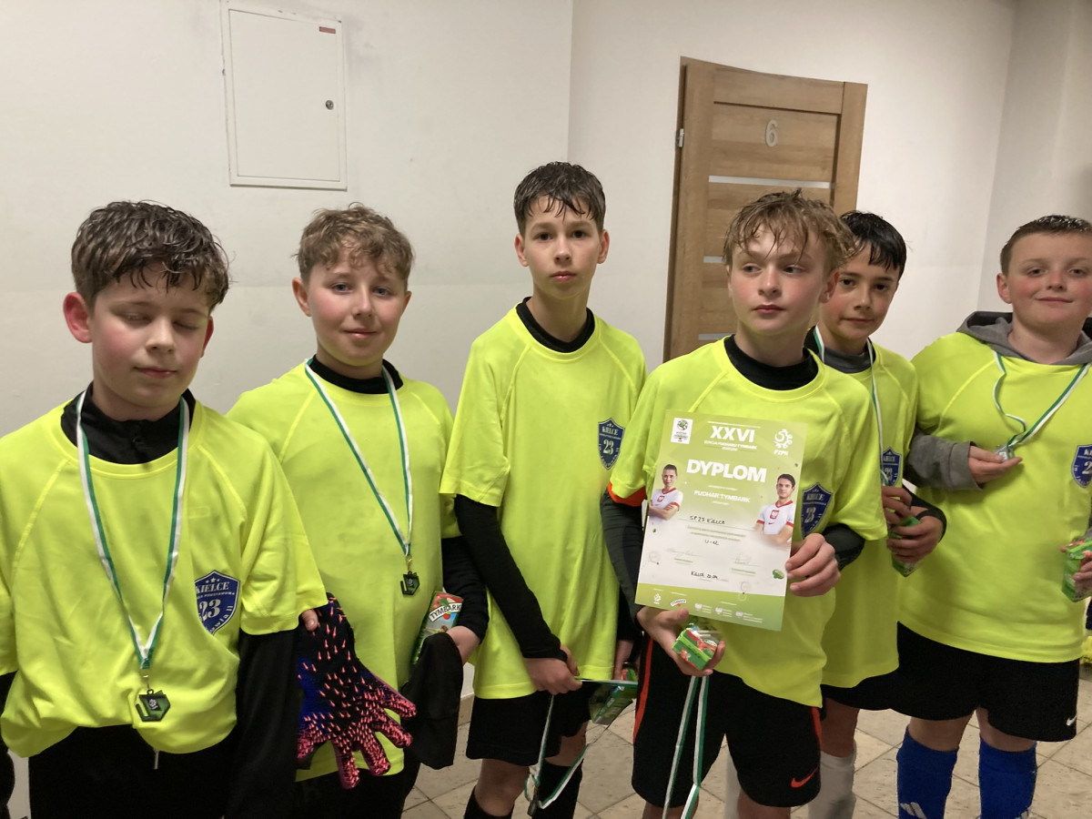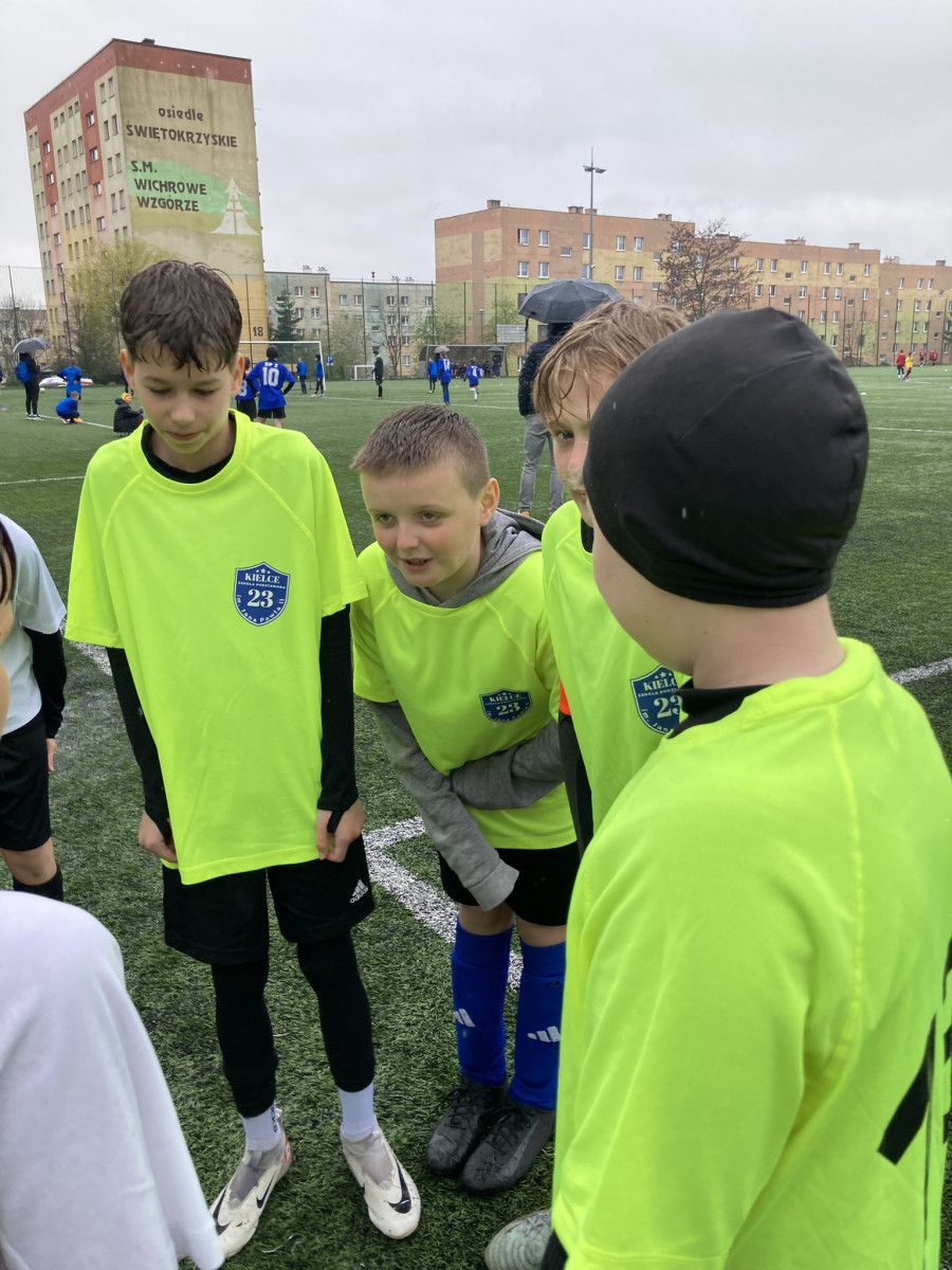 W dniu 20.04.26r. Uczniowie klasy 5 uczestniczyli w turnieju piłki nożnej o "Puchar Tymbarku". Sześciu chłopców w składzie: Nikodem Szablicki, Mikołaj Syska, Bartek Kowalik, Adam Kosowski, Jan Pakuła i Franciszek Opala reprezentowało naszą szkołę wśród 24 drużyn kieleckich szkół podstawowych. Pogoda niestety nie dopisała, dlatego wielkie uznanie dla piłkarzy grających w turnieju.